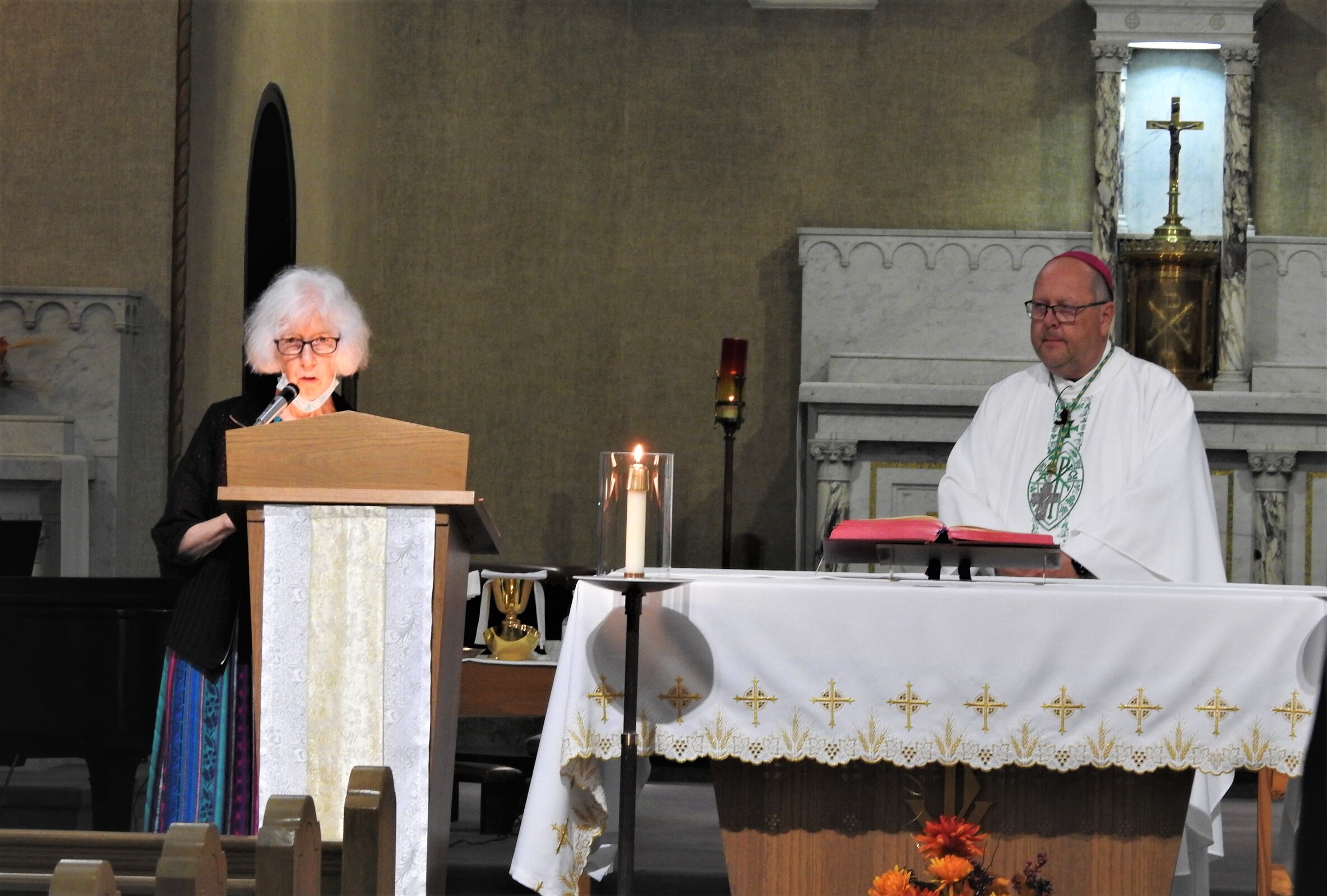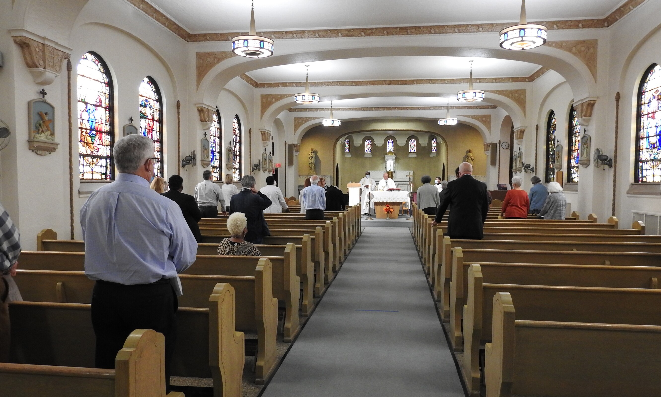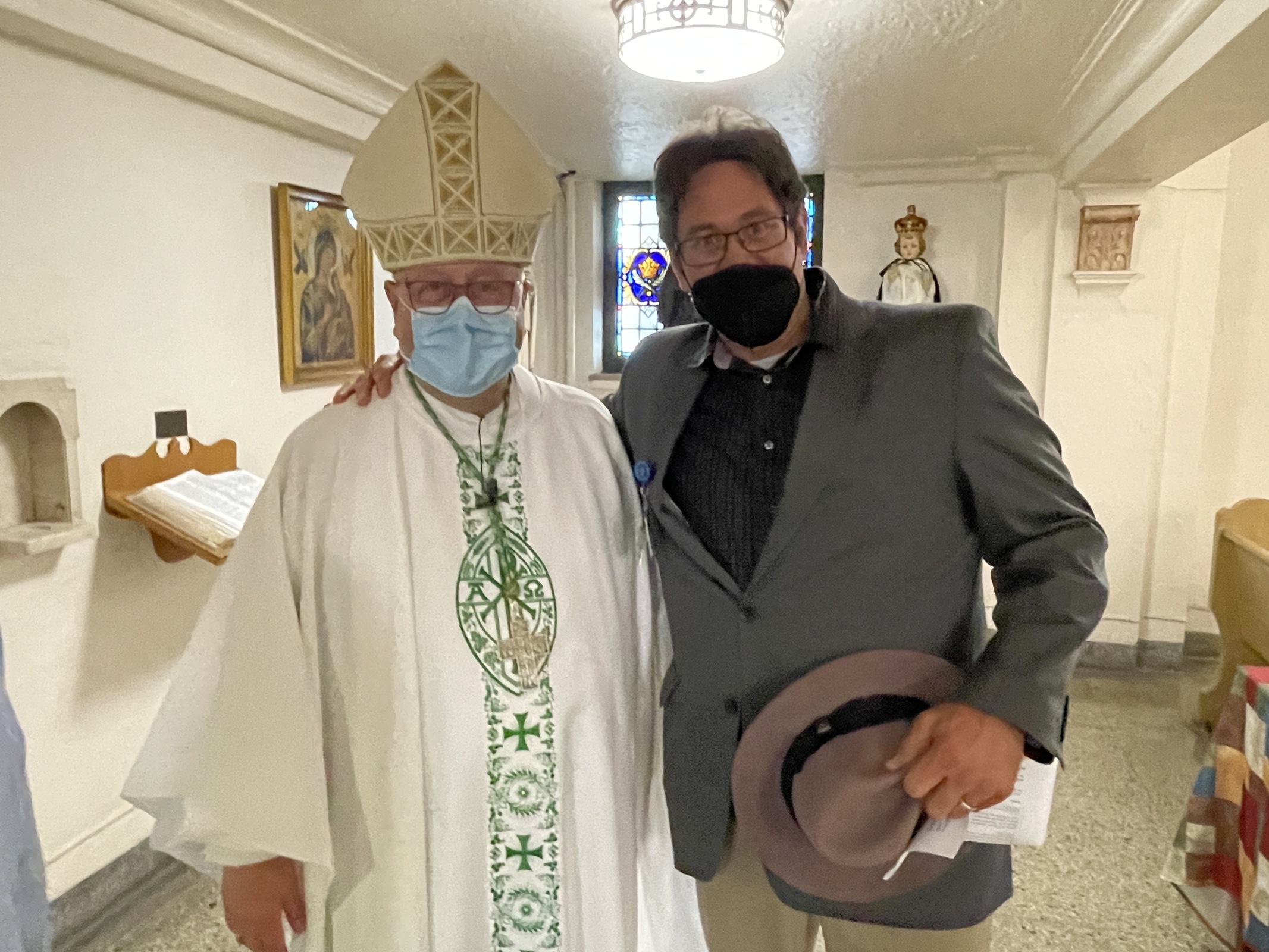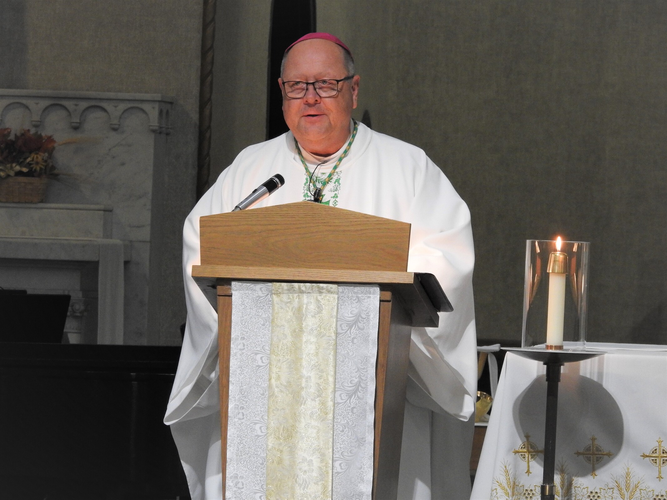 Bishop Edward Malesic visited the medical center on Sept. 27 to celebrate Mass and to observe the operation of the Refresh Food Pantry, a monthly program that operates during lunchtime from June through September. It welcomes those in need to register and receive a hot lunch, food, produce, blood pressure and other checkups and more. Often there is music, as well. Unfortunately, the day of the bishop’s visit, which was the final pantry day for the season, rain forced a reduction in operations.