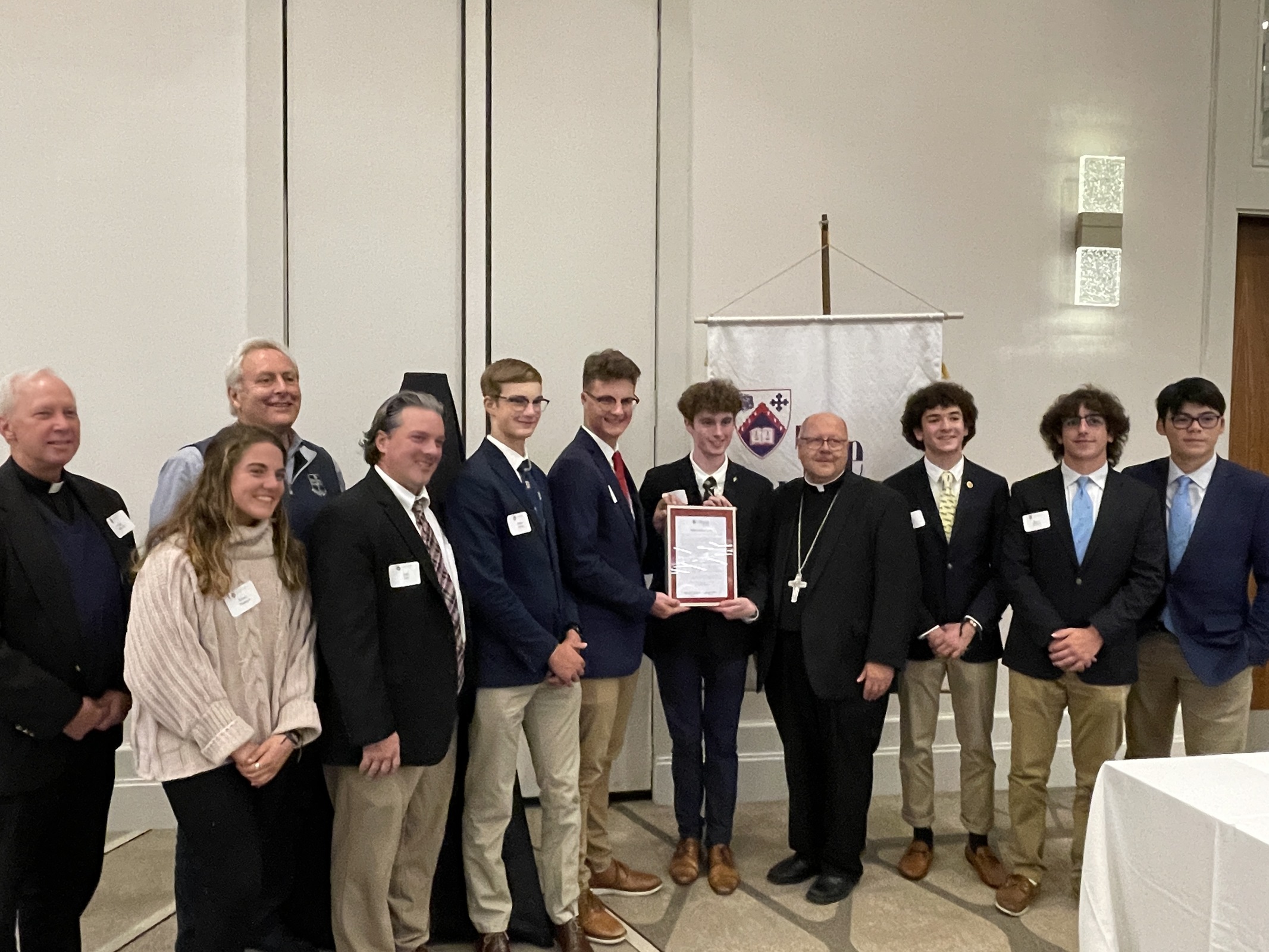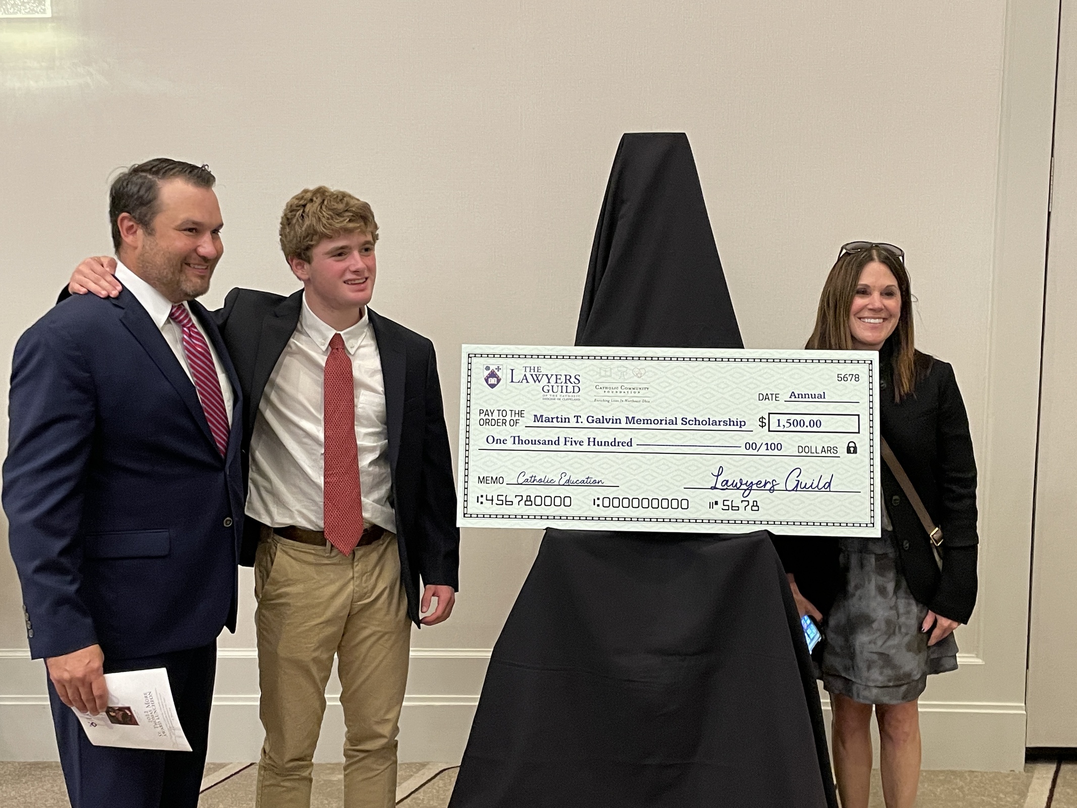 After Mass, the group moved to the Marriott Key Tower for the St. Thomas Award luncheon, at which Dick Knoth, BakerHostetler partner, received the St. Thomas More Award. Ryan Acton, a Saint Ignatius High School senior, was presented with the Martin T. Galvin Memorial Scholarship and Saint Ignatius’ St. Benedict Joseph Labre Ministry was recognized with a special award for 20 years of ministry to the homeless.