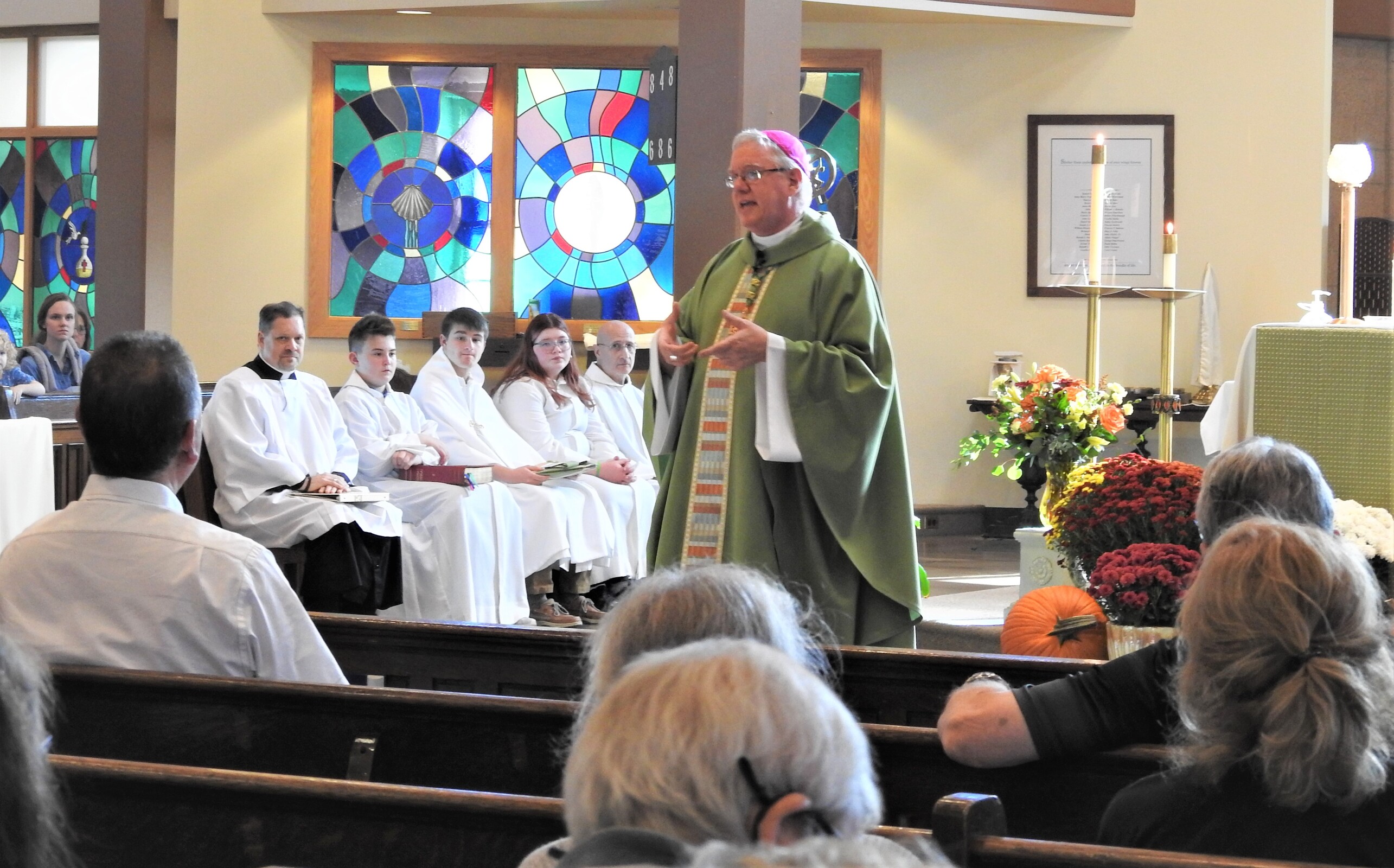 SS. Cosmas and Damian Parish in Twinsburg welcomed Auxiliary Bishop Michael Woost on Oct. 22 when he celebrated Mass and presided and Eucharistic devotions. It was his first pastoral visit to the parish since his ordination. The visit coincided with the end of the first week of the parish’s Eucharistic Miracles Experience.
