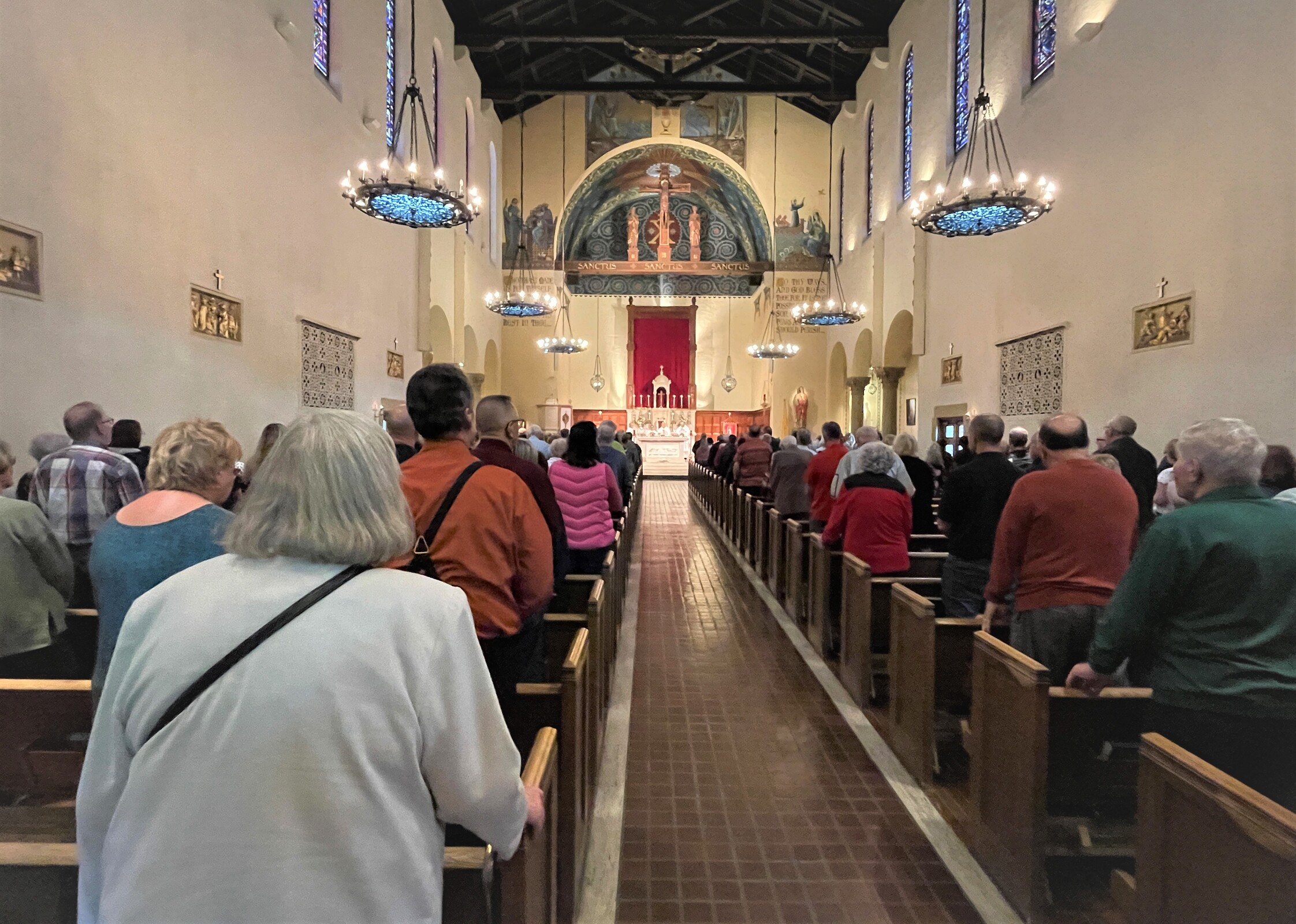 He told the faithful at St. Augustine they have been contemplating the Eucharist in perpetual adoration for 60 years. “It has helped you to celebrate this Eucharistic liturgy, the highest prayer of the Church, in spirit and in truth. Here, God brings his love into the world. Here on this altar, God comes to us. In the tabernacles and in our monstrances, Jesus remains with us. But his love must not be imprisoned here. He wants to send you out as his ambassadors of God’s great love for us.”