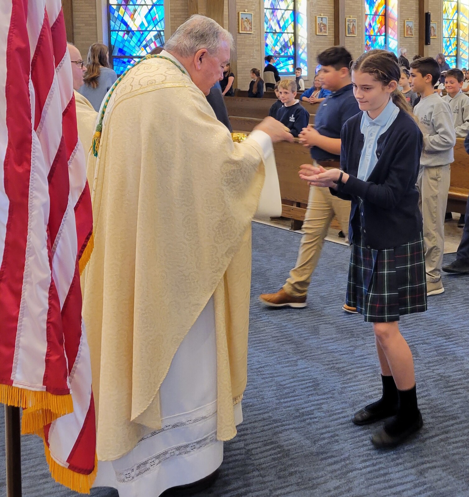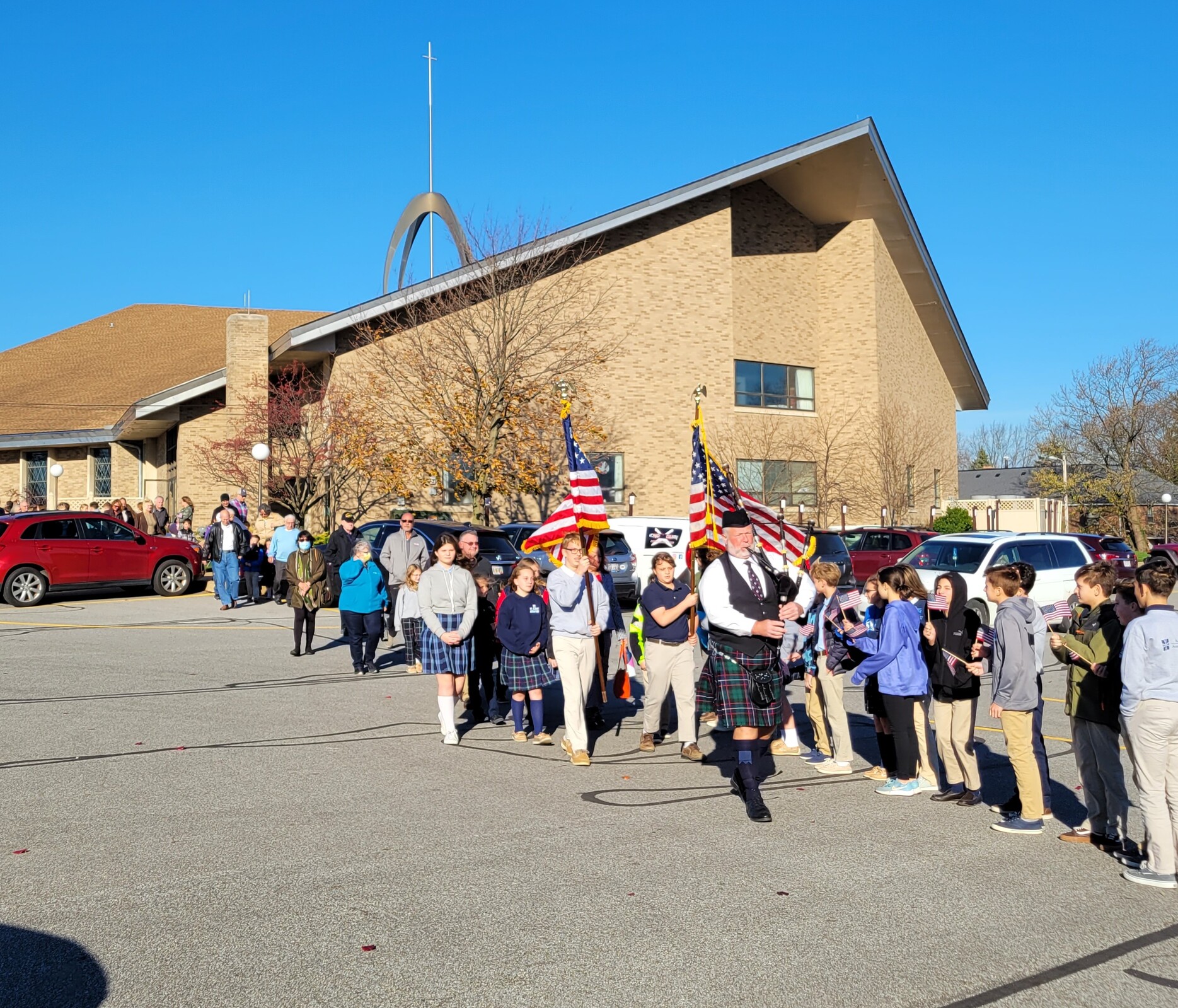 Students and parishioners at Assumption Parish and St. Albert the Great at Assumption Academy in Broadview Heights gathered for a special Mass and program on Nov. 10 to honor and thank United States veterans.