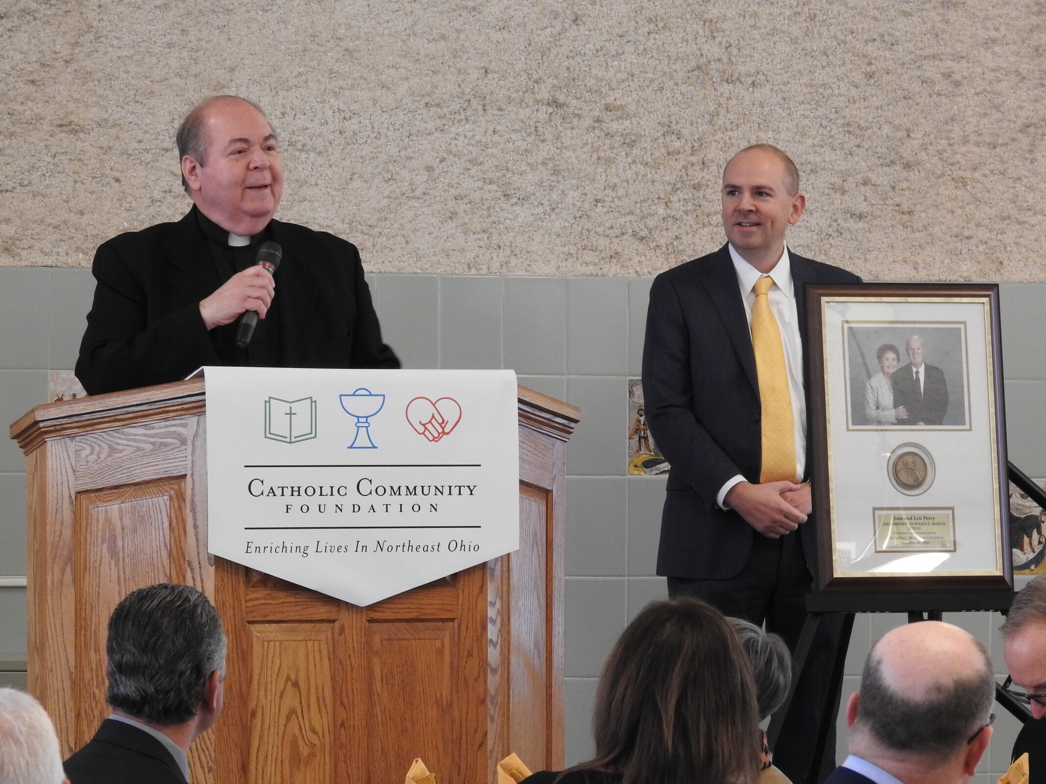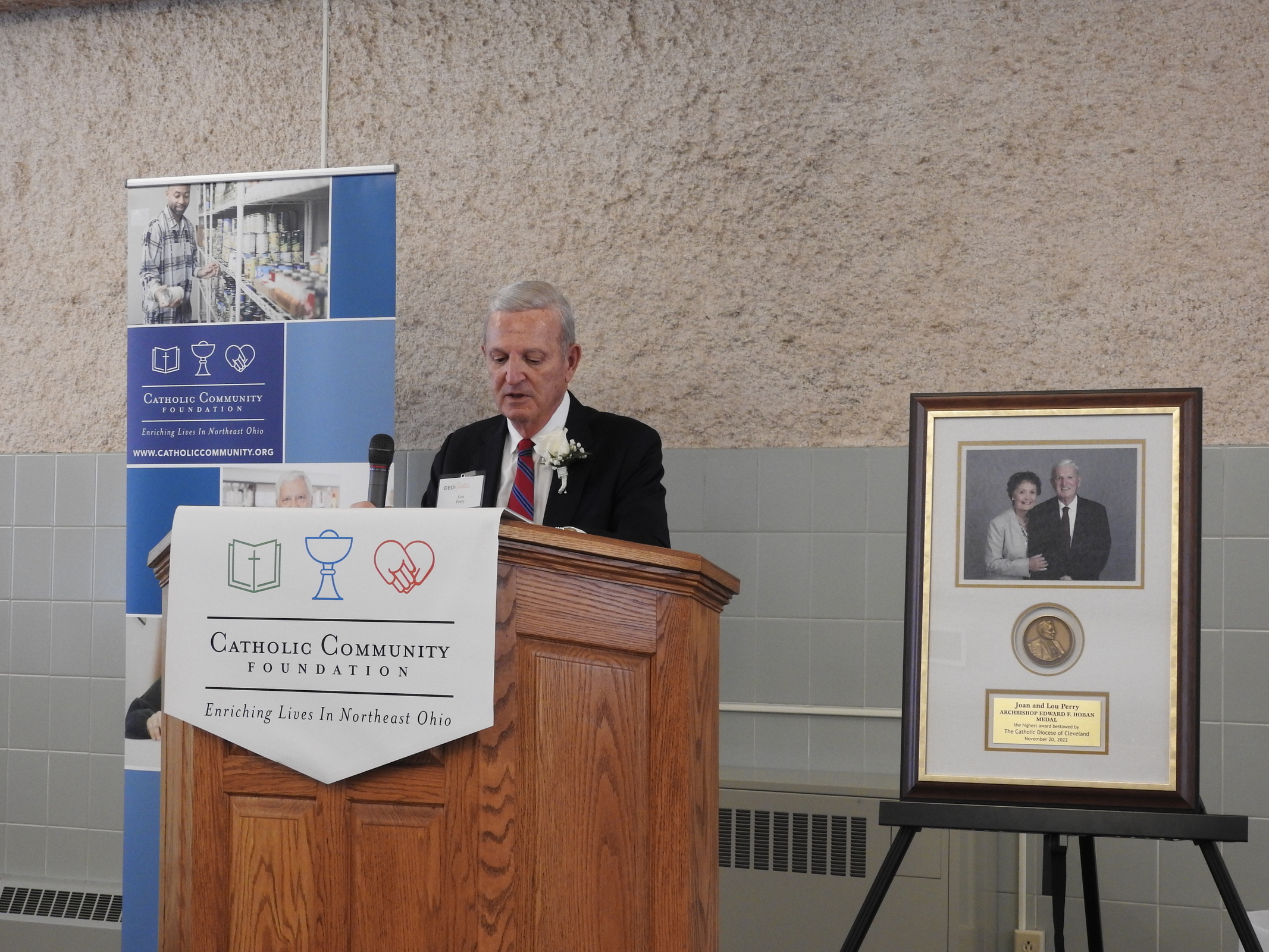 Perry called Archbishop Hoban, the diocesan shepherd after whom the award is named, a visionary. “Catholic Charities, Catholic education and religious vocations were his priorities. They also are Joan’s and mine,” he said, adding if these entities are supported, “the world will be better … We have to find a way to help more,” Perry added.