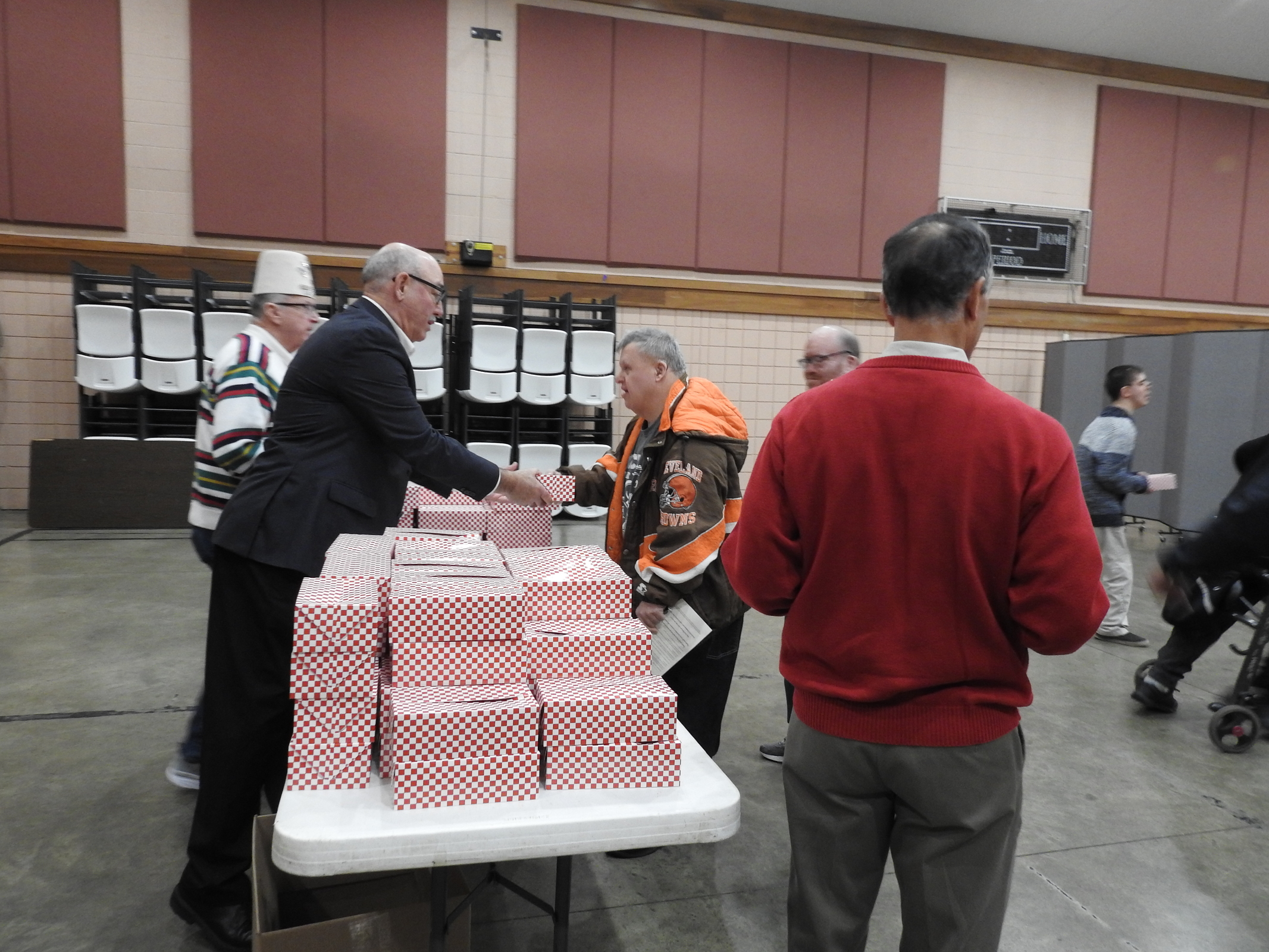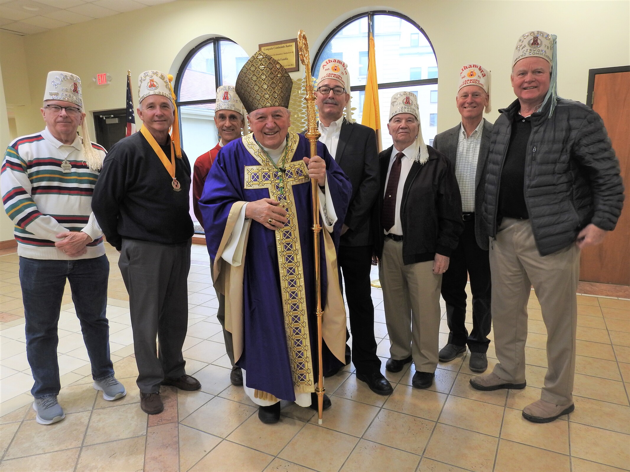 After Mass, Bishop Gries greeted the faithful and posed for photos before they picked up their boxed lunches from the Alhambra members.