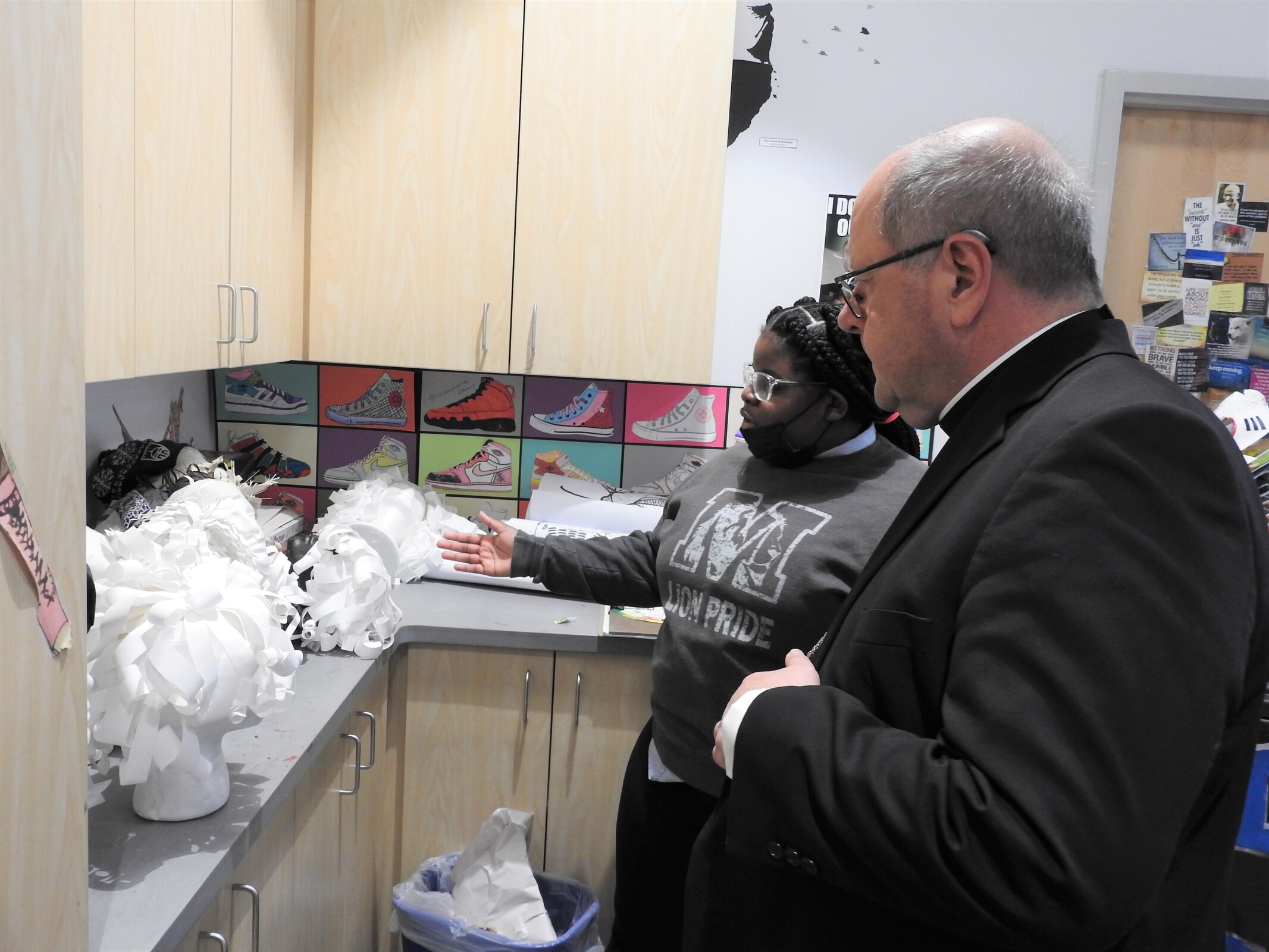“It is great to finally be with all of you,” Bishop Edward Malesic told the students, faculty, staff and other members of the Saint Martin de Porres community. The bishop began his first visit to Cleveland’s Cristo Rey high school on Jan. 17 with Mass in nearby St. Vitus Church.
