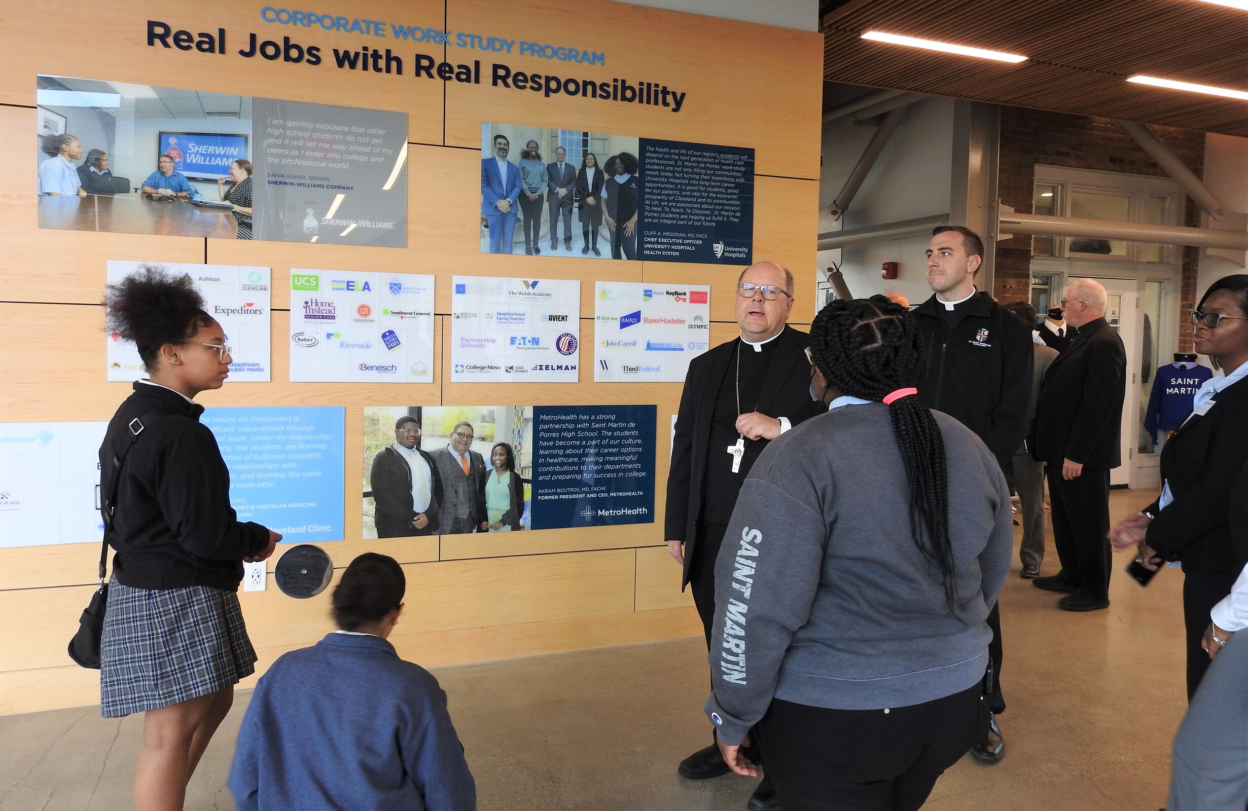 Learn more about Saint Martin de Porres, which has about 400 students in grades 9-12, here. The school is endorse by the Midwest Province of the Society of Jesus (Jesuits) and the Sisters of the Humility of Mary. It is a college preparatory school that is part of the Cristo Rey Network of schools. Students combine academics with a work-study program that is a partnership with more than 100 Cleveland-area businesses, including the Catholic Diocese of Cleveland.