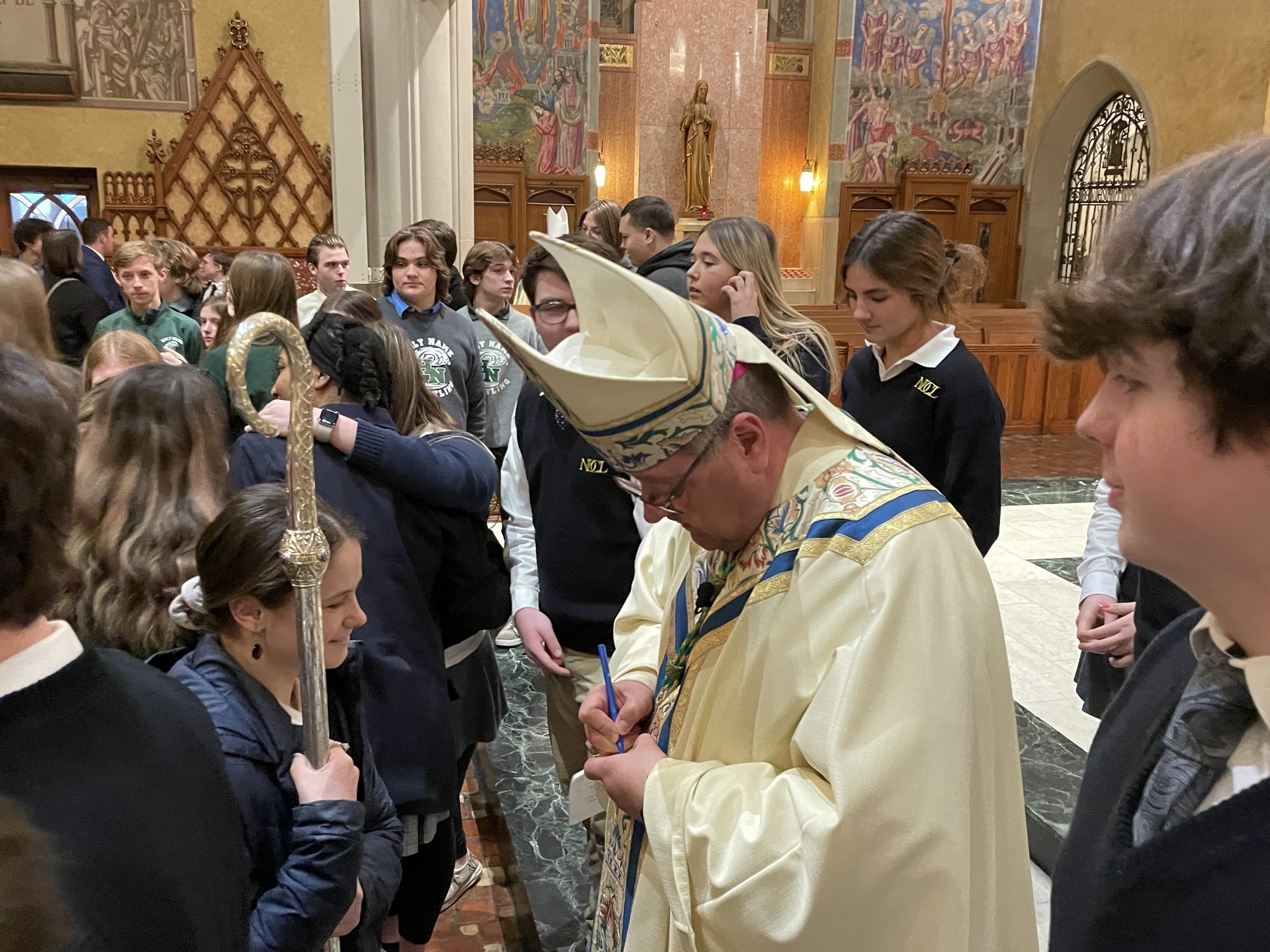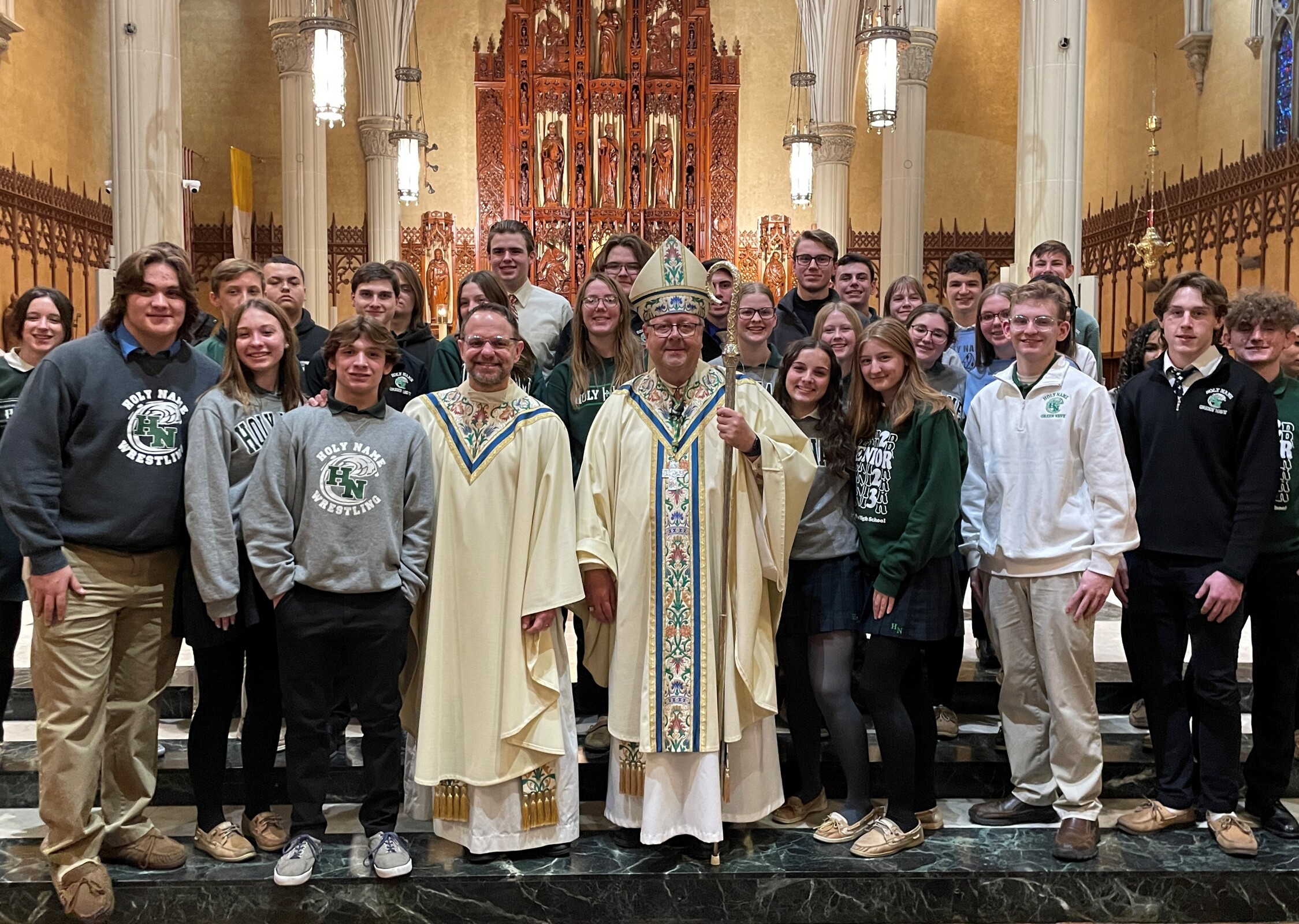 He also reminded the students and others gathered for the Mass and watching the livestream that they are “made glorious in the sight of the Lord because God loves you and God has loved you and me into life. Are we listening? Do we believe? Do you believe that God’s word to you and to me is true?” he asked.