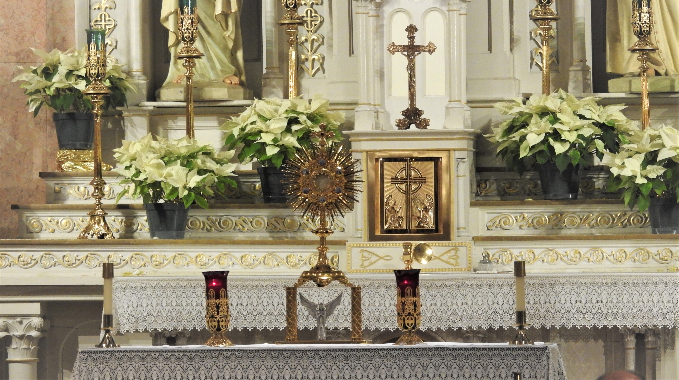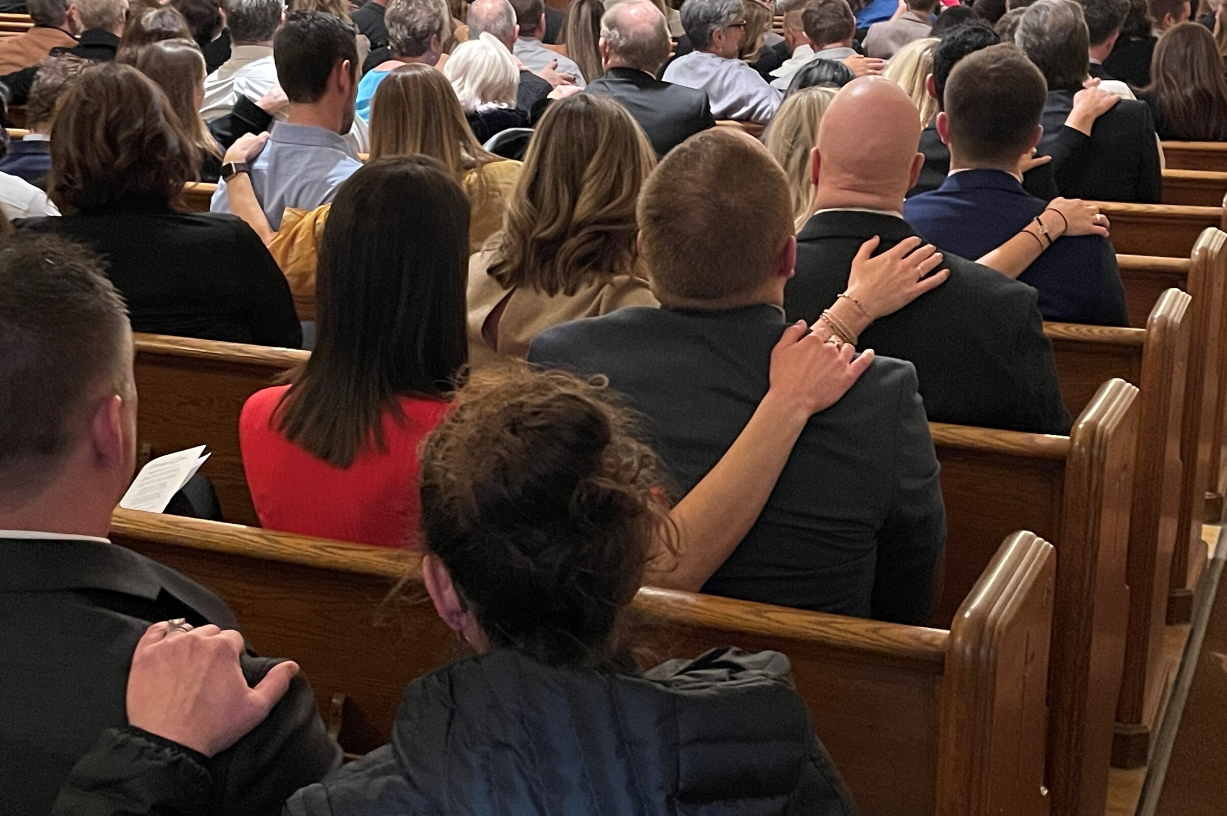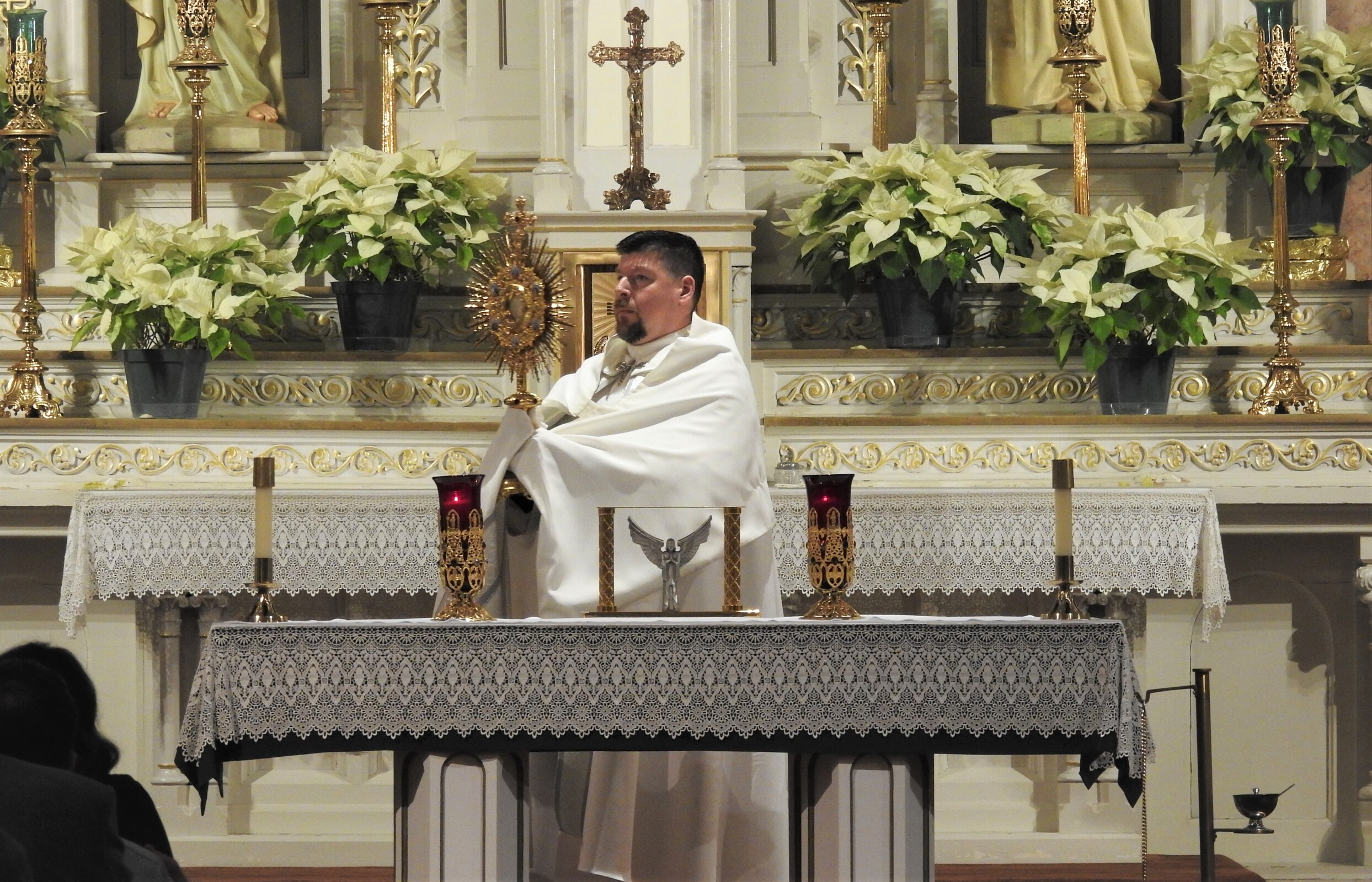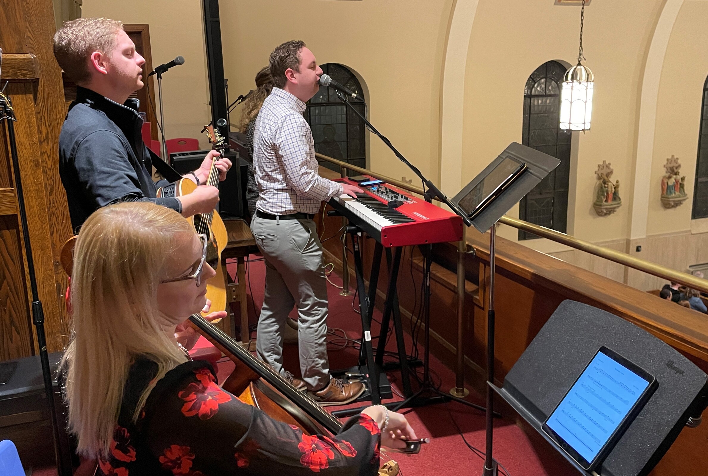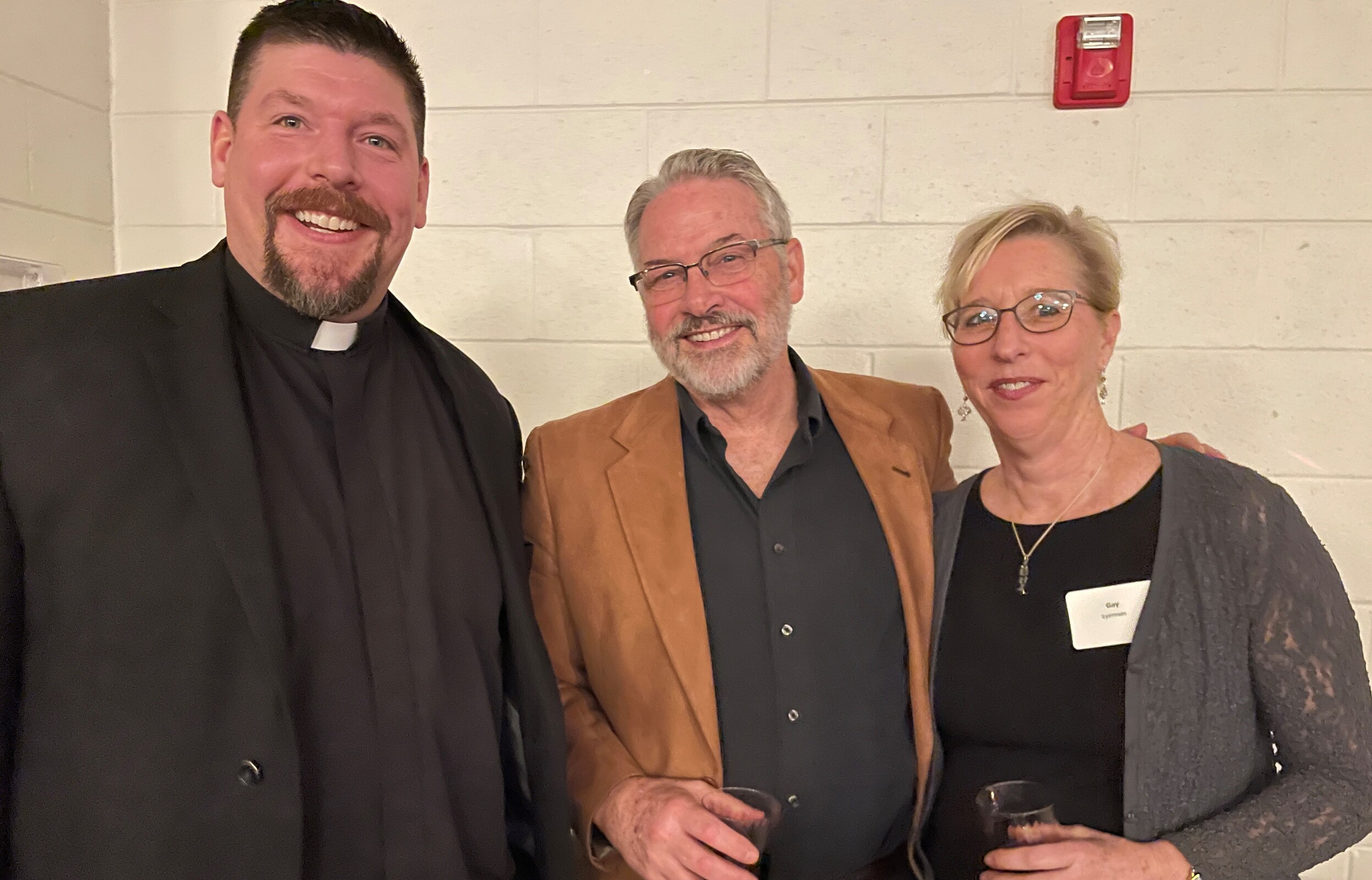 The evening began in the church with prayer, a chance to reflect on marriage, adoration, music and a message from Father Mann. Father Butkowski presided at adoration. Tanis Merimee and members of the Menkhaus family including Max and Father Joe Menkhaus, parochial vicar at St. Bernadette Parish in Westlake, provided music.