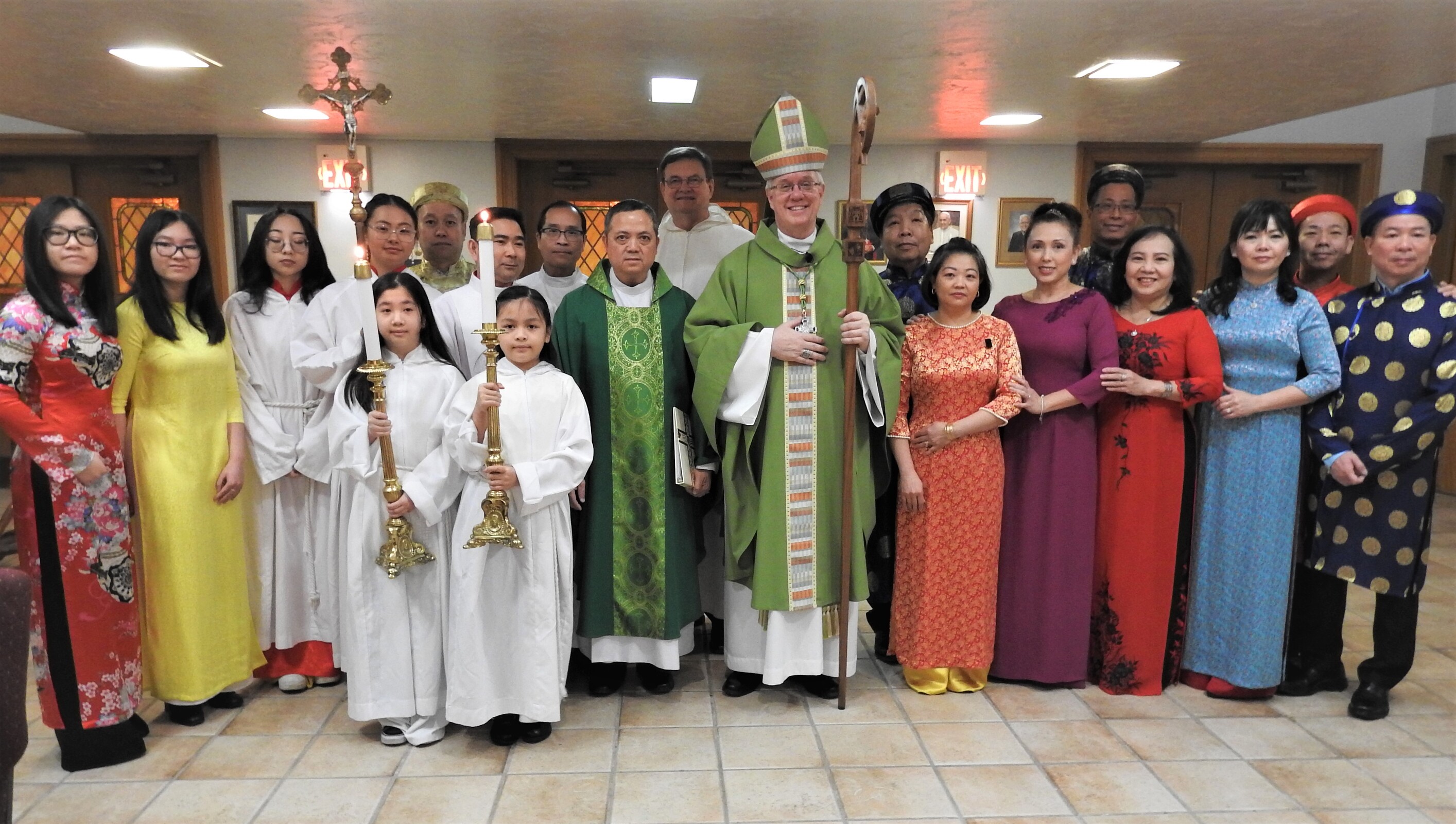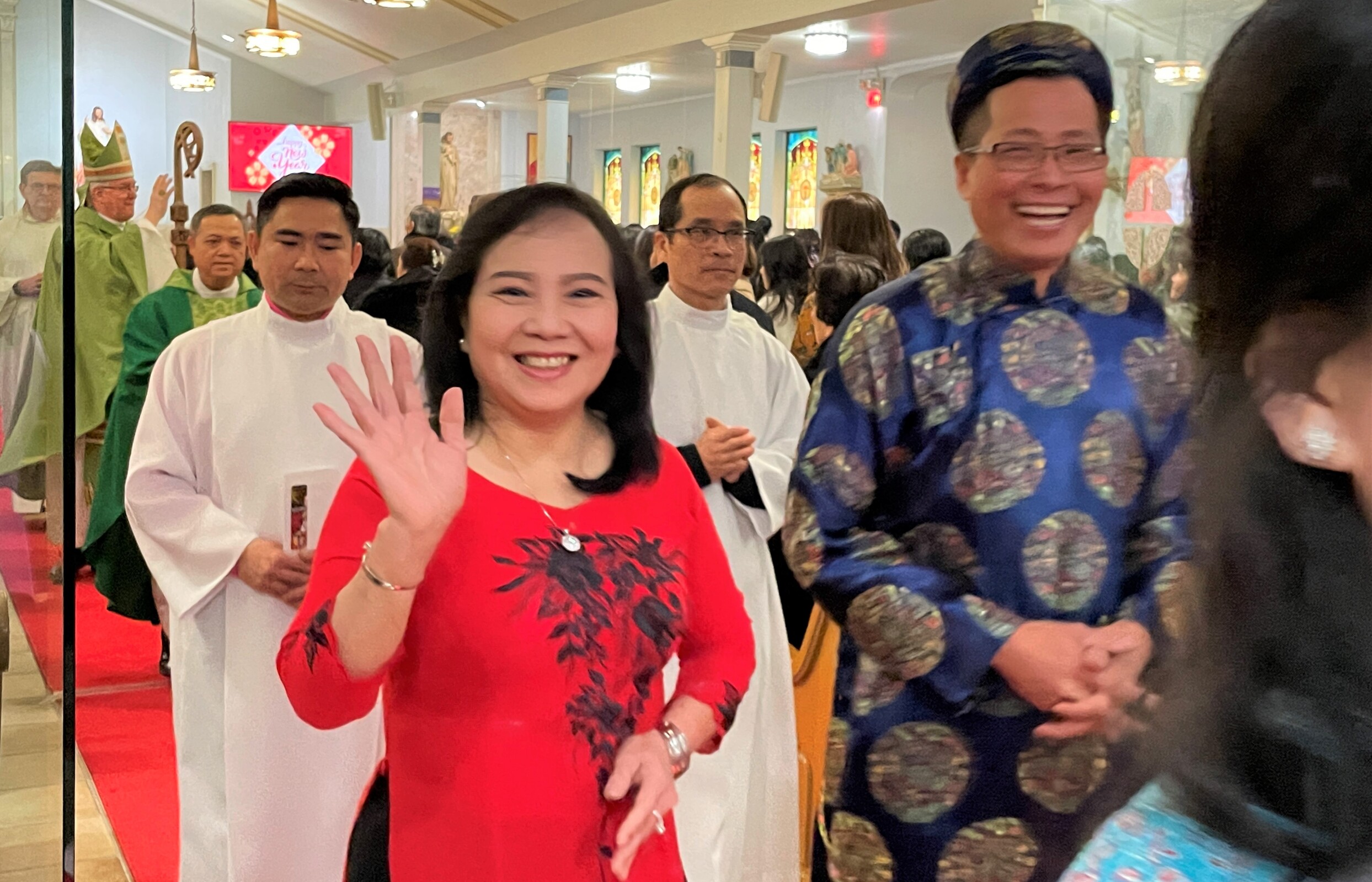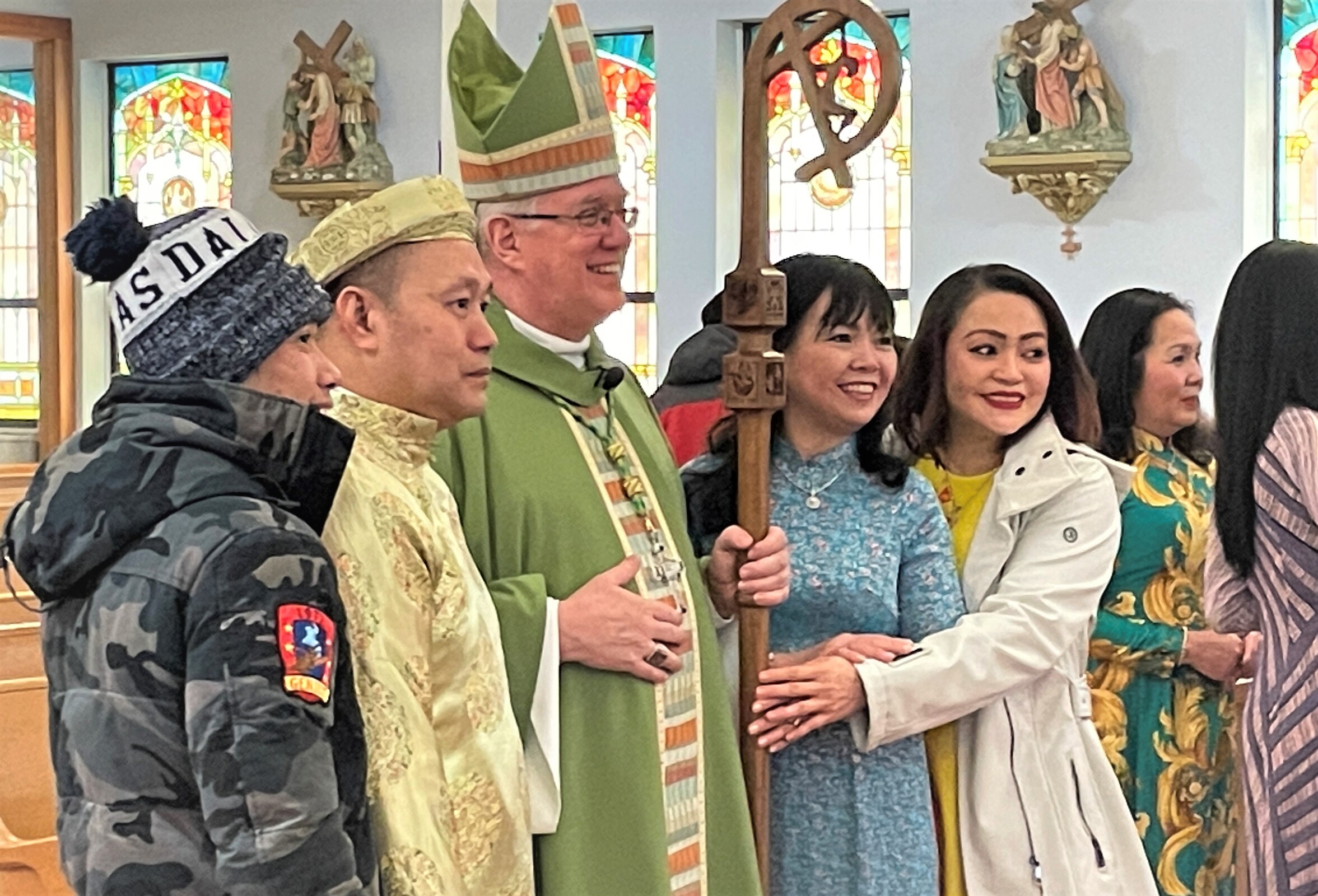 After Mass, the bishop greeted parishioners and posed for photos before heading to the school hall to enjoy a traditional Vietnamese meal and entertainment.