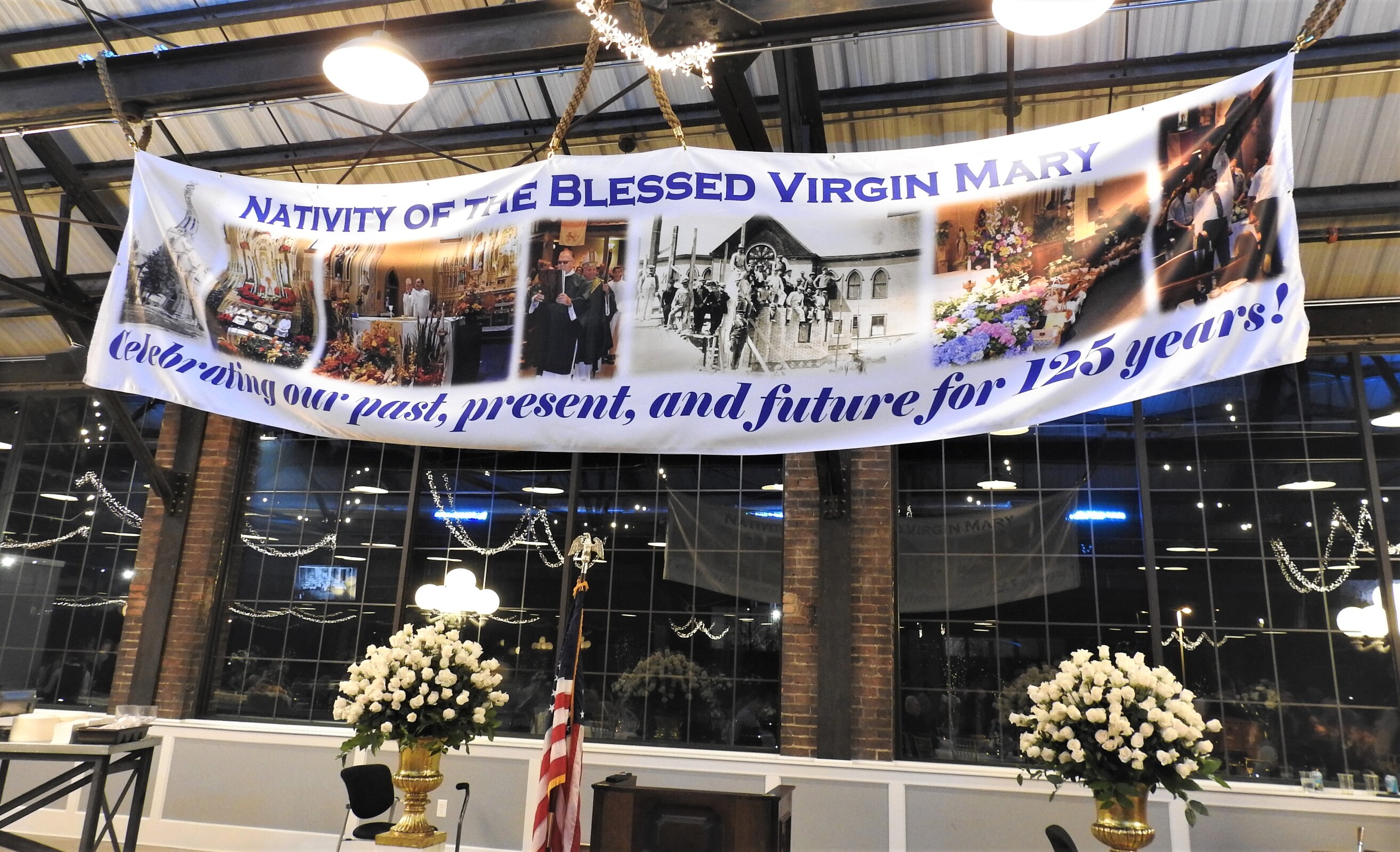 After Mass, parishioners and guests went to The Shipyards, a nearby party/meeting venue on the Black River that formerly was the Cleveland Shipbuilding Co., a precursor to the America Shipbuilding Co. The historic, renovated building is the same vintage as Nativity Parish.