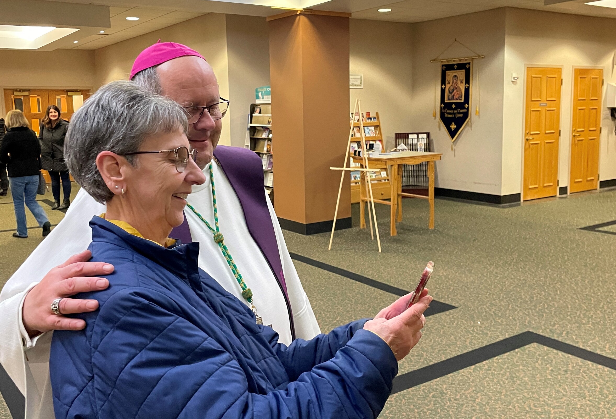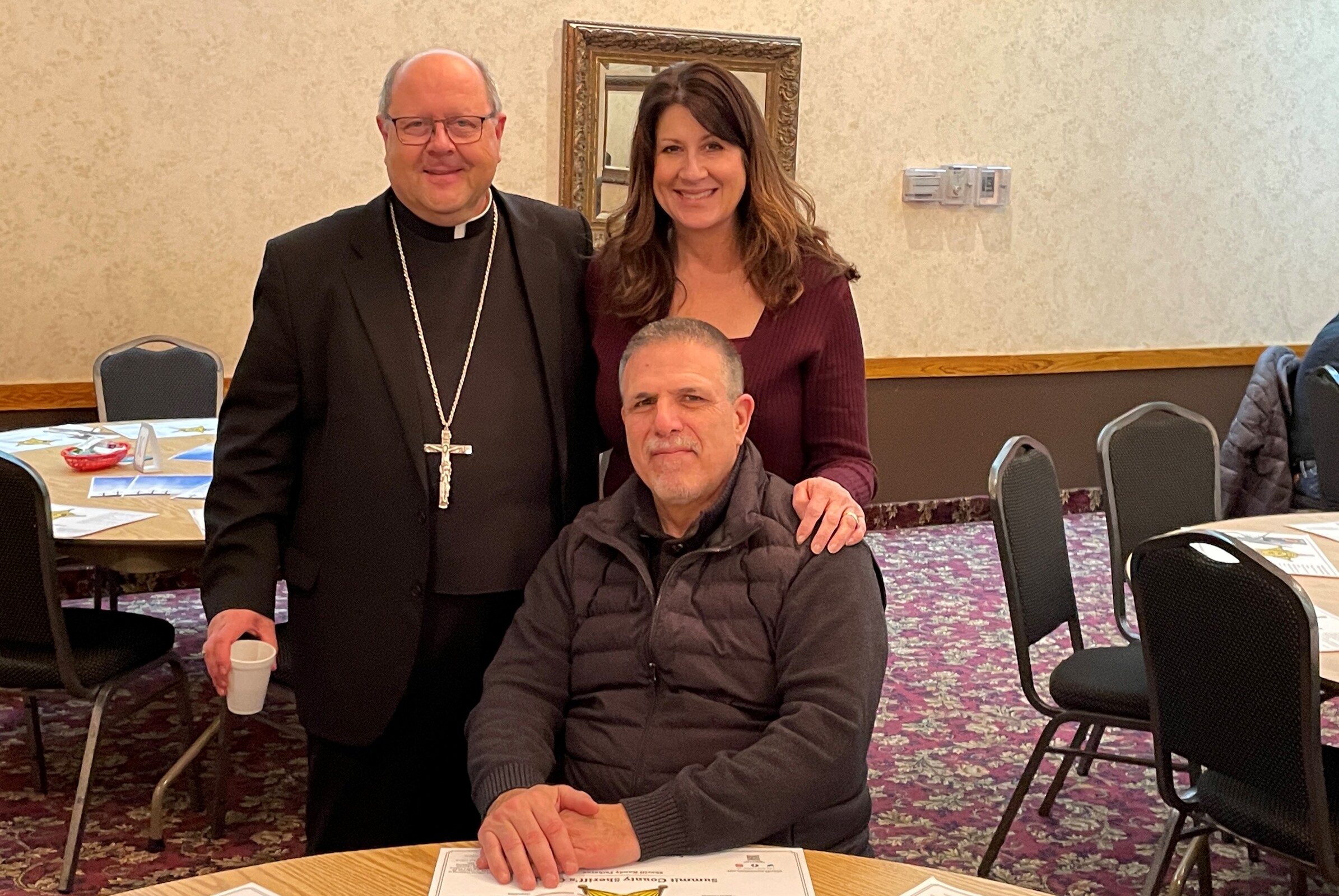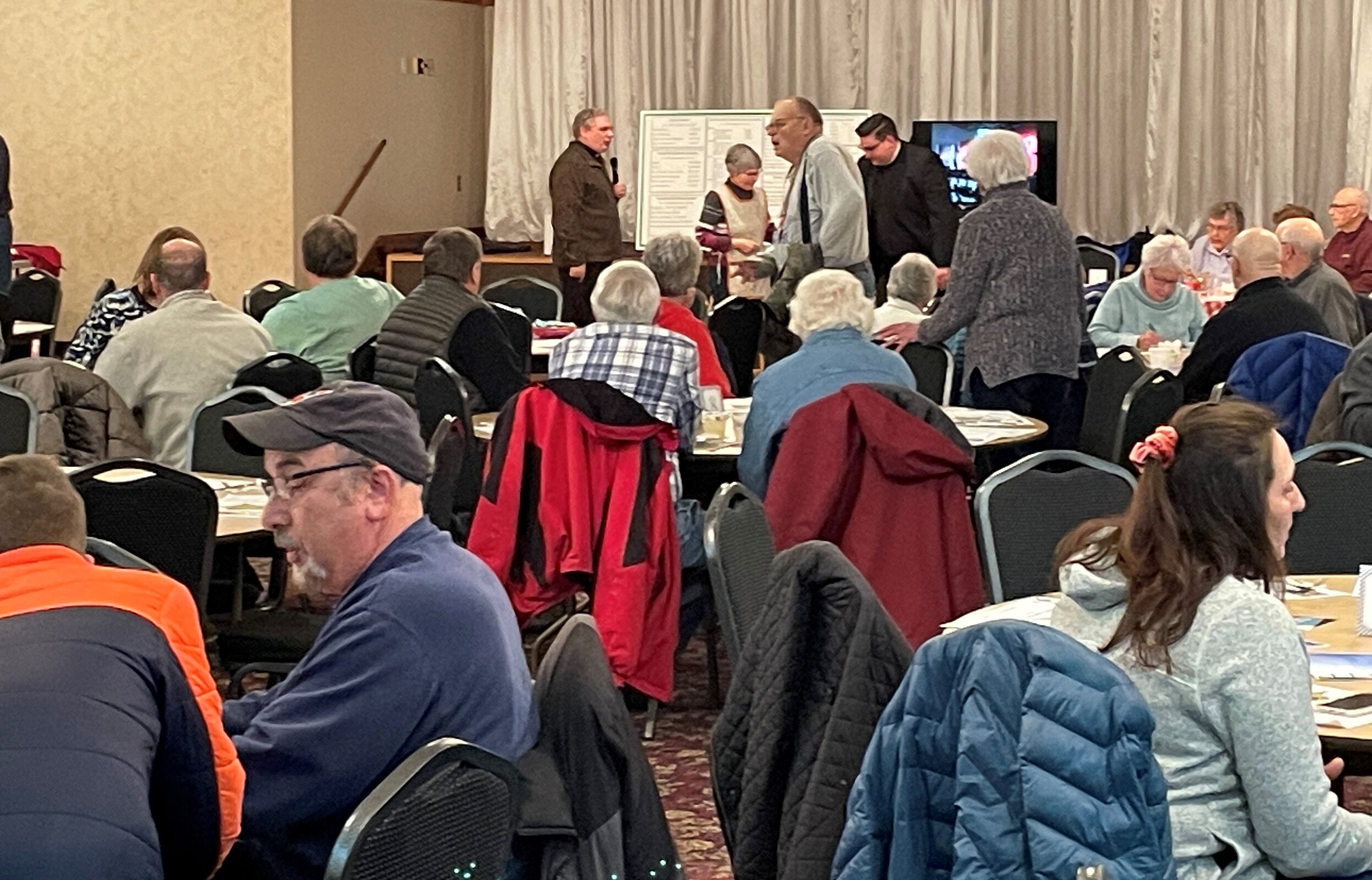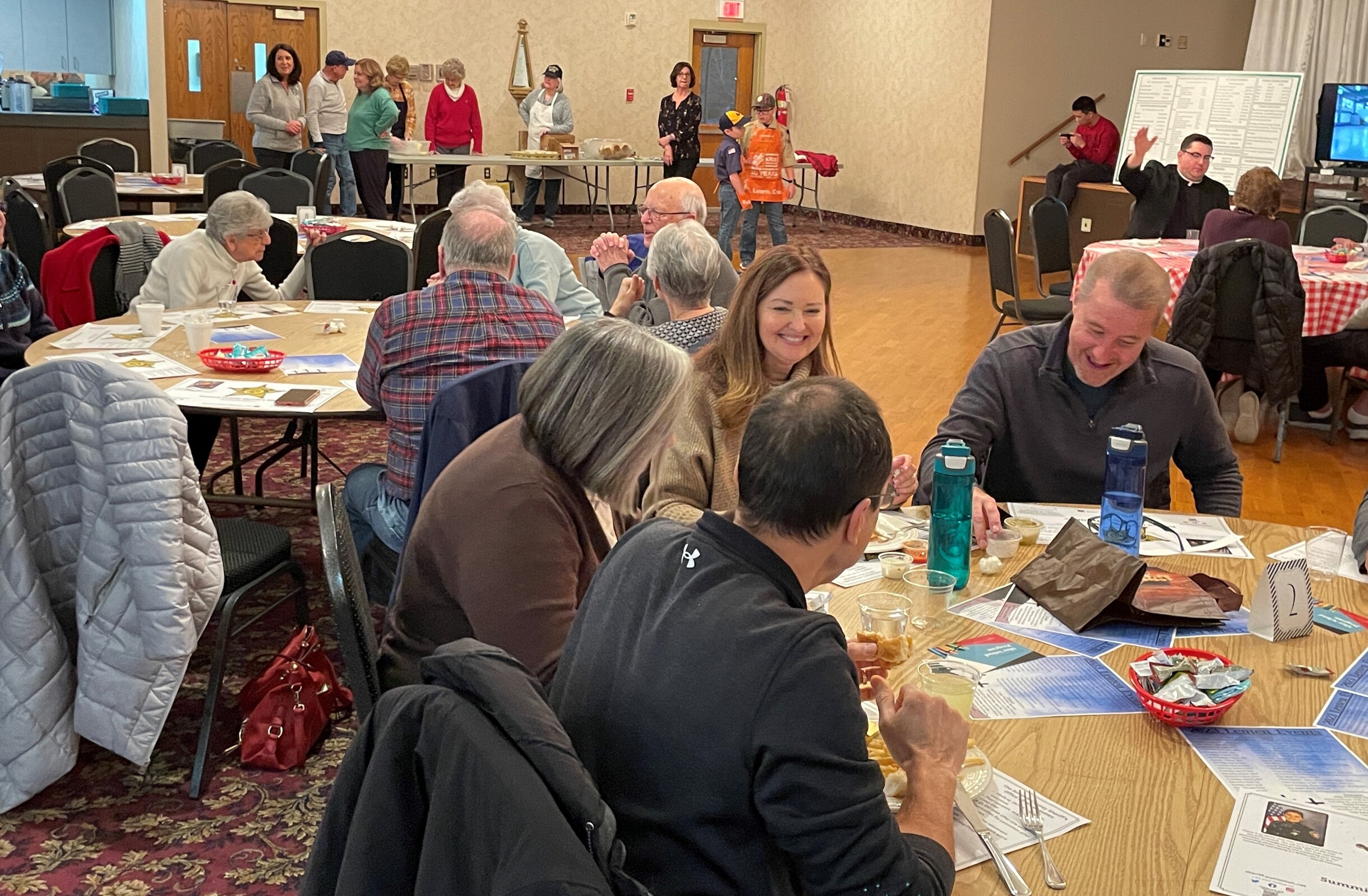 The bishop spent time on Feb. 24 resuming a Lenten tradition by visiting with parishioners, enjoying a fish fry and praying Stations of the Cross in the church.