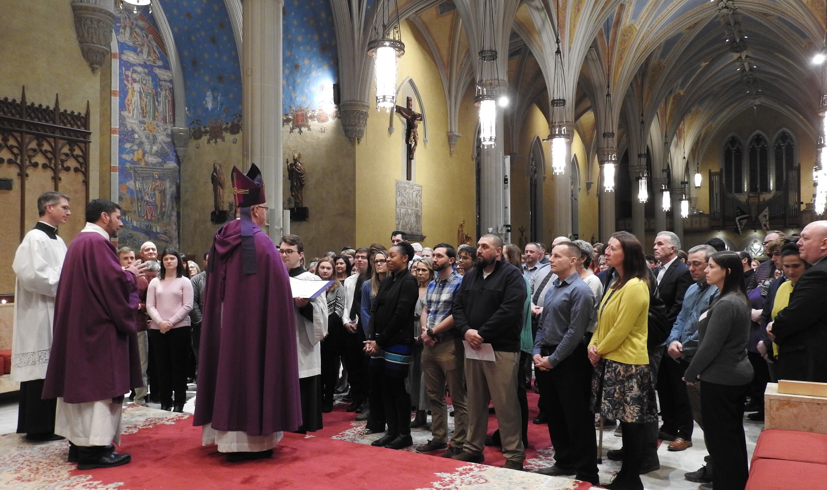 Two liturgies for the Rite of Election of Catechumens and Call to Continuing Conversion of Candidates were celebrated on the First Sunday of Lent, Feb. 26, in the Cathedral of St. John the Evangelist. About 1,700 people participated, including the catechumens, candidates, godparents, pastors, religious education formators, family members and friends.