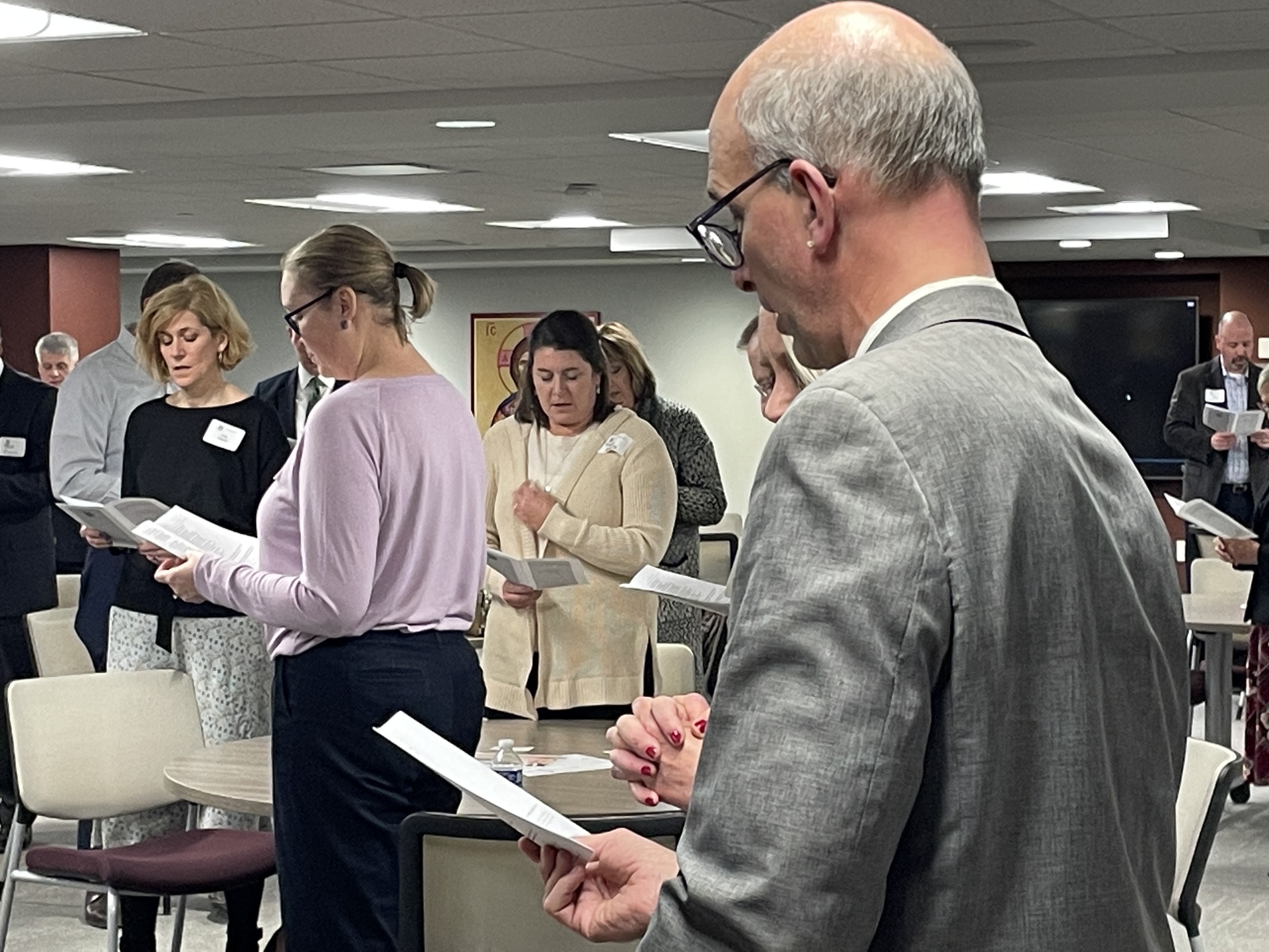 Members of the Lawyer’s Guild of the Catholic Diocese of Cleveland spent about two hours on March 20 socializing, praying evening prayer, enjoying a simple soup, salad and sandwich meal and listening to a Lenten reflection from Bishop Edward Malesic. The group gathered in the diocesan Cathedral Square Plaza offices.