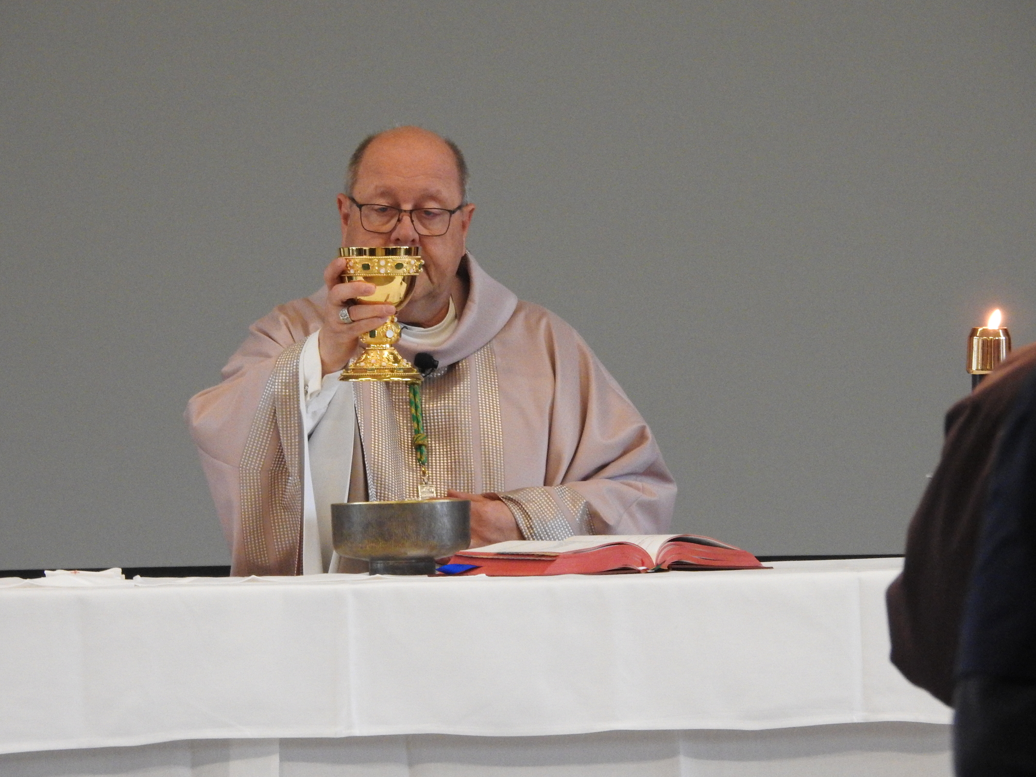 He also is present sacramentally, in the bread and wine we offer that is consecrated by the priest at Mass thus becoming the body and blood of Christ, the bishop said.