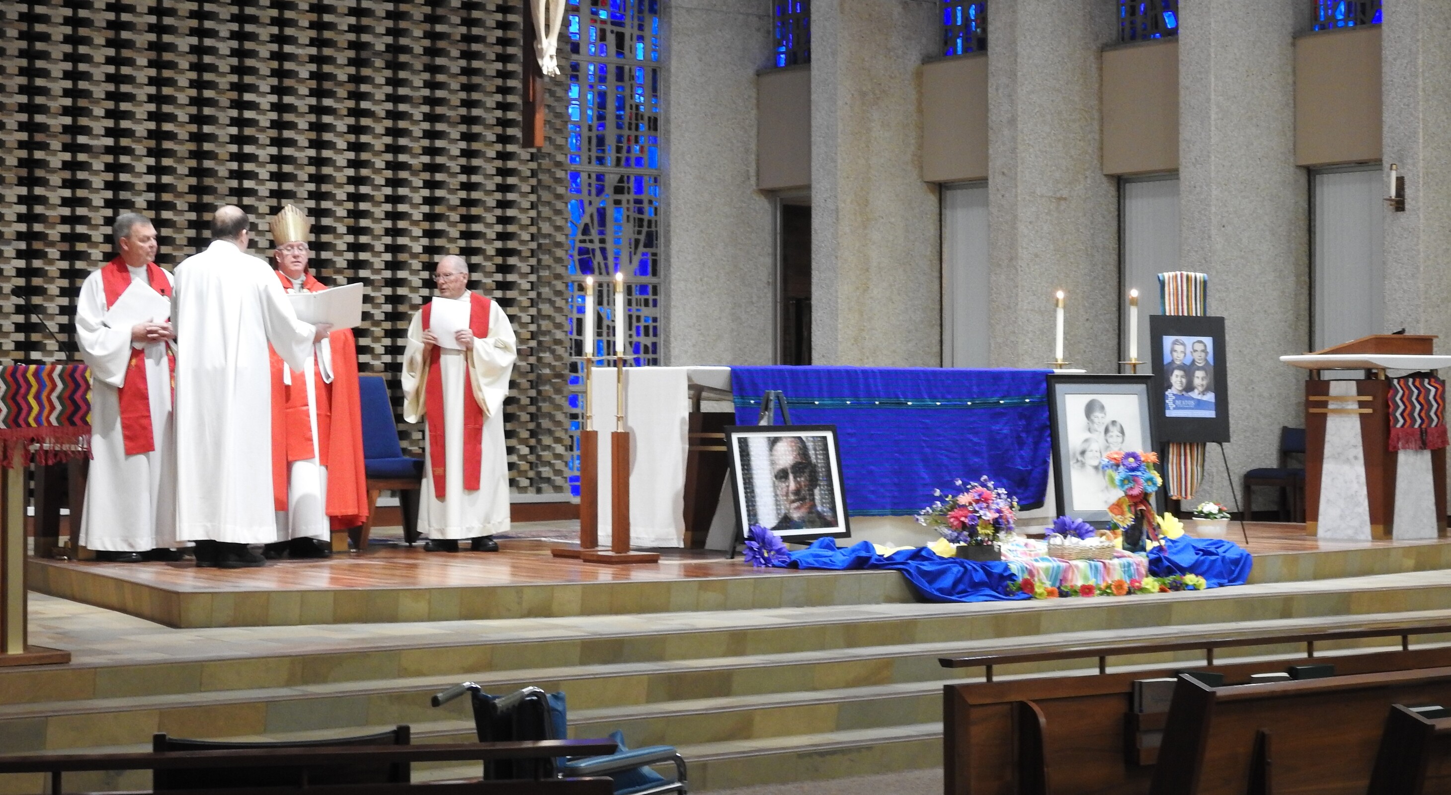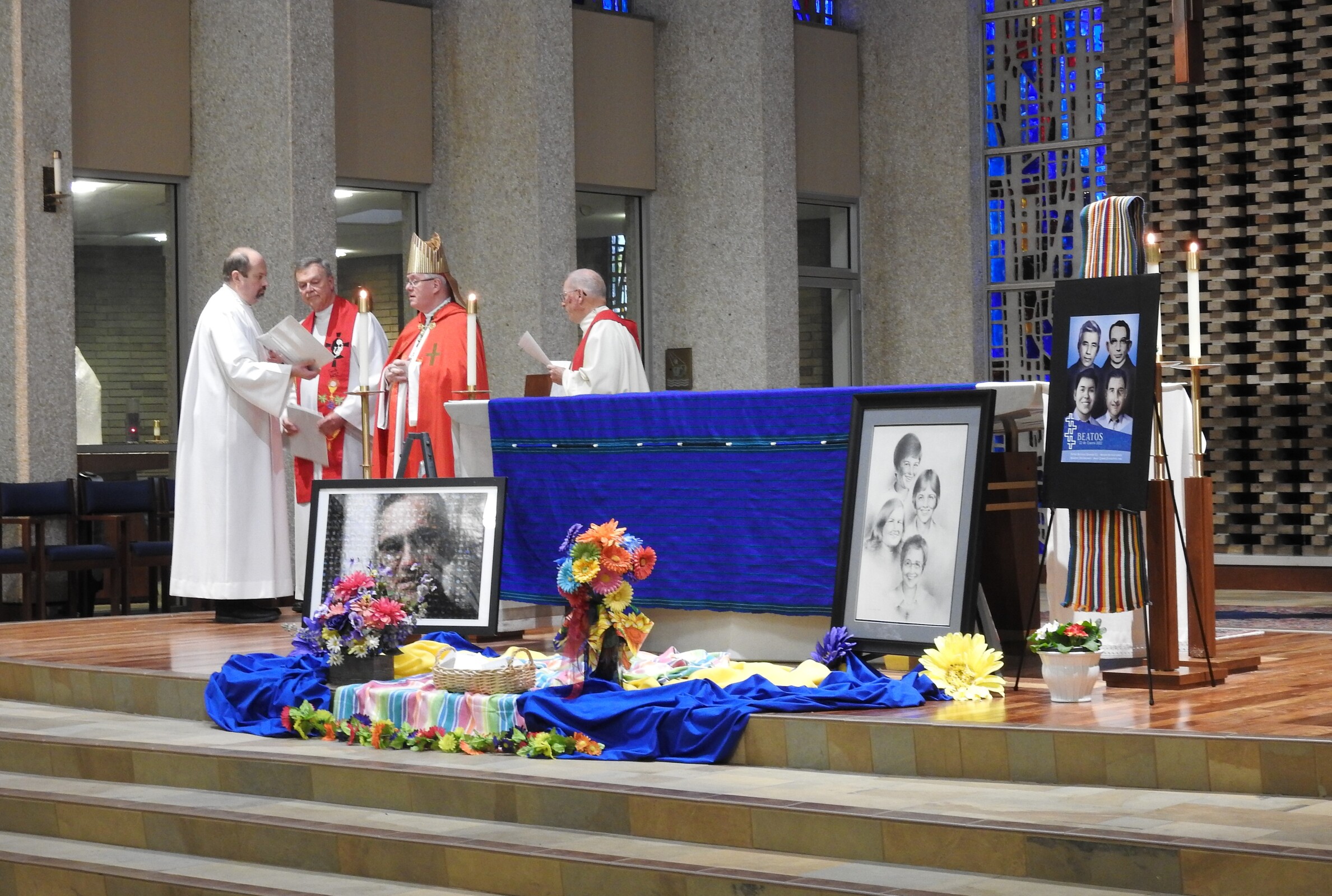 In addition to remarks by Bishop Woost and Father Vellenga, the prayer service included photos of St. Romero and the four churchwomen who were murdered Dec. 2, 1980 in El Salvador: Ursuline Sister Dorothy and lay missionary Jean Donovan from the Diocese of Cleveland and Maryknoll Sisters Ita Ford and Maura Clarke, and pictures from the COAR Village in El Salvador and the diocesan mission in San Salvador.