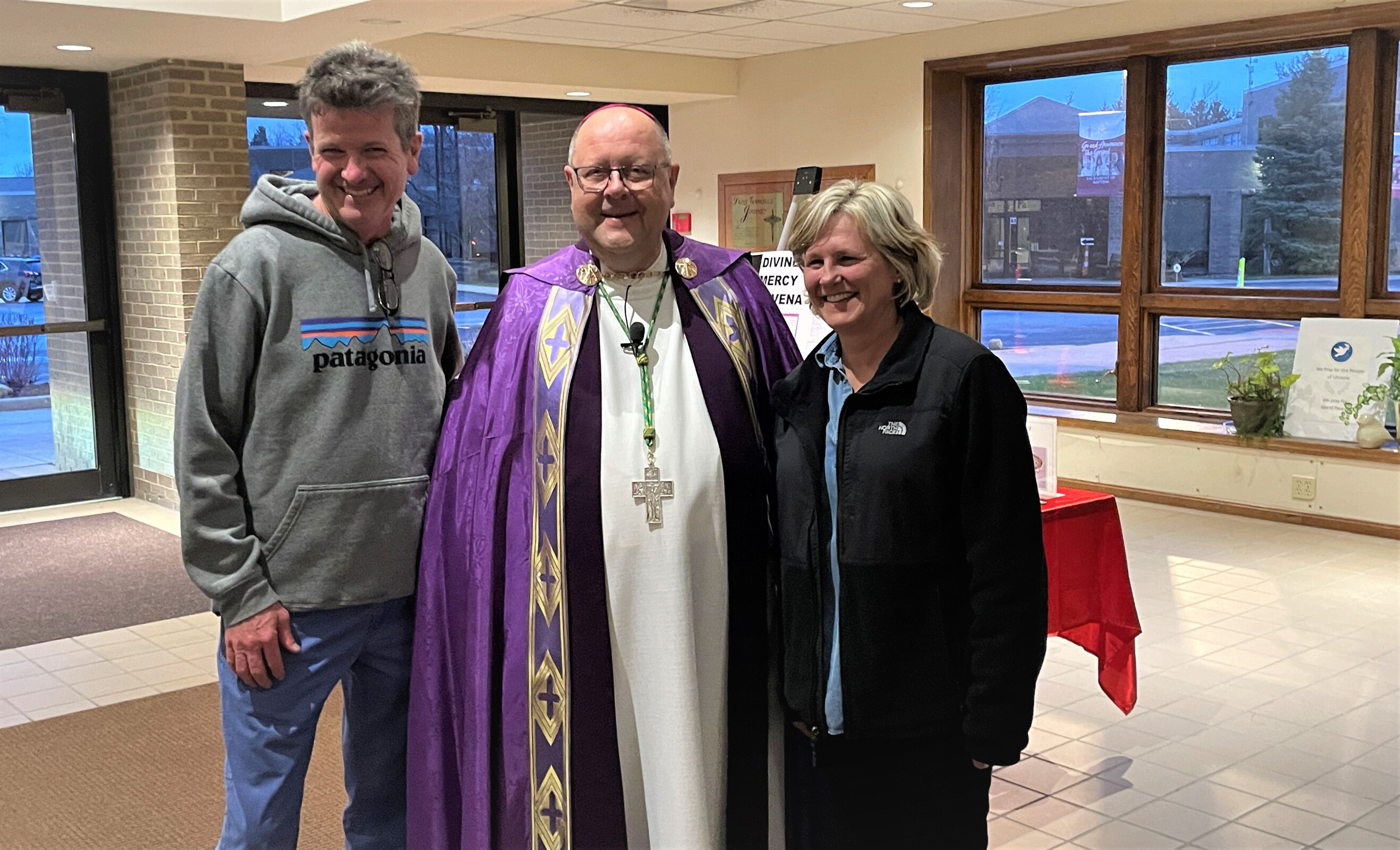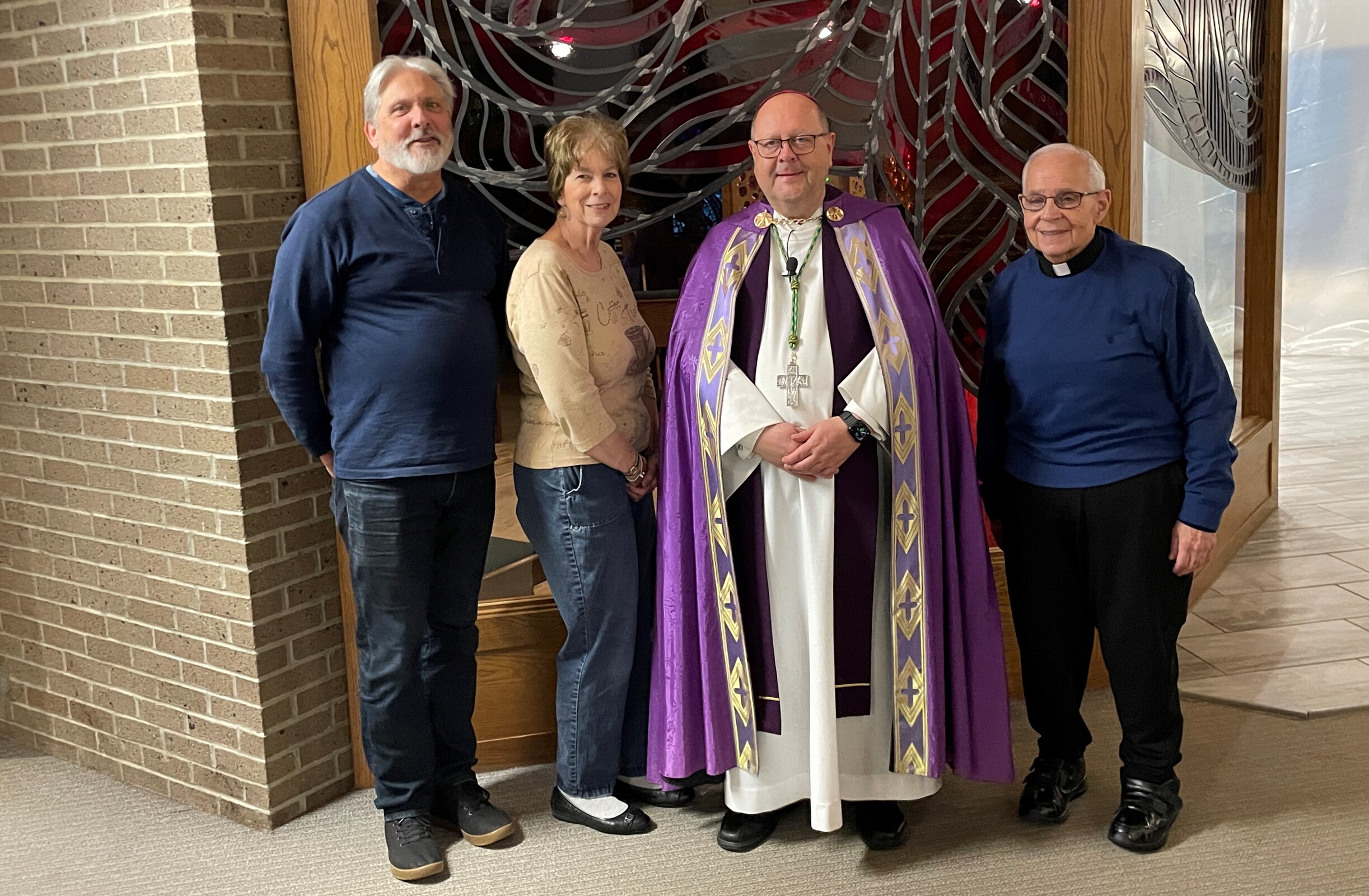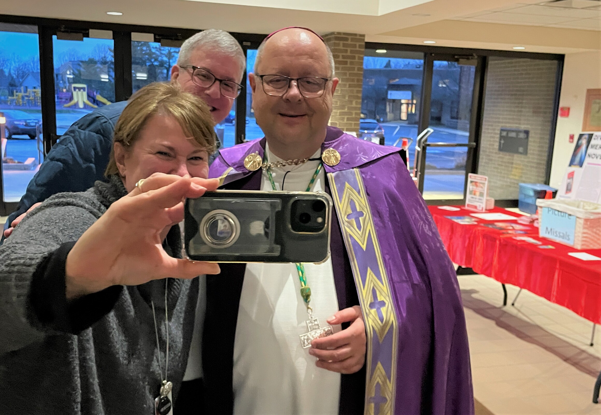 With Lent drawing to a close. Bishop Edward Malesic traveled to St. Gabriel Parish in Concord Township for a fish fry and to pray Stations of the Cross on March 31. He was welcomed by Father Fred Pausche, pastor; Father David Stavarz, parochial vicar; parish staff, fish fry volunteers and others.