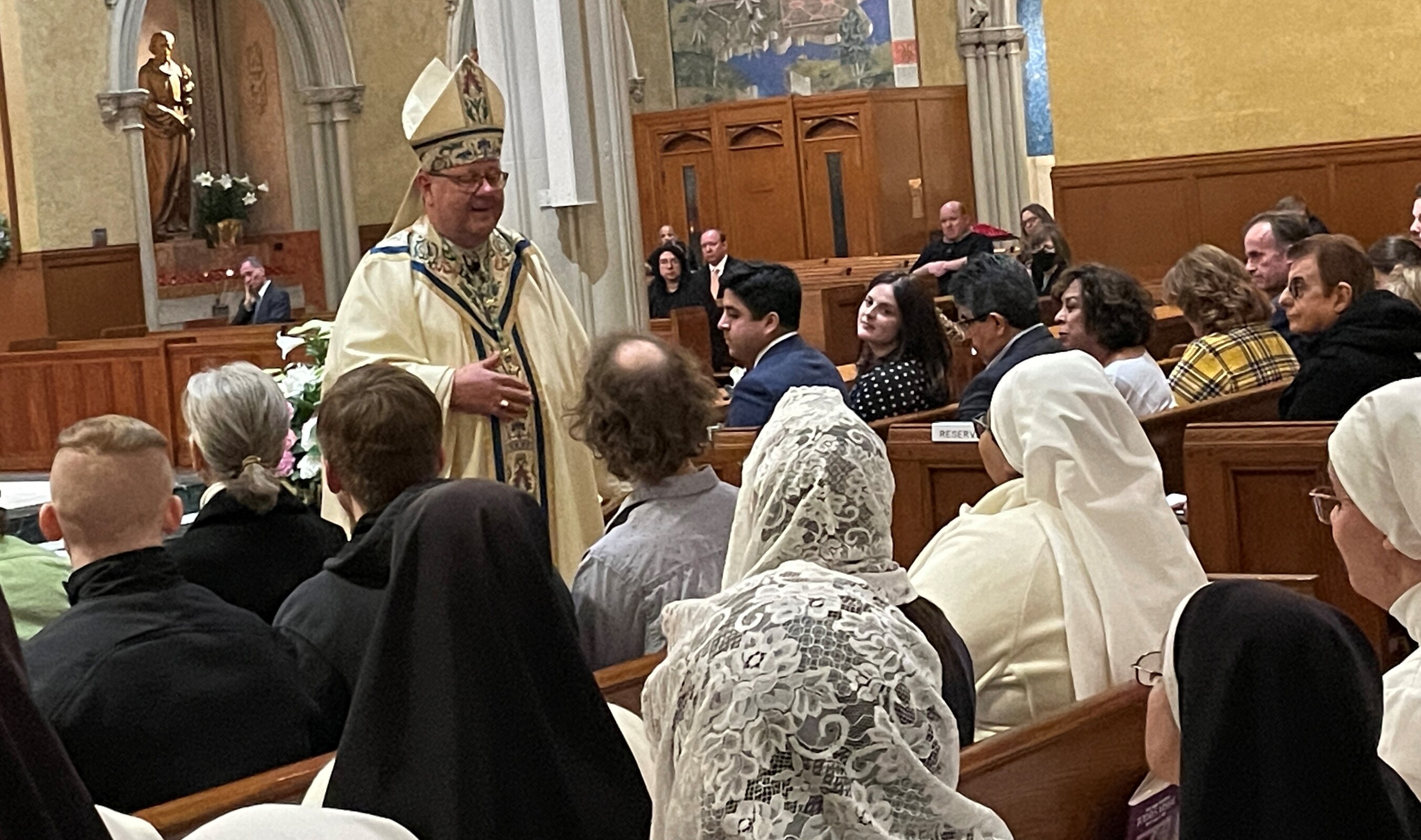 “This liturgy is the work of God and the work of many people,” Bishop Malesic said after Mass. In addition to those who helped catechize the catechumens and candidate, their sponsors/godparents, he thanked Father Sean Ralph, cathedral rector, and the concelebrants.