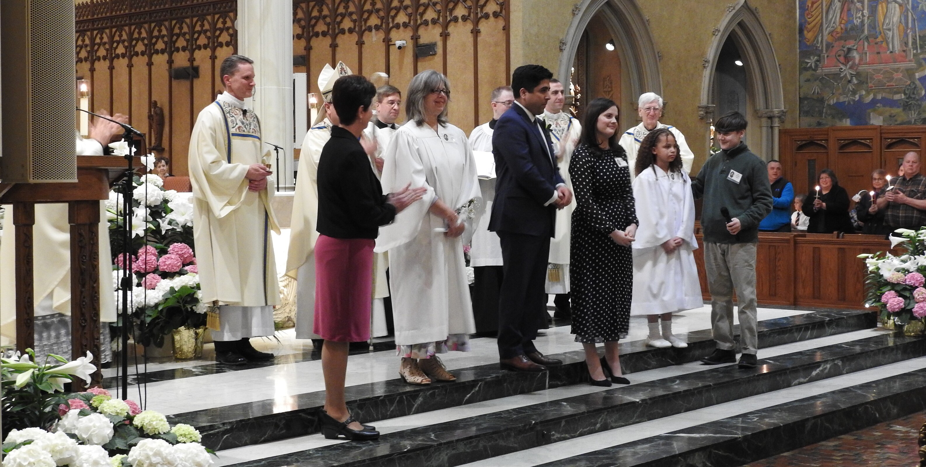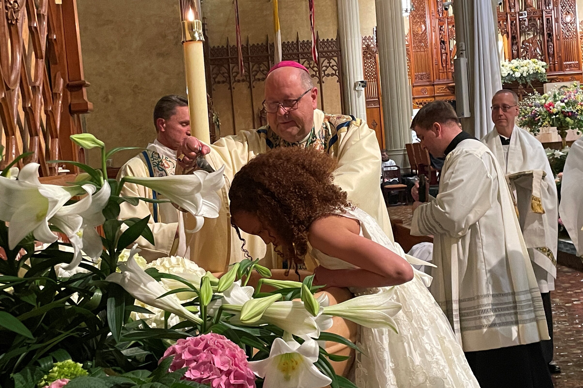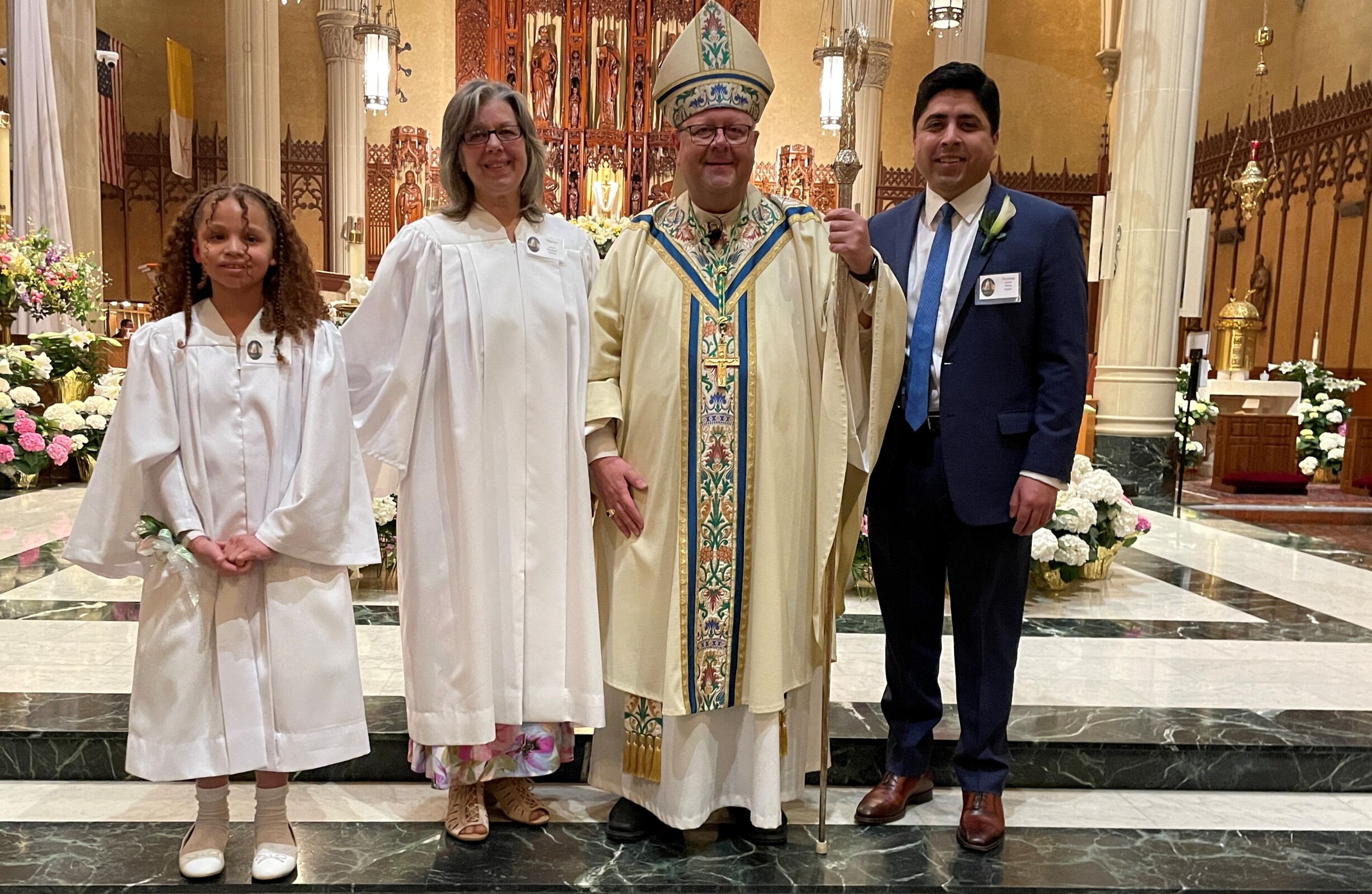 That was the case for three people on April 8 in the Cathedral of St. John the Evangelist. One adult and one child were baptized, confirmed and made their first Communion. Another man, baptized previously, was confirmed and made his first Communion.