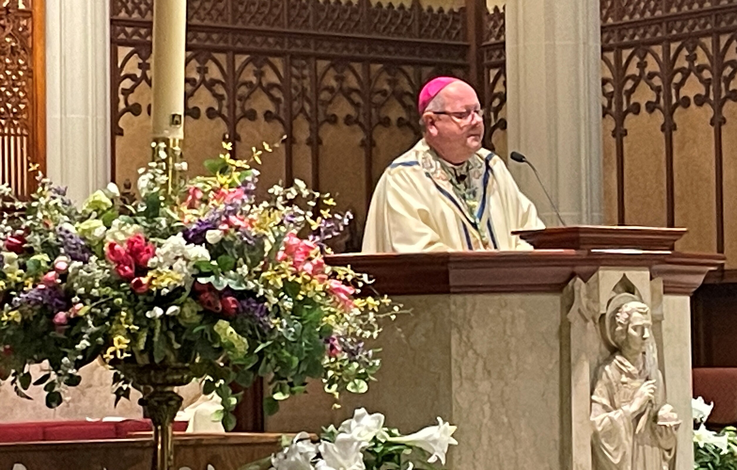 Looking over the congregation, the bishop shared a story from one of his seminary homiletics classes. “The professor said to us, ‘Gentlemen, on Easter Sunday, when you look out over the people gathered in the pews, if you don’t see Christ rising up in them, you are not ready to preach to them.’”