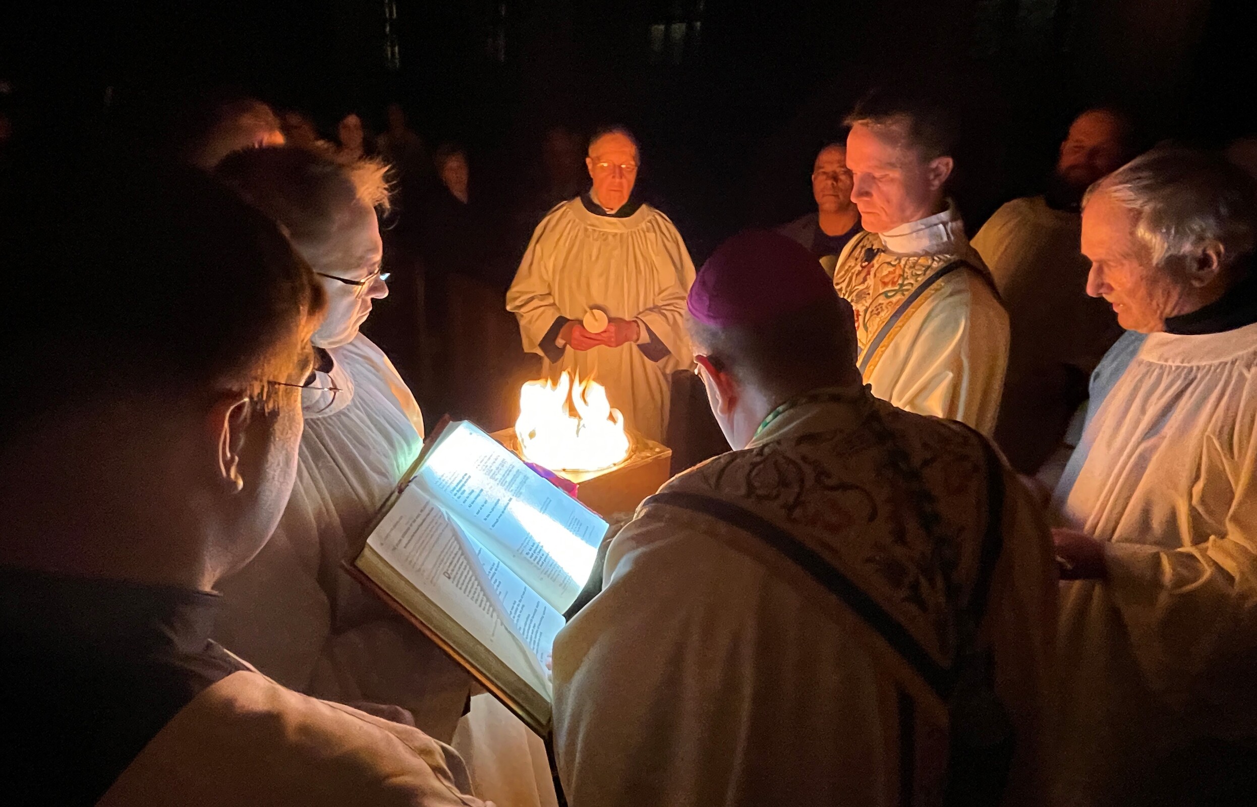 Bishop Edward Malesic, the celebrant, began the liturgy in the dark at the back of the cathedral. A small fire was built, the new paschal candle was blessed and lit. The fire was used to light small candles which then were passed around the cathedral as the light spread throughout.