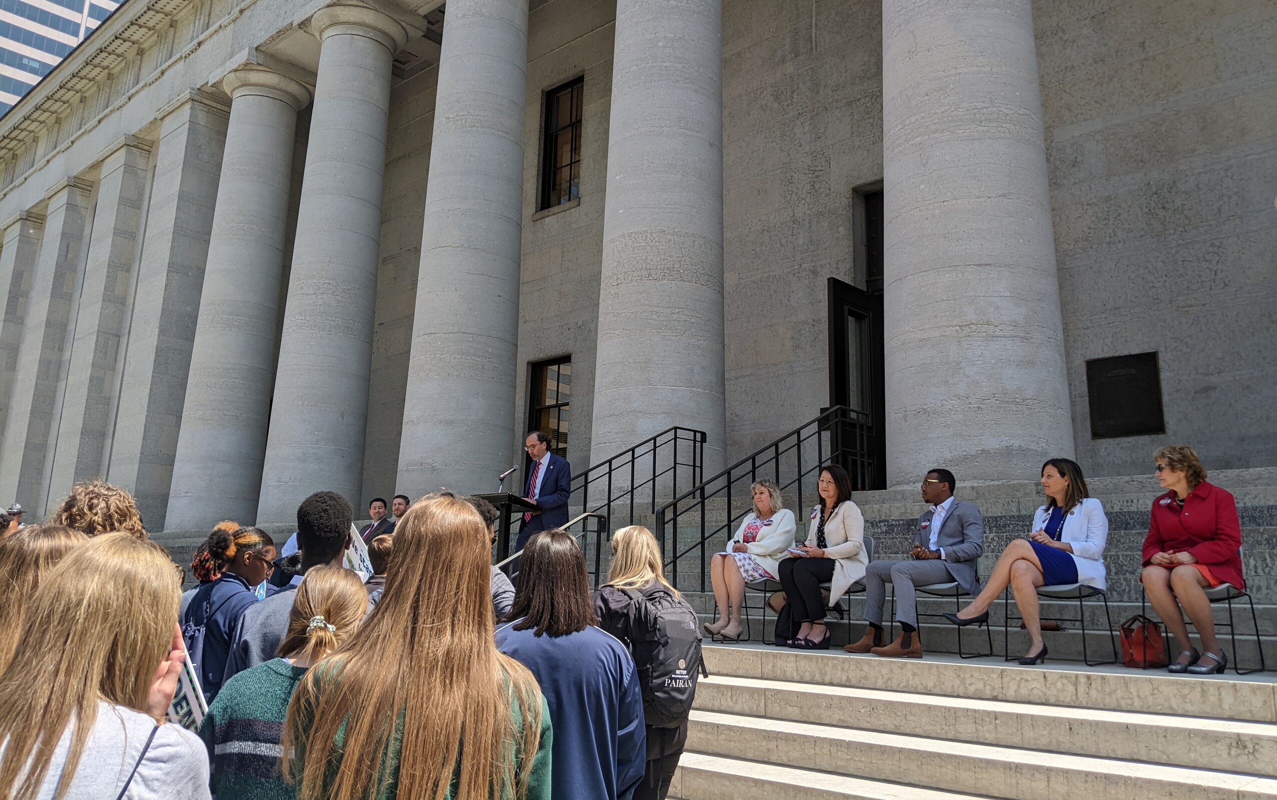The rally, which lasted about an hour, featured several public officials including Ohio Gov. Mike DeWine and leaders from the Ohio Senate and House of Representatives. Also speaking were national leaders in the school choice movement.