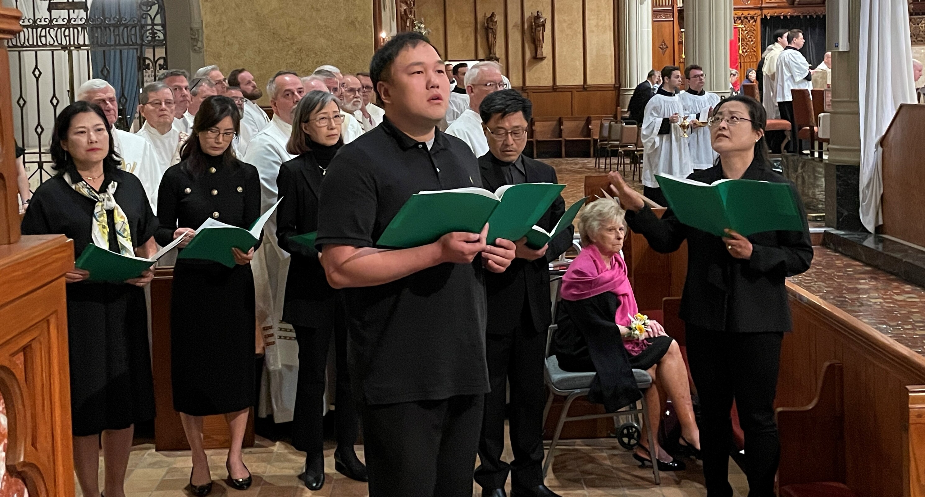 Four priest friends of Father Han traveled from South Korea for the ordination liturgy. Three were classmates before he entered the seminary here and the fourth was his former pastor. Many of his family members also made the trip to attend the ordination and one of his sisters proclaimed a reading in Korean.