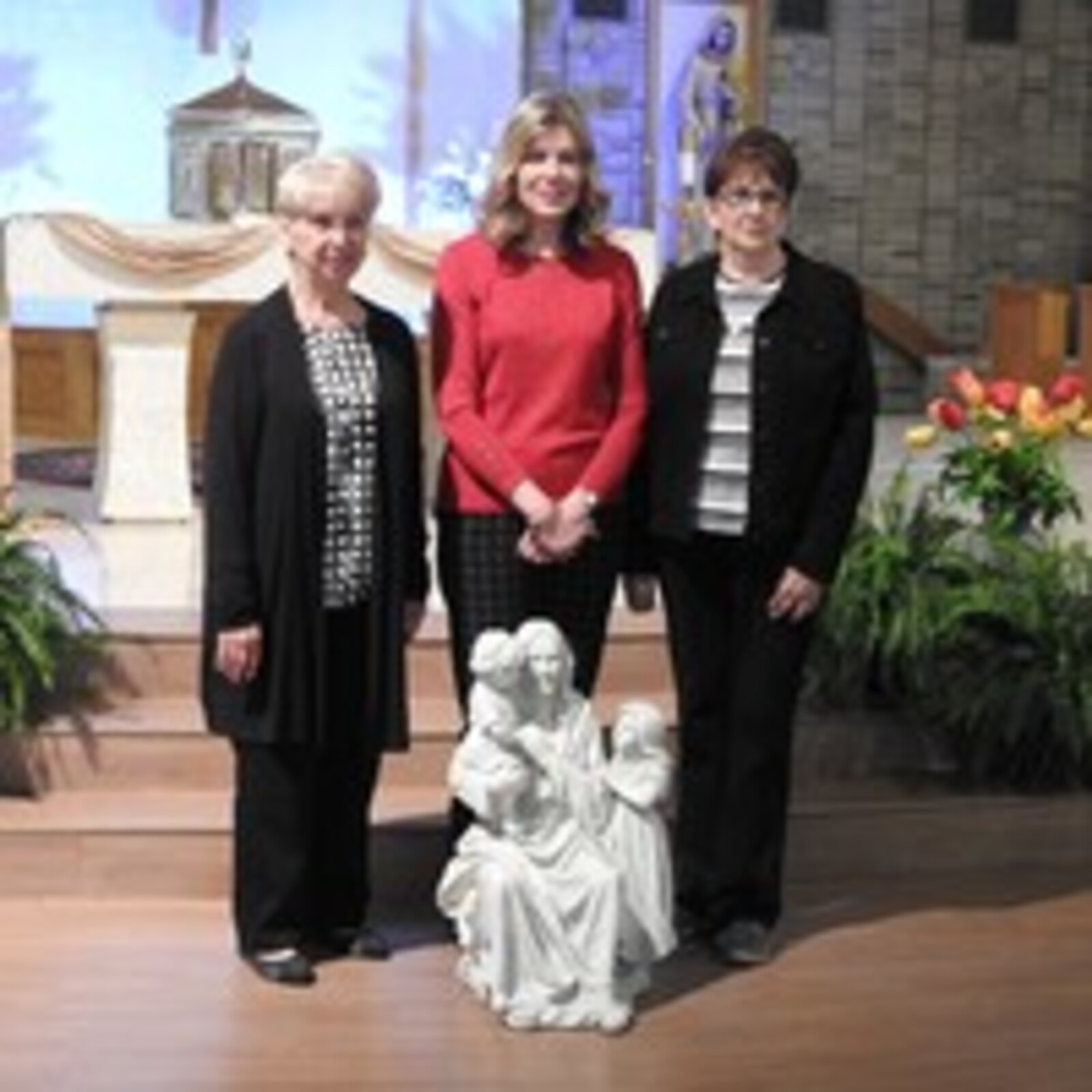 Father Betters said introducing the No Place for Hate chapter at the school was an important contribution. “It reminds us that each of us is loved for who we are. She does it well,” he said, referring to Garuckas’ method of teaching. “Jesus is your role model so we got you a model of him,” he added, pointing to a large garden statue of a smiling Jesus with two children that was sitting in front of the altar. The gift was presented to Garuckas in appreciation for her years of service to SS. Robert and William. “You never shied away from hard work and never said no when asked to do something. You treated people with the dignity and respect of being created in the image and likeness of God,” he added.