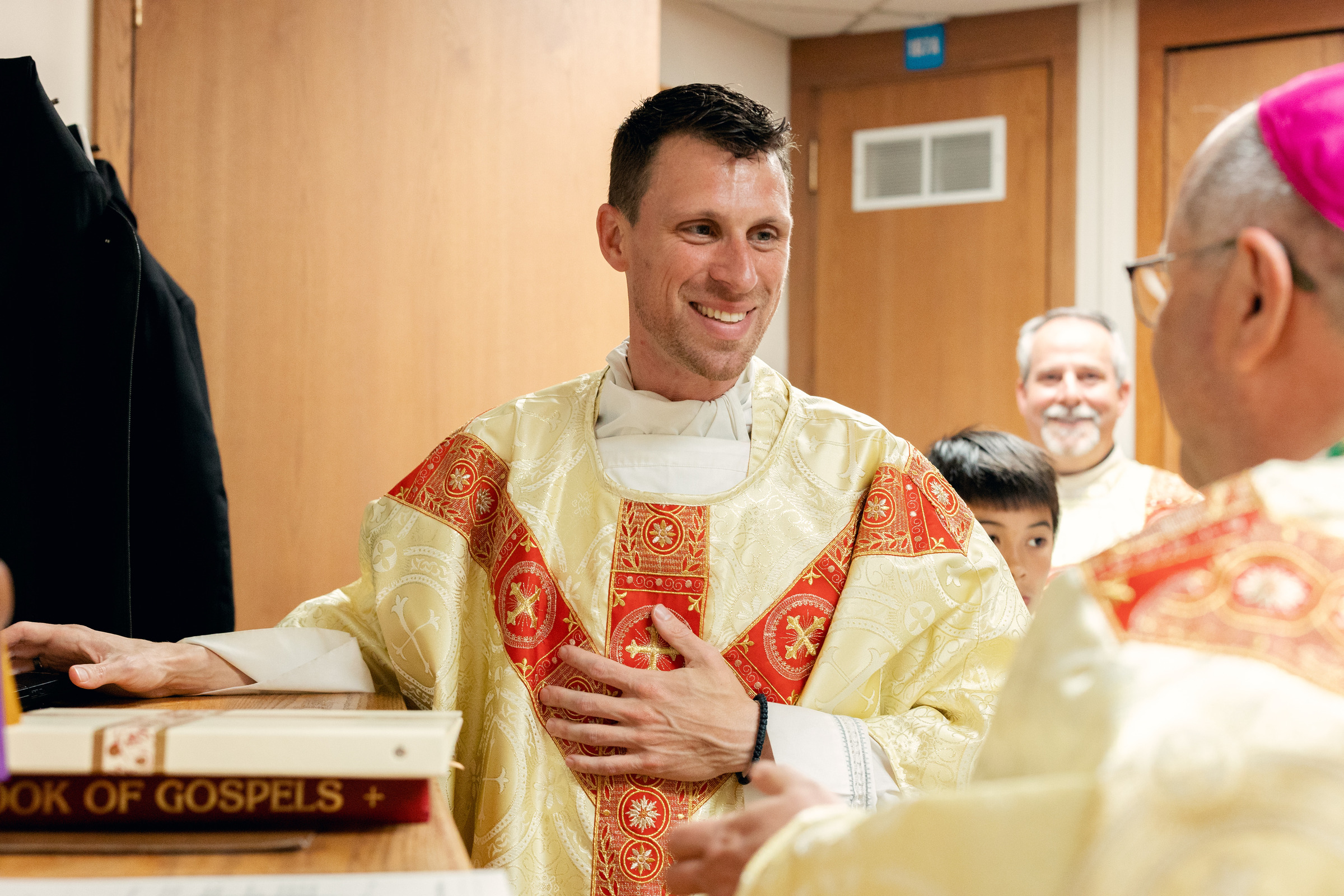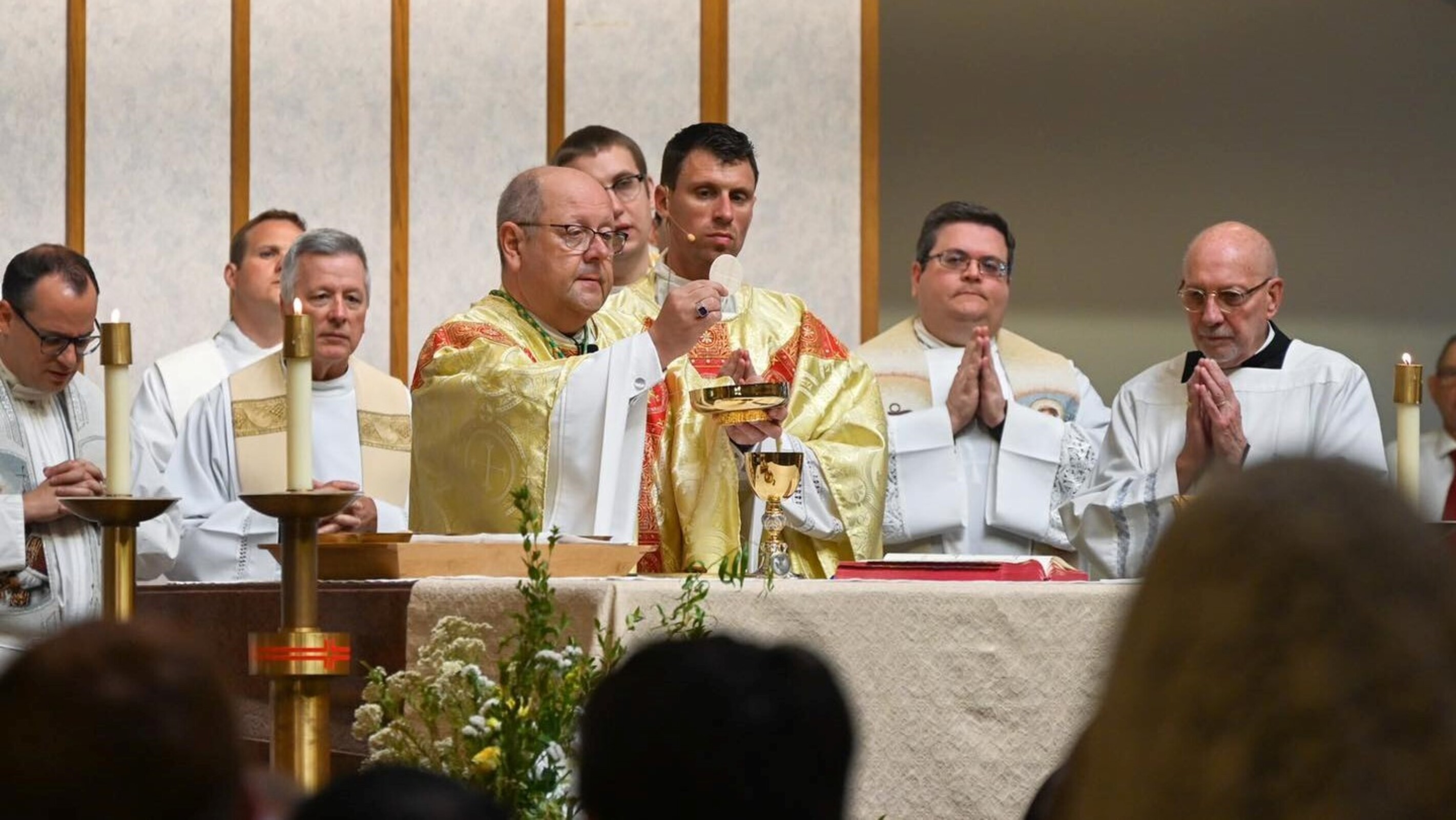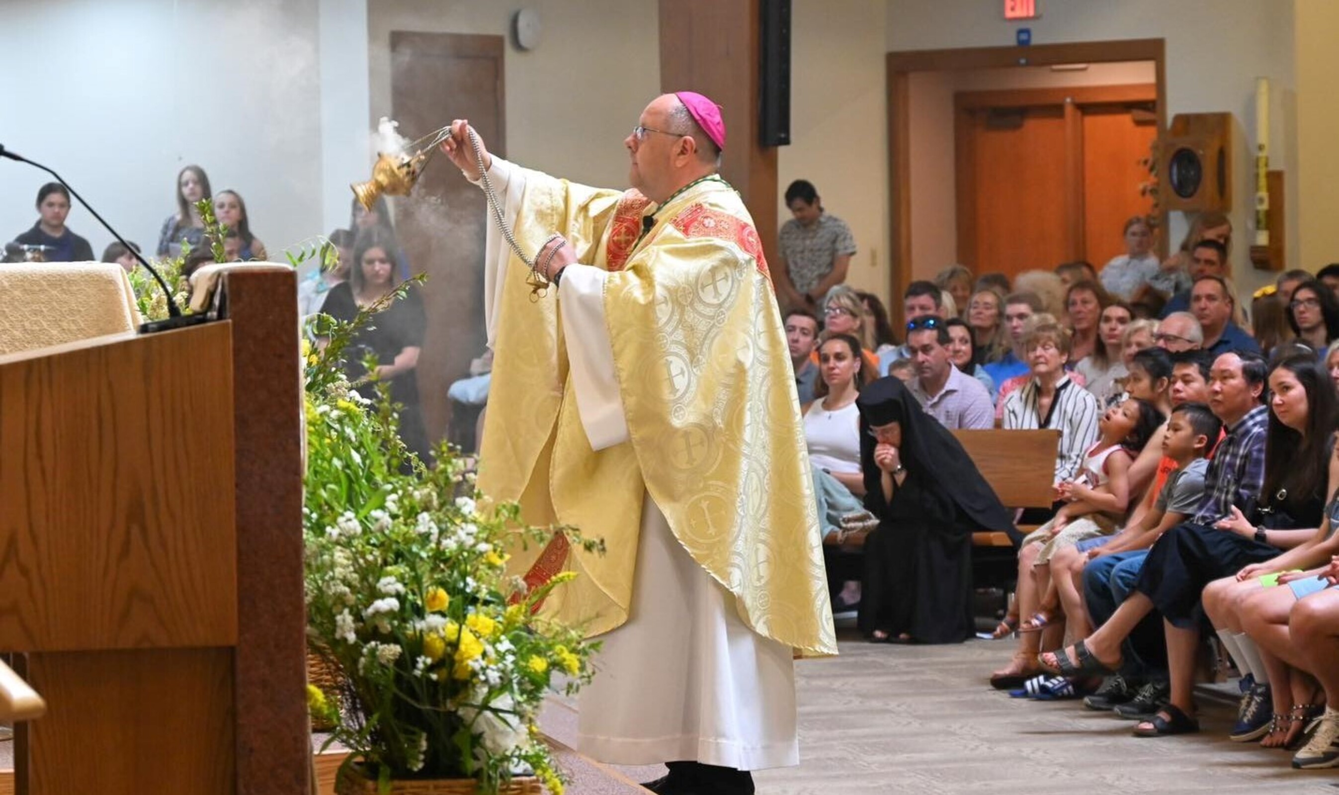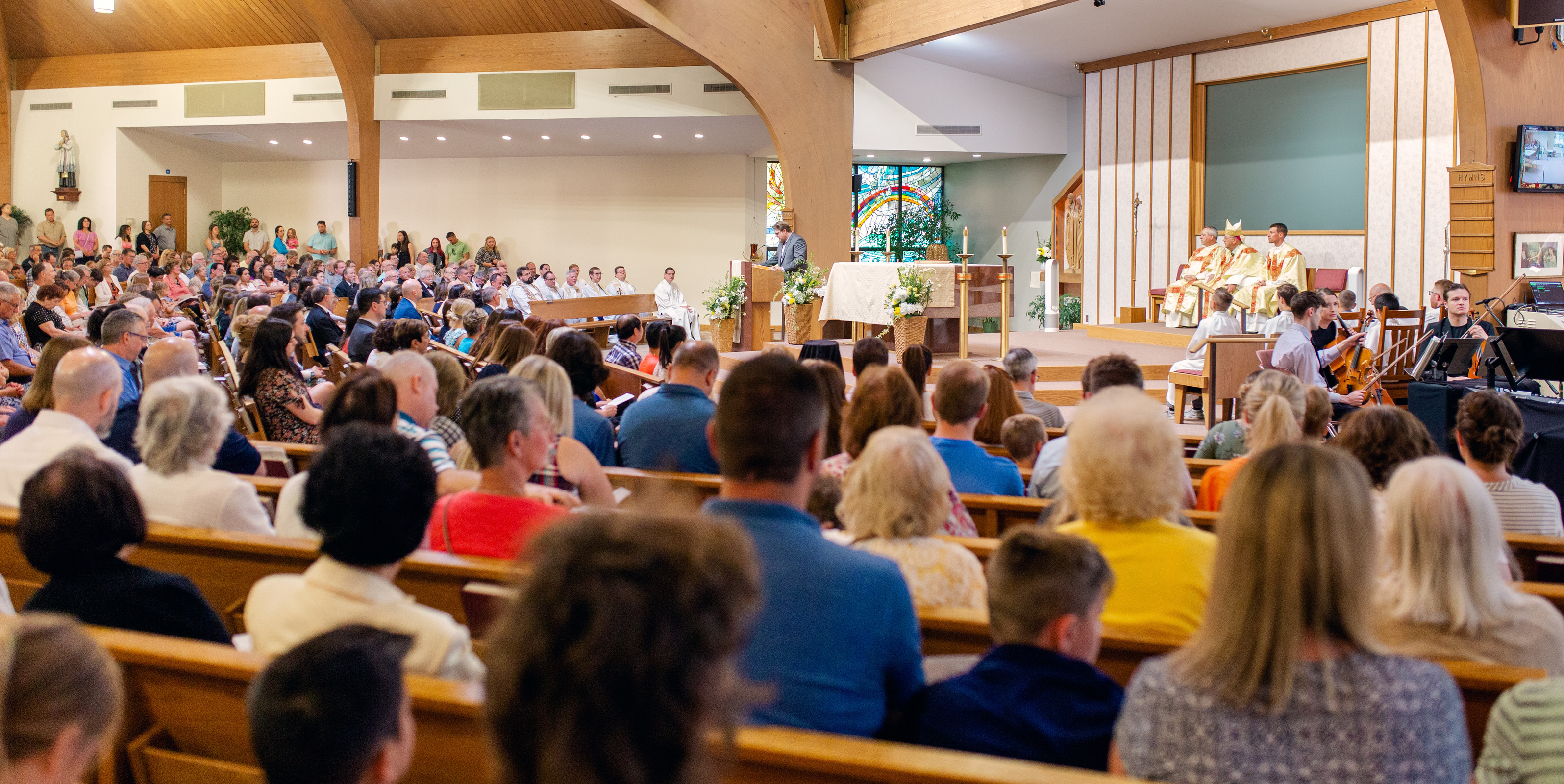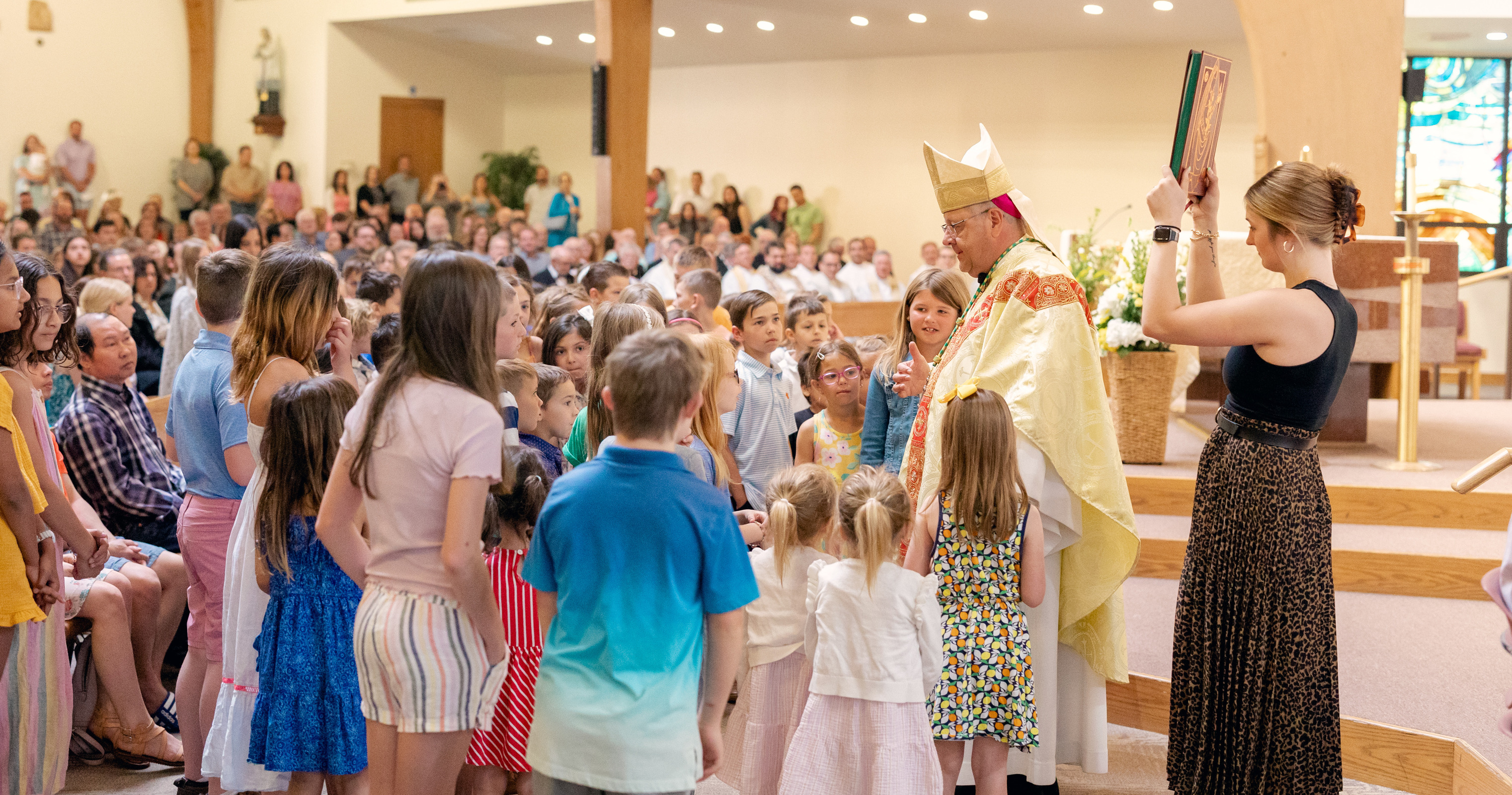 As Mass began, the bishop introduced him as the new pastor and asked the congregation if they accepted him. They responded with applause. The bishop encouraged him to seek the support and counsel of parish leaders, including the parish council, finance council, Deacon Michael Constatini, Erin Faetanini, St. Barnabas School principal, Michael Arko, business manager, and others. Matt Kerns chairs the parish council and Matt Griswold is finance council chair.