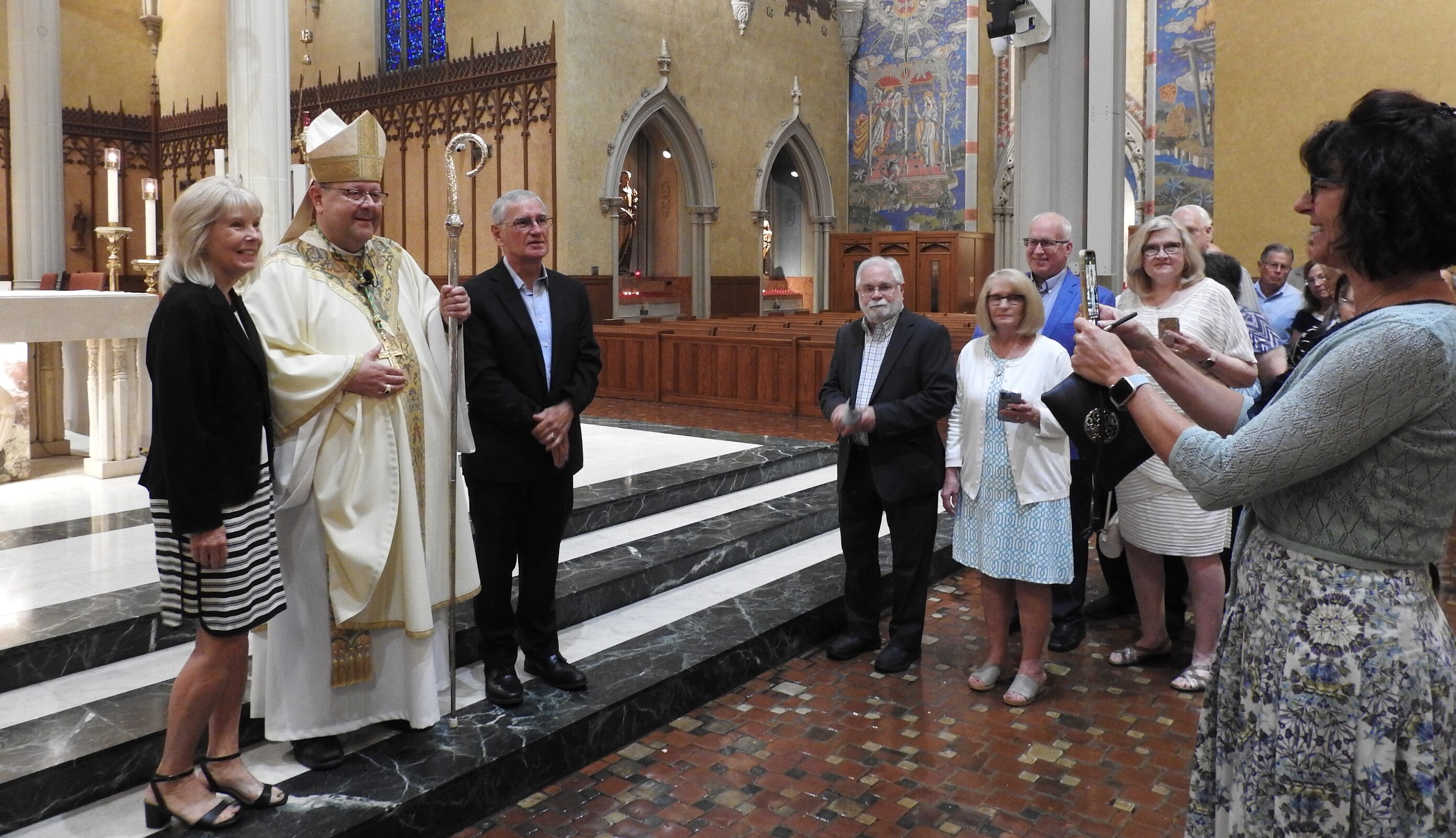 After Mass, the bishop spent time chatting with the couples and posing for photos.