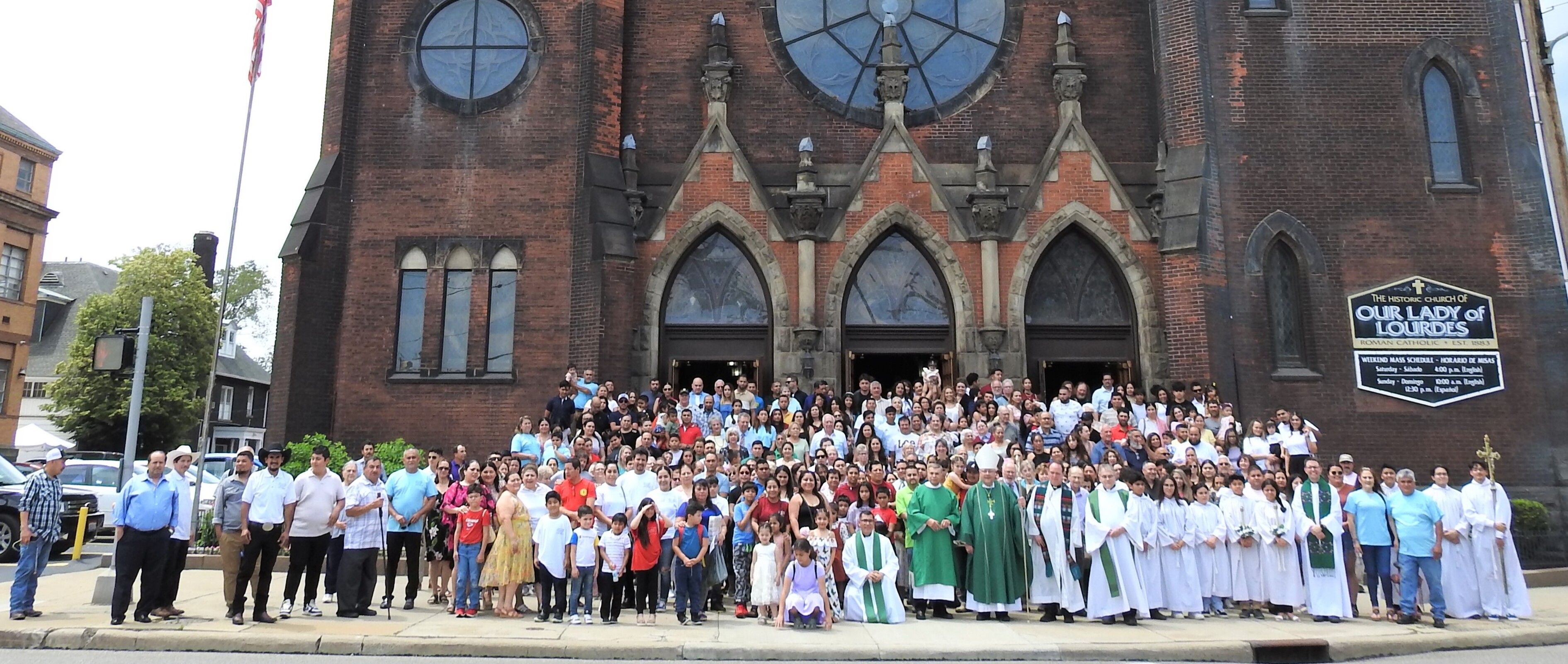 The bishop noted that Our Lady of Lourdes was founded as a Bohemian parish in 1883 primarily to serve the growing Czech and Slovak population in the area. Over the years, demographics changed and a number of Hispanics from places like Venezuela, El Salvador, Puerto Rico and Mexico began settling in the area. Today, the parish has a robust Hispanic congregation and celebrates Mass in Spanish at 12:30 p.m. every Sunday in addition to the regular Masses in English. Father Callahan is fluent in Spanish.