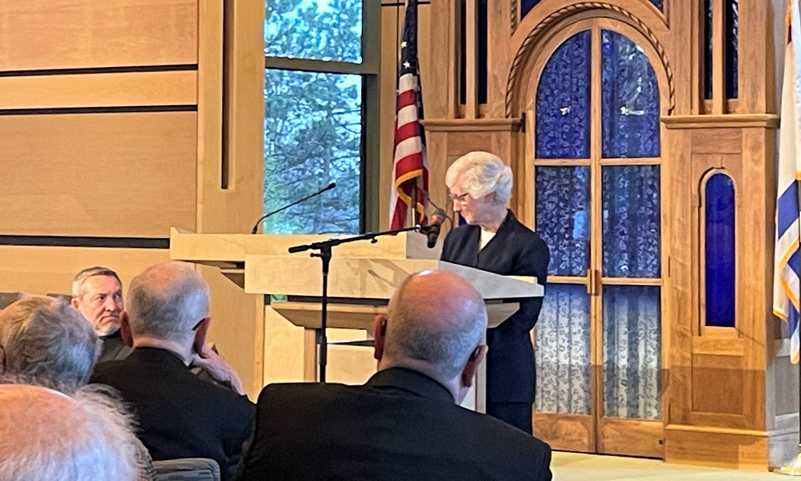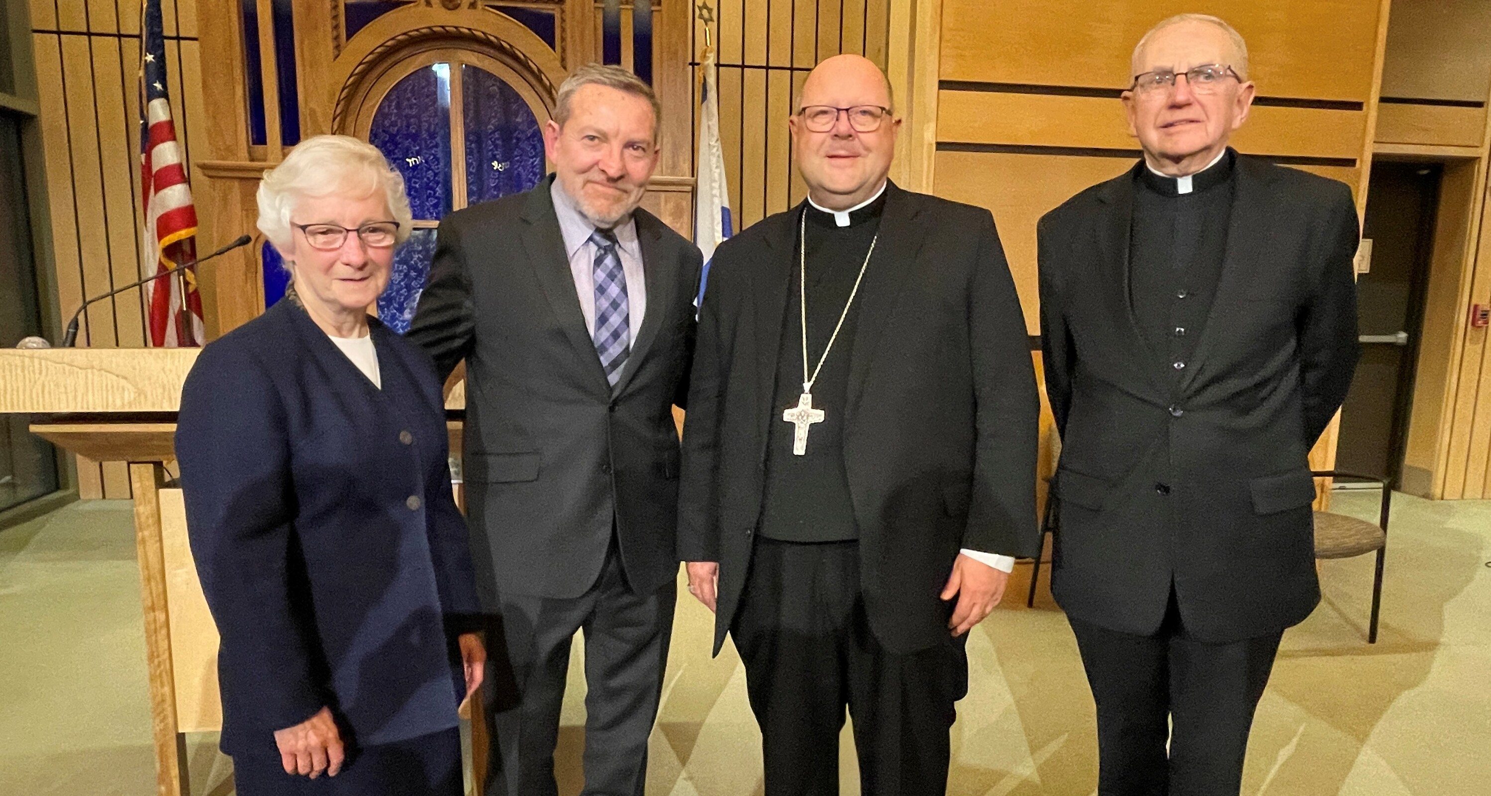 Rabbi Victor Uricki, president of the West Virginia Interfaith Group, was this year’s presenter. He represented the Anti-Defamation League. Responding was Sister Rita Mary Harwood, SND, who retired recently as head of the diocesan Parish Life Office. The Temple-Tifereth Israel hosted the program, and the topic this year focused on immigrants and refugees.