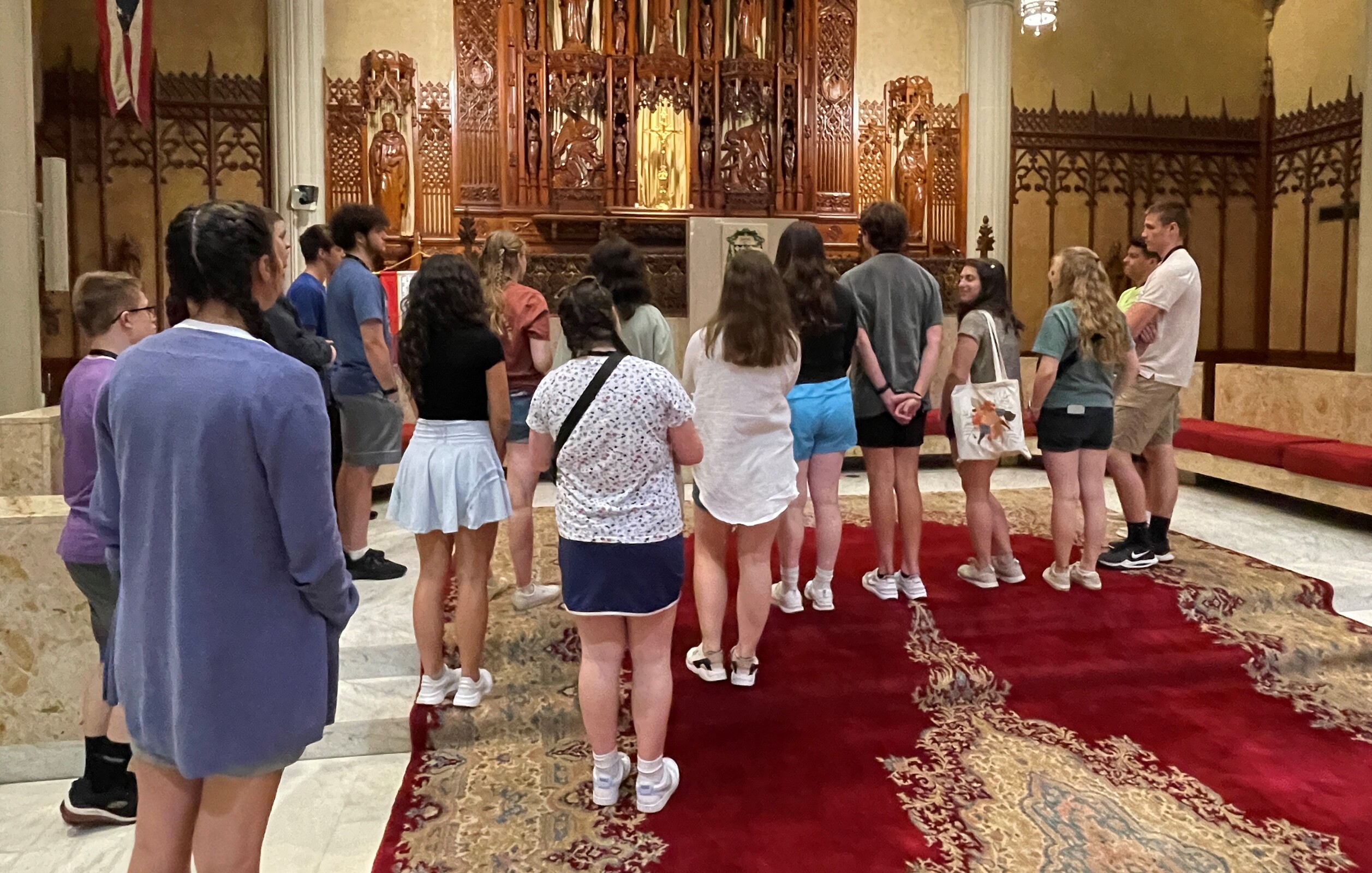 Participants in the first session spent some time one recent afternoon with the bishop in the Cathedral of St. John the Evangelist. Bishop Malesic spent nearly an hour chatting with the students, answering their questions, praying with them and offering a blessing.