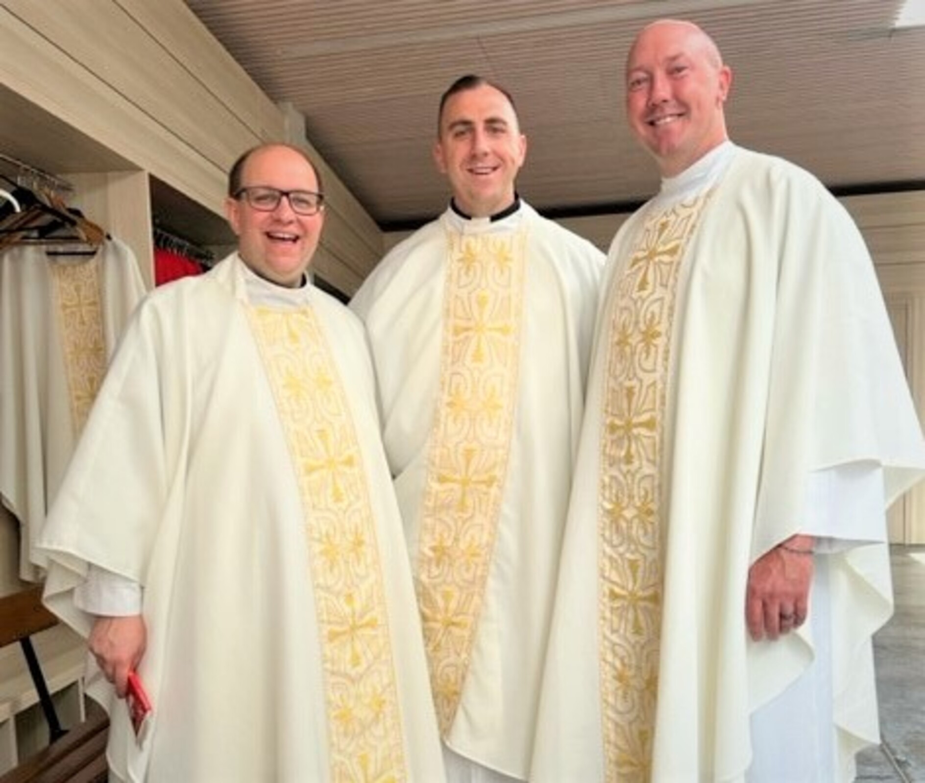Father Josh Cochrac, parochial vicar at St. Charles Borromeo, Father Steve Flynn, St. Francis of Assisi pastor, and Father Eric Garris, diocesan vocation director, are among the priests accompanying the local pilgrims.