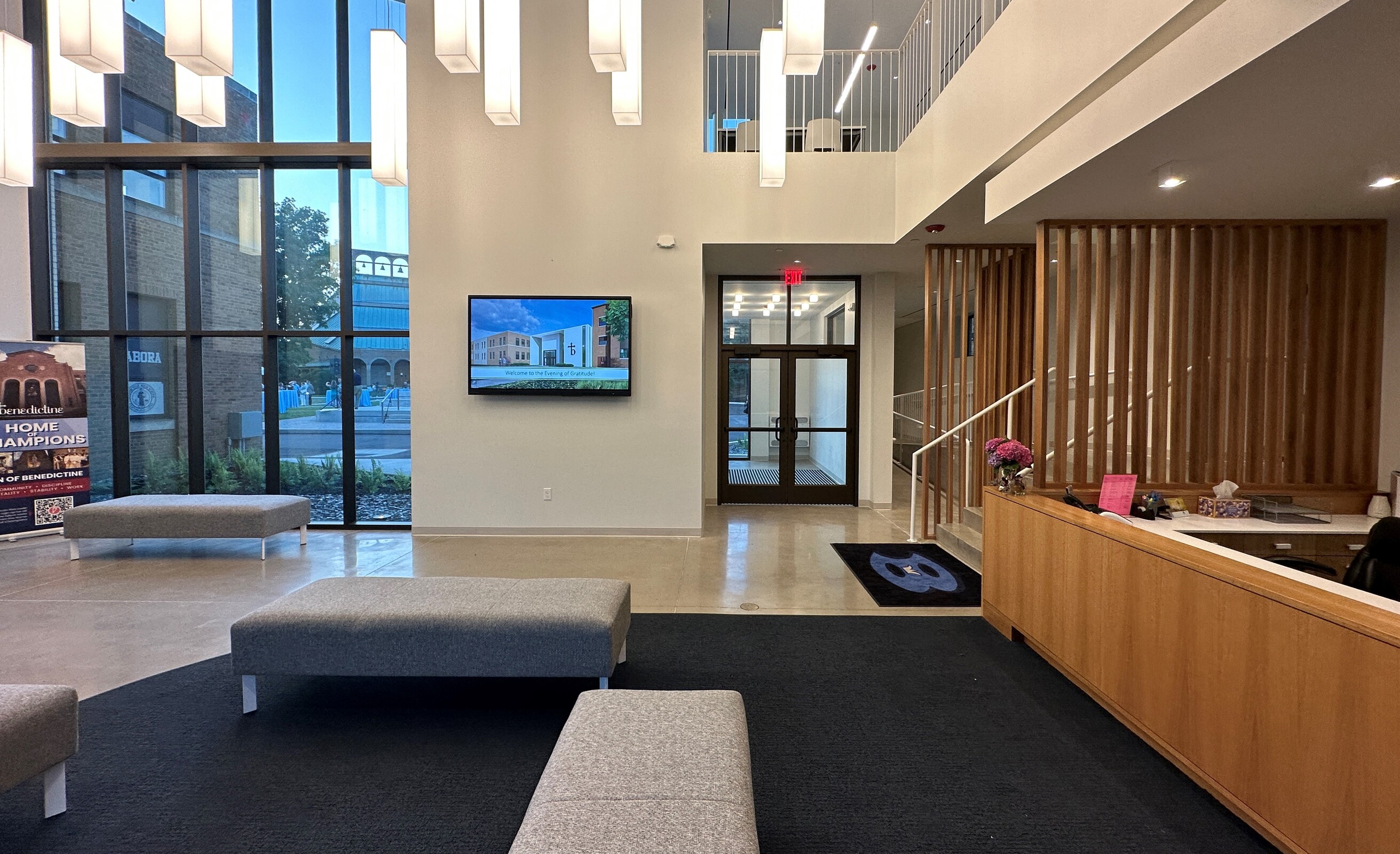 The courtyard and new main entrance to the school are part of Benedictine’s Centennial Campaign. The bishop and abbot expressed gratitude to the donors and benefactors who helped make the campus improvements possible. Among those credited were members of the steering committee, including Andy Smith, Jamie Georgeson, Greg Rufus, Frank Bossu and several monks – Father Timothy, Abbot Gary, Bishop Gries, Father Gerard and Father Michael.