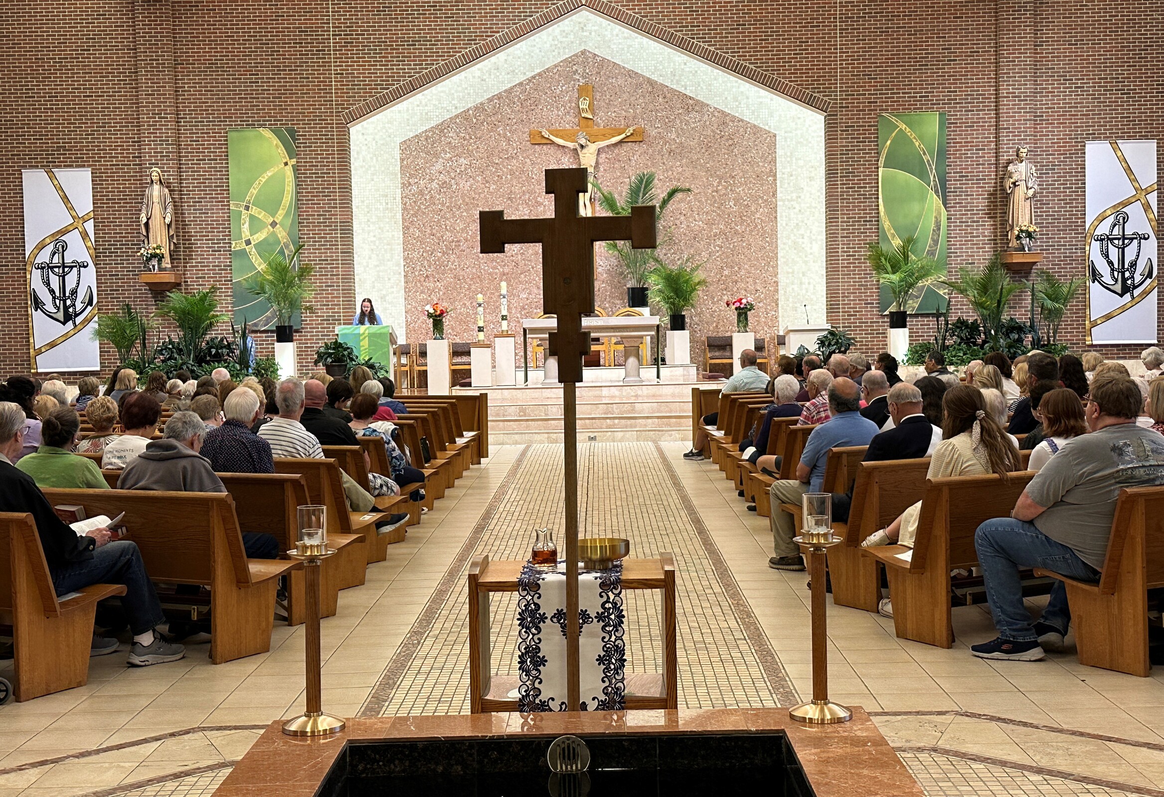 The third Mass was to be at Mercy Health Stadium, home of the Crushers baseball team, in Avon. But once again, it rained so St. Joseph Church in Avon Lake welcomed about 800 people to its worship space on Aug. 14. Father Ference said the rain didn’t dampen the enthusiasm of the faithful, who turned out in force despite the short notice about the change in plans.