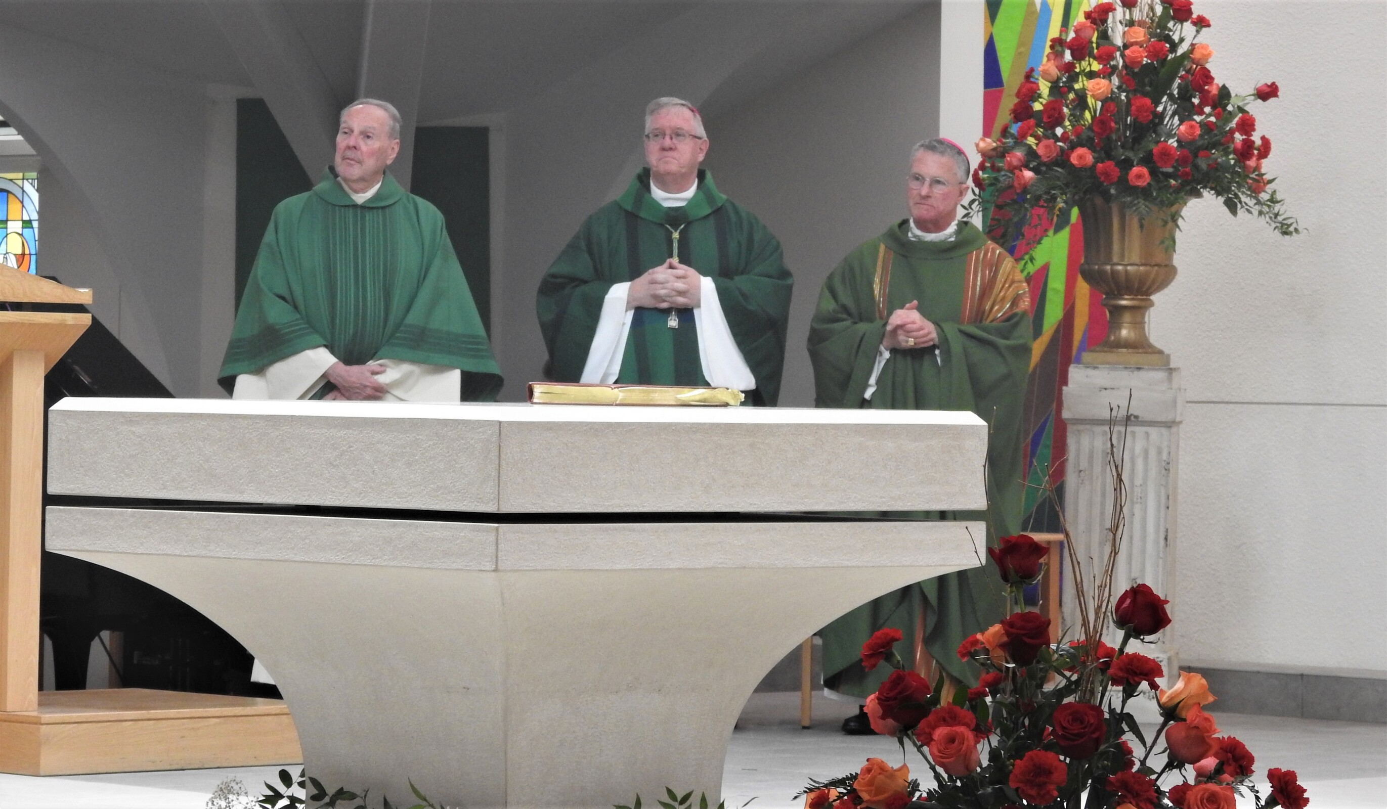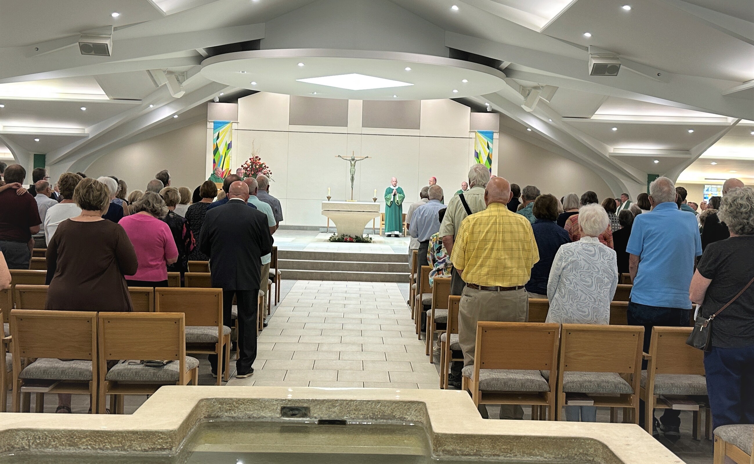 “Pastors of the nearby churches – St. Bernadette (Westlake), St. Raphael (Bay Village), Holy Trinity (Avon) and St. Richard (North Olmsted) had a meeting to get the baby born,” Father Latcovich said. He thanked priests from many of those churches who were concelebrants for their support. He also asked any original parishioners to stand and be recognized and he thanked Father Snyder for years of dedication to the parish.
