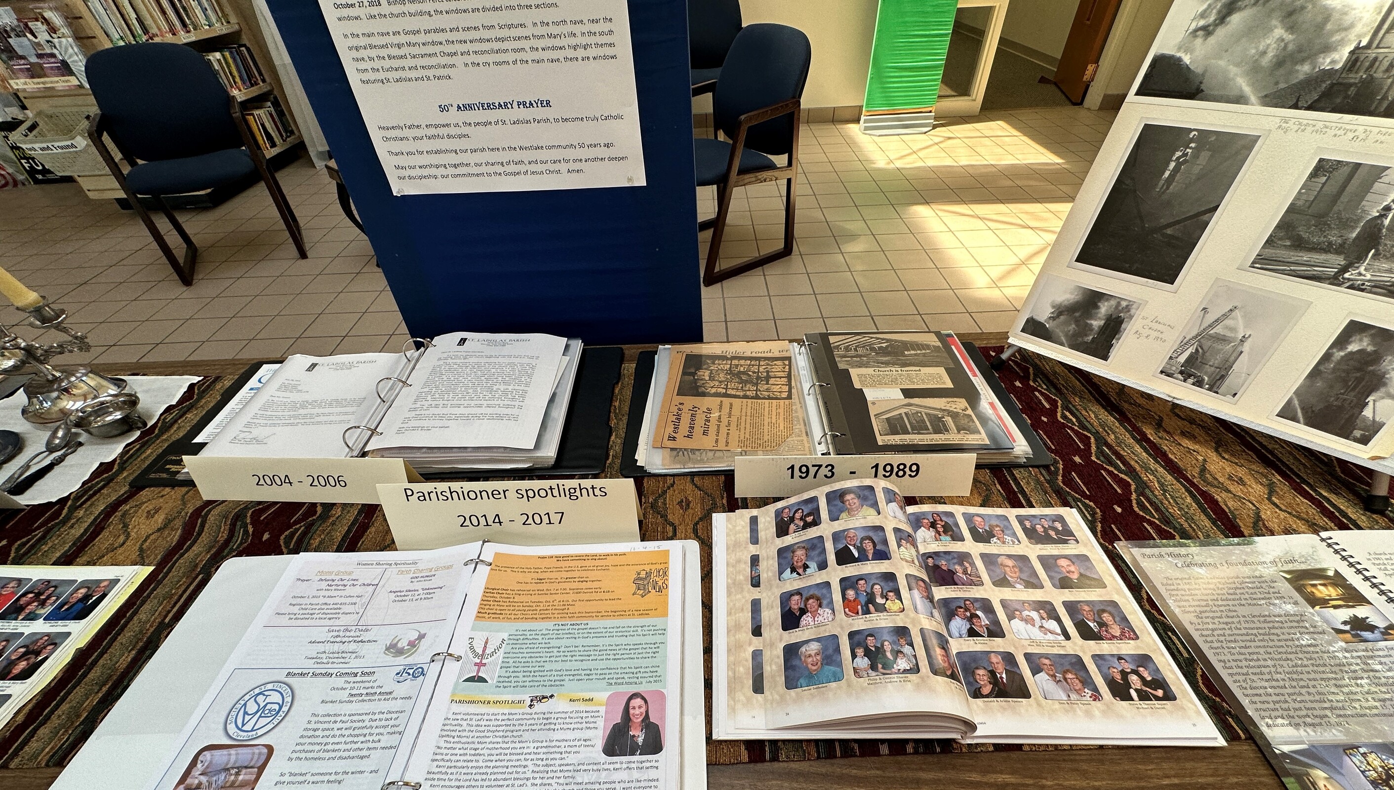 The church was destroyed by fire in the early morning of Aug. 8, 1970. Three years later, the decision was made to relocate St. Ladislas to Westlake. Land was purchased on Bassett Road and in order to secure insurance money from the fire, construction had to be underway by Sept. 1, 1973. The relocated, territorial parish initially consisted of about 500 families from the following existing parishes in adjacent communities: Holy Trinity, Avon; St. Bernadette, Westlake; St. Richard, North Olmsted; and St. Raphael, Bay Village. Priests from several of those parishes were among the concelebrants for the Aug. 13 Mass.
