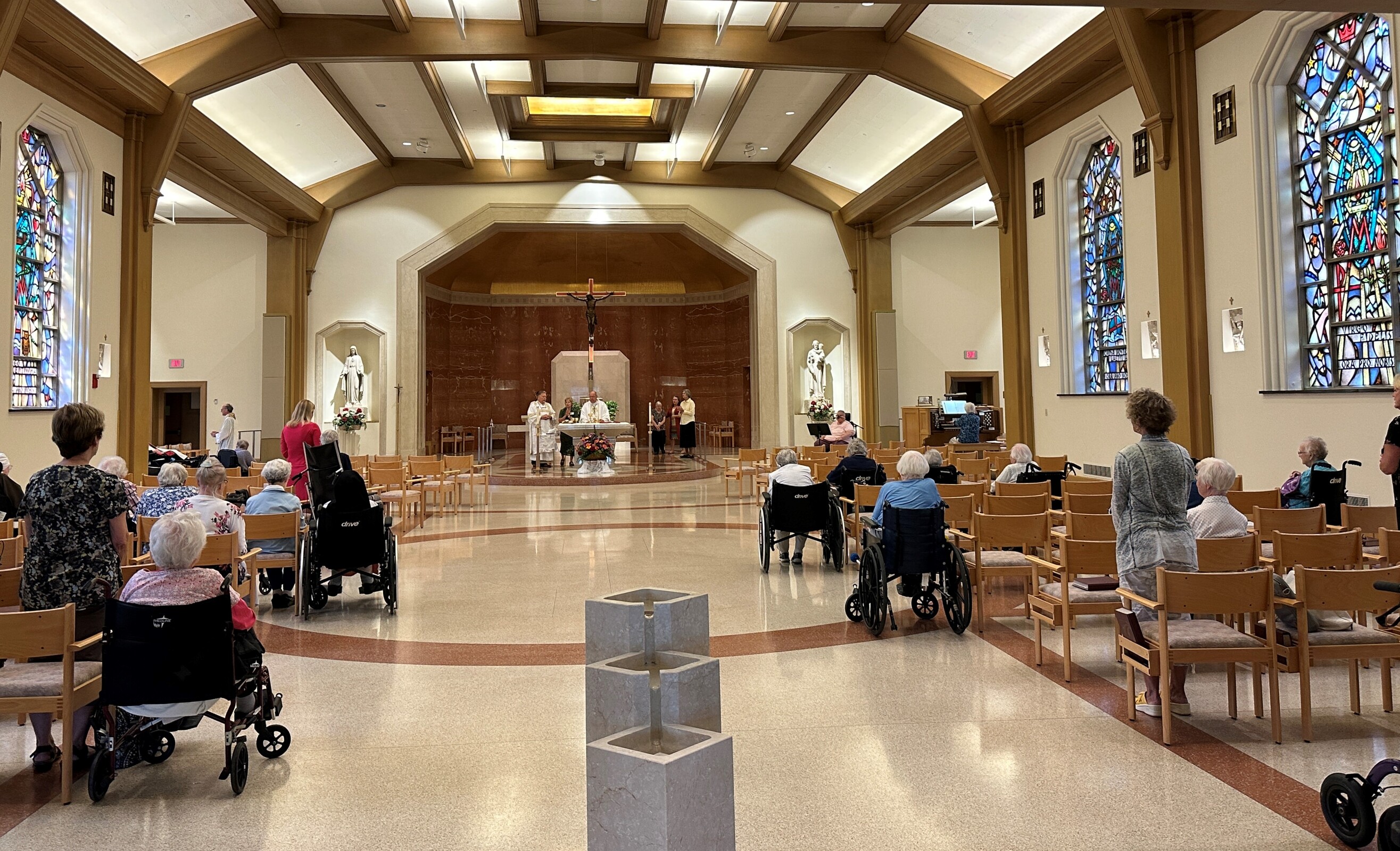 “There are so many powerhouses of the diocese here,” the bishop said referring to the many people who helped launch the innovative facility and those who have called it home over the years. Some residents who were able to attended the Mass while others watched a live broadcast in their rooms.