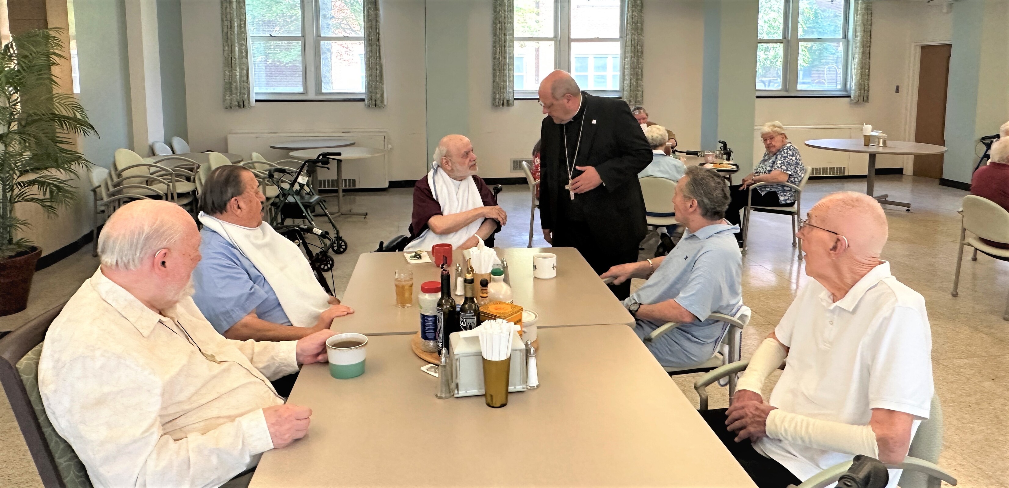 After Mass, the bishop joined some Regina residents in the dining room for lunch and conversation.