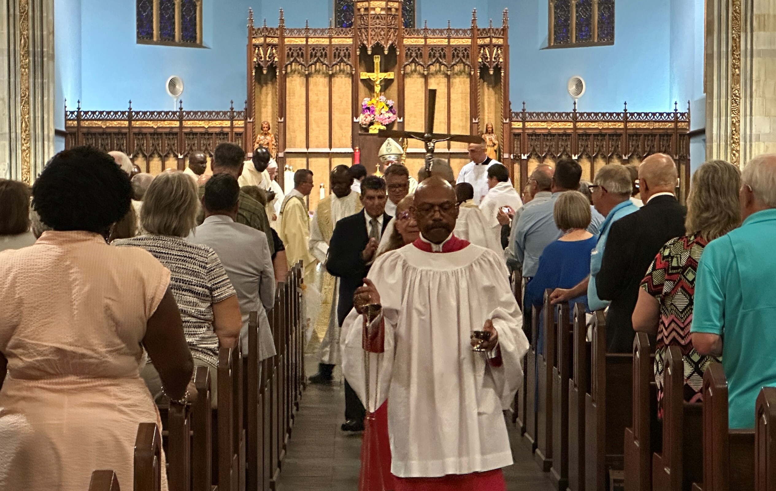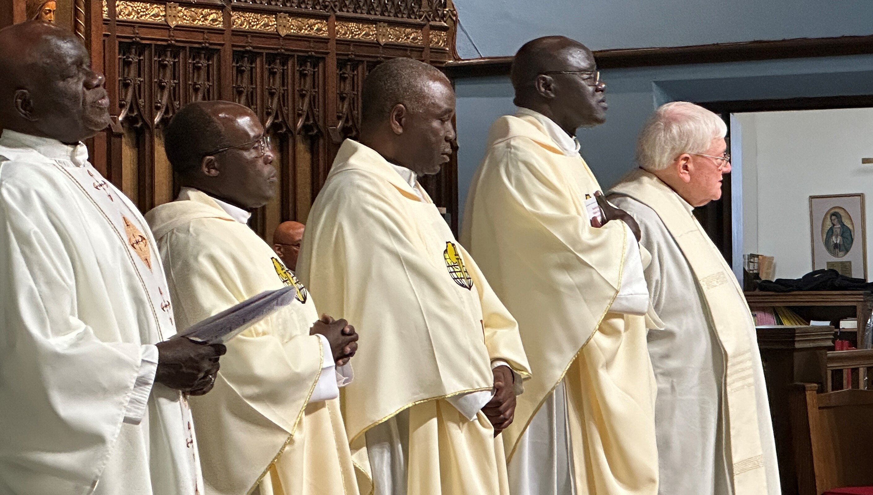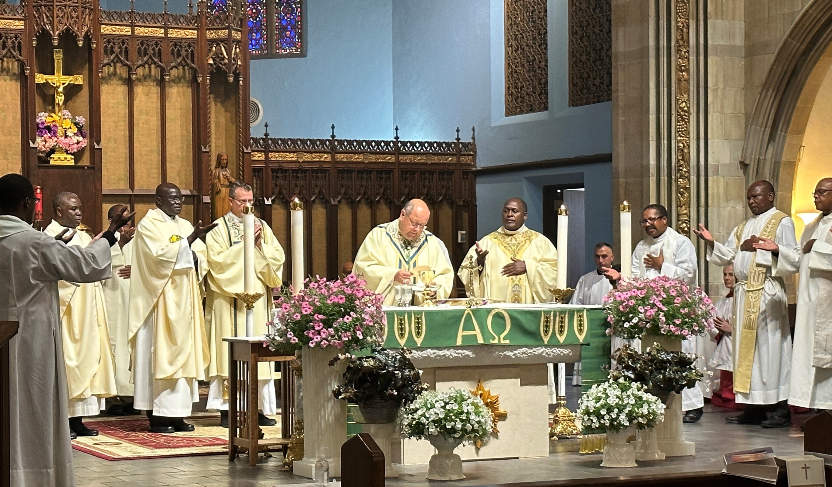 Between downpours on Aug. 23, a joyful liturgy was celebrated in Visitation of Mary Church, Akron. Parishioners from that parish and its sister parish, nearby St. John the Baptist, welcomed their new pastor, Father Dismas Byarugaba, AJ. He had been serving as the parishes’ administrator for nearly two years prior to his formal installation as pastor.