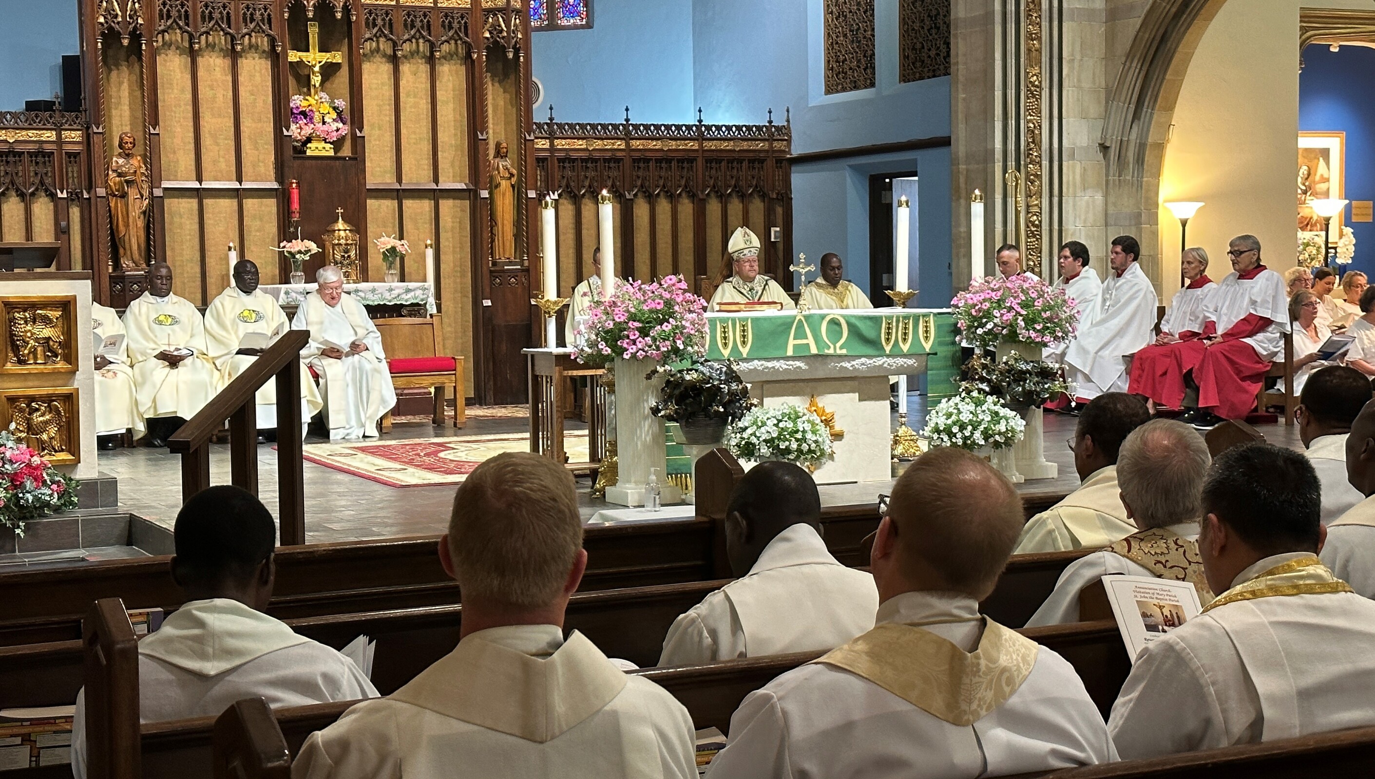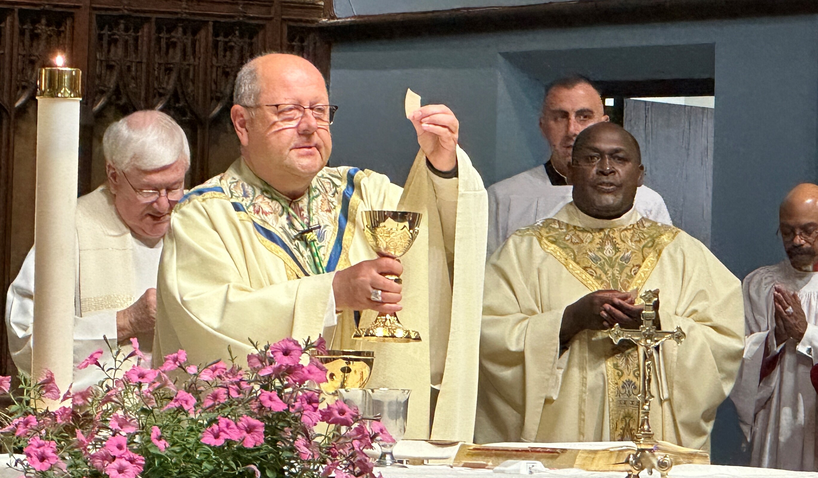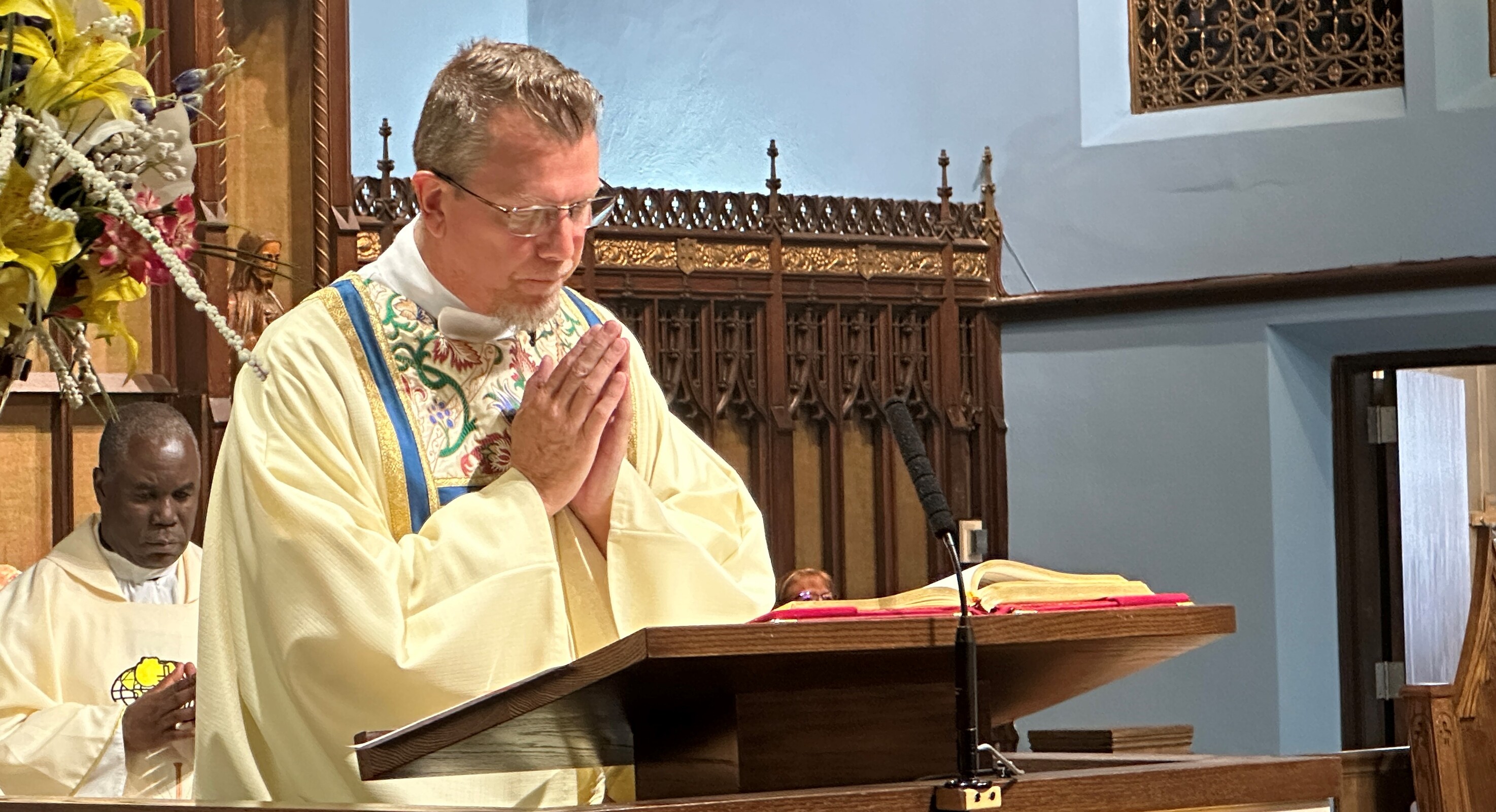 Between downpours on Aug. 23, a joyful liturgy was celebrated in Visitation of Mary Church, Akron. Parishioners from that parish and its sister parish, nearby St. John the Baptist, welcomed their new pastor, Father Dismas Byarugaba, AJ. He had been serving as the parishes’ administrator for nearly two years prior to his formal installation as pastor.