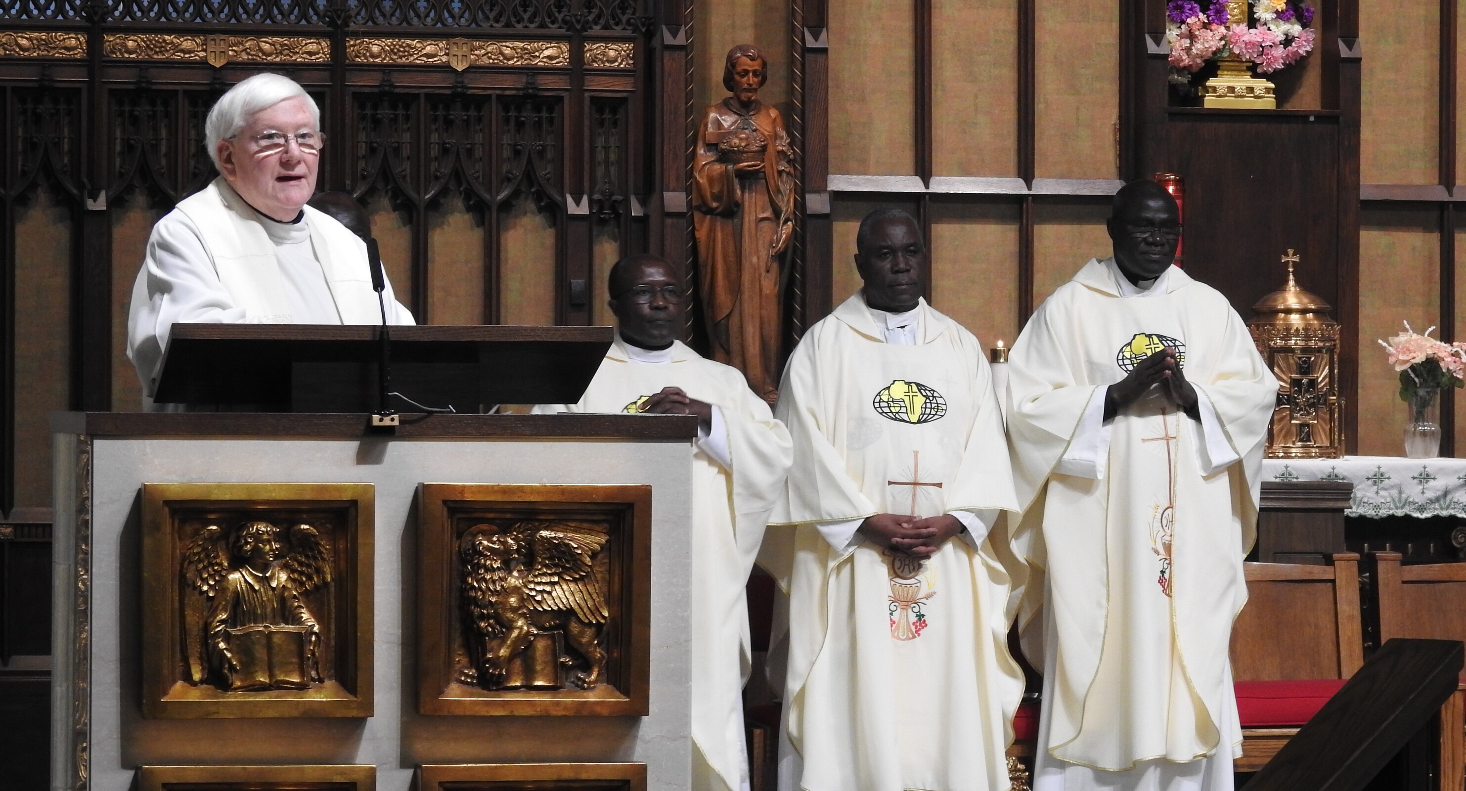 Concelebrating the installation Mass were many members of the Apostles of Jesus who are serving in the Cleveland Diocese and some congregational leadership including Father Augustine Idra, AJ, regional superior; Father Januarius Lyimo, AJ, zonal superior; Father Richard O’Nyamwaro, AJ, mission director; Father Speratus Kamanzi, AJ, councilor and former superior general; Father Paul Rosing, who served as Visitation of Mary pastor 39 years ago; and several other diocesan priests, including pastors of Akron area parishes.