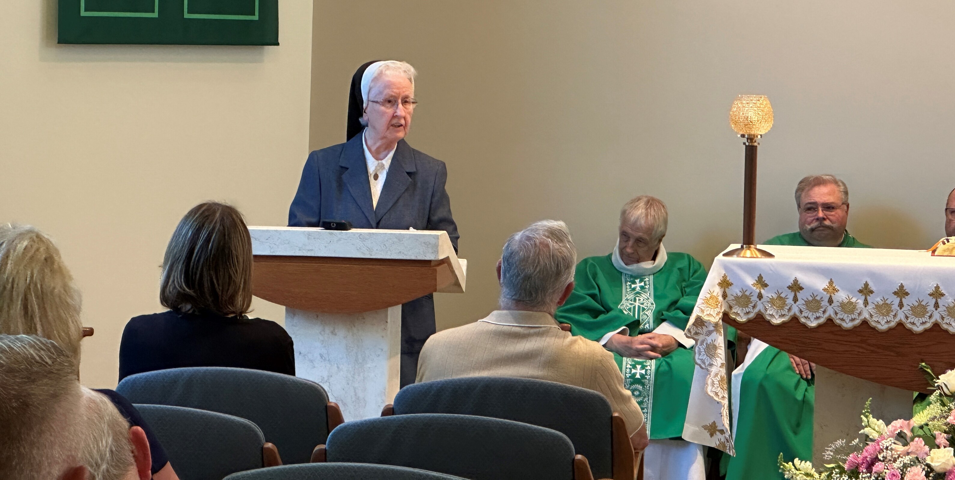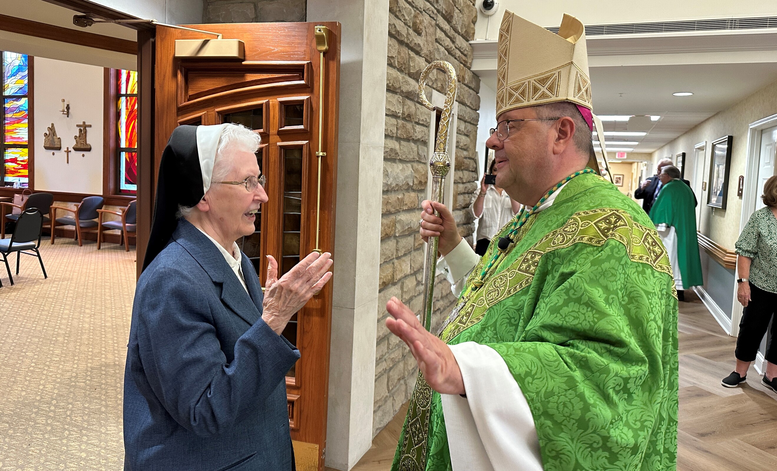 Bishop Malesic said as the 70th anniversary of Mount Alverna Village is celebrated, “We remember those who have passed through the doors and the current residents and their families. Jesus walks with you and all of us. Let us also pray for the care team members who dedicate their lives to the residents and for the Franciscan Sisters of Chicago. This work is crucial. You don’t often get the affirmation you deserve. This place is important. It’s not just bricks and mortar but what’s inside. Remember the words of Jesus when he said, ‘Whatsoever you do for one of these, you do for me. That’s why we’re here,” the bishop added.