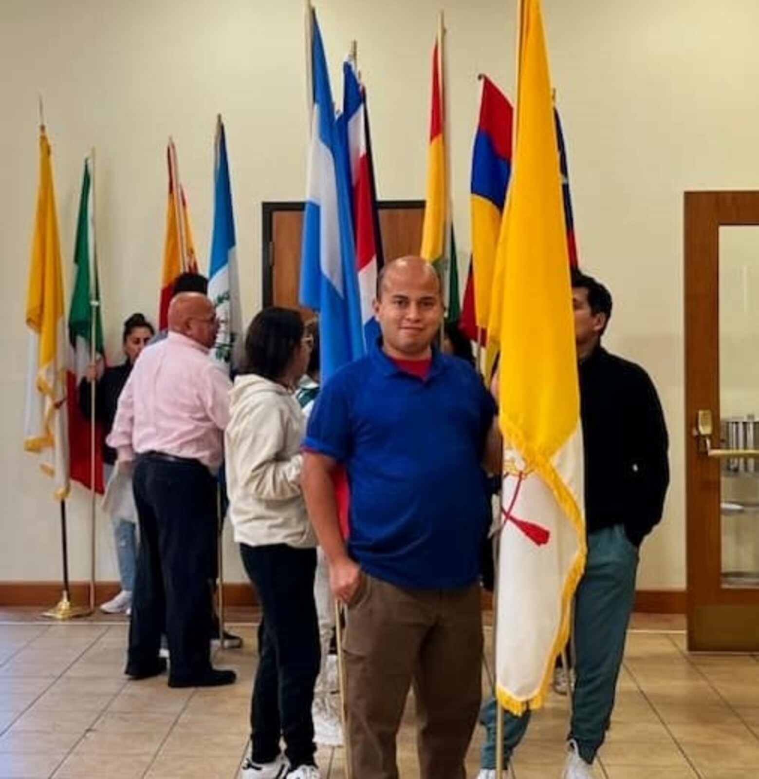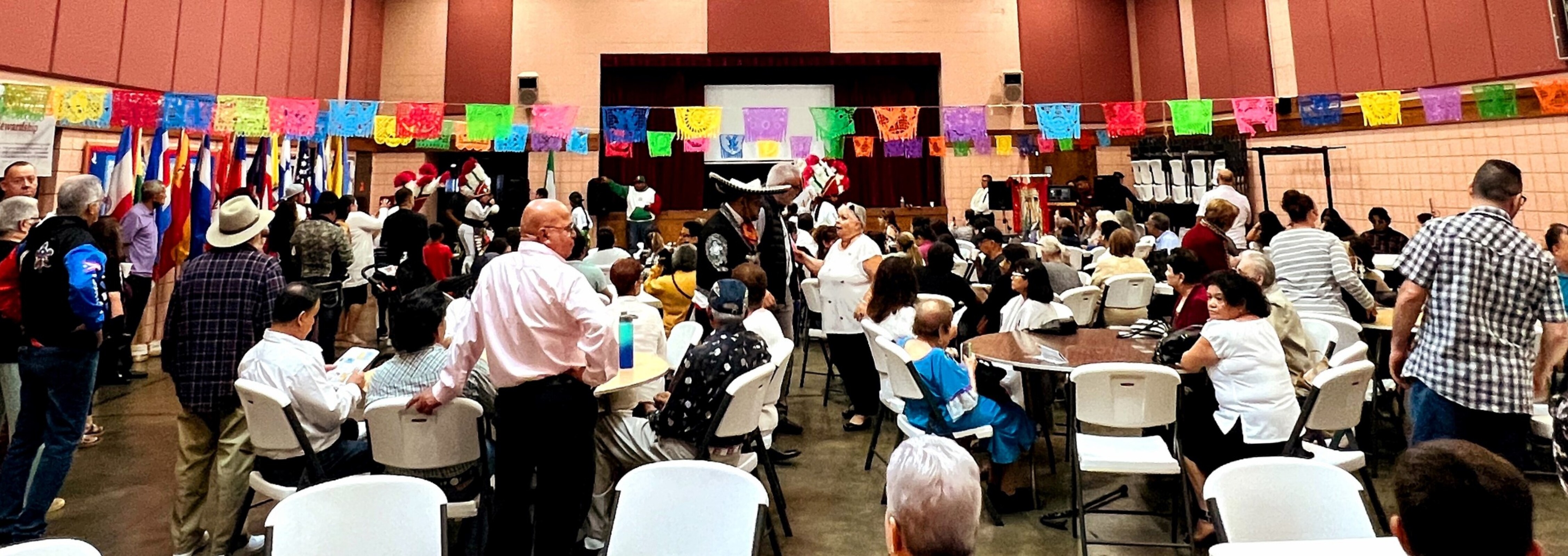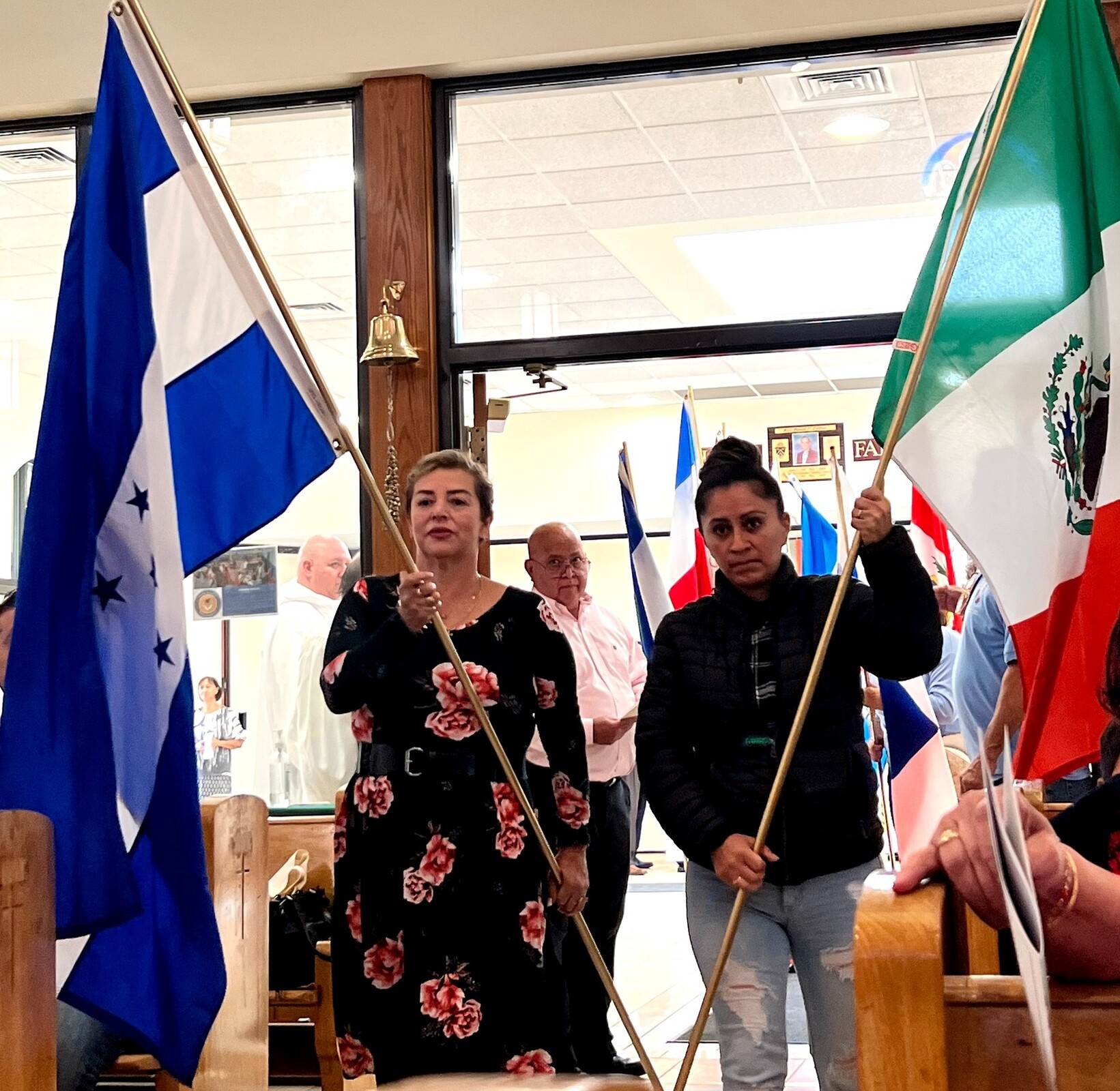 The event began with the traditional procession of flags. Members of the congregation carried about two dozen flags representing nations such as Mexico, Brazil, Nicaragua, Puerto Rico, El Salvador and other Hispanic countries, which were placed into flag holders lining the walls in the church sanctuary.