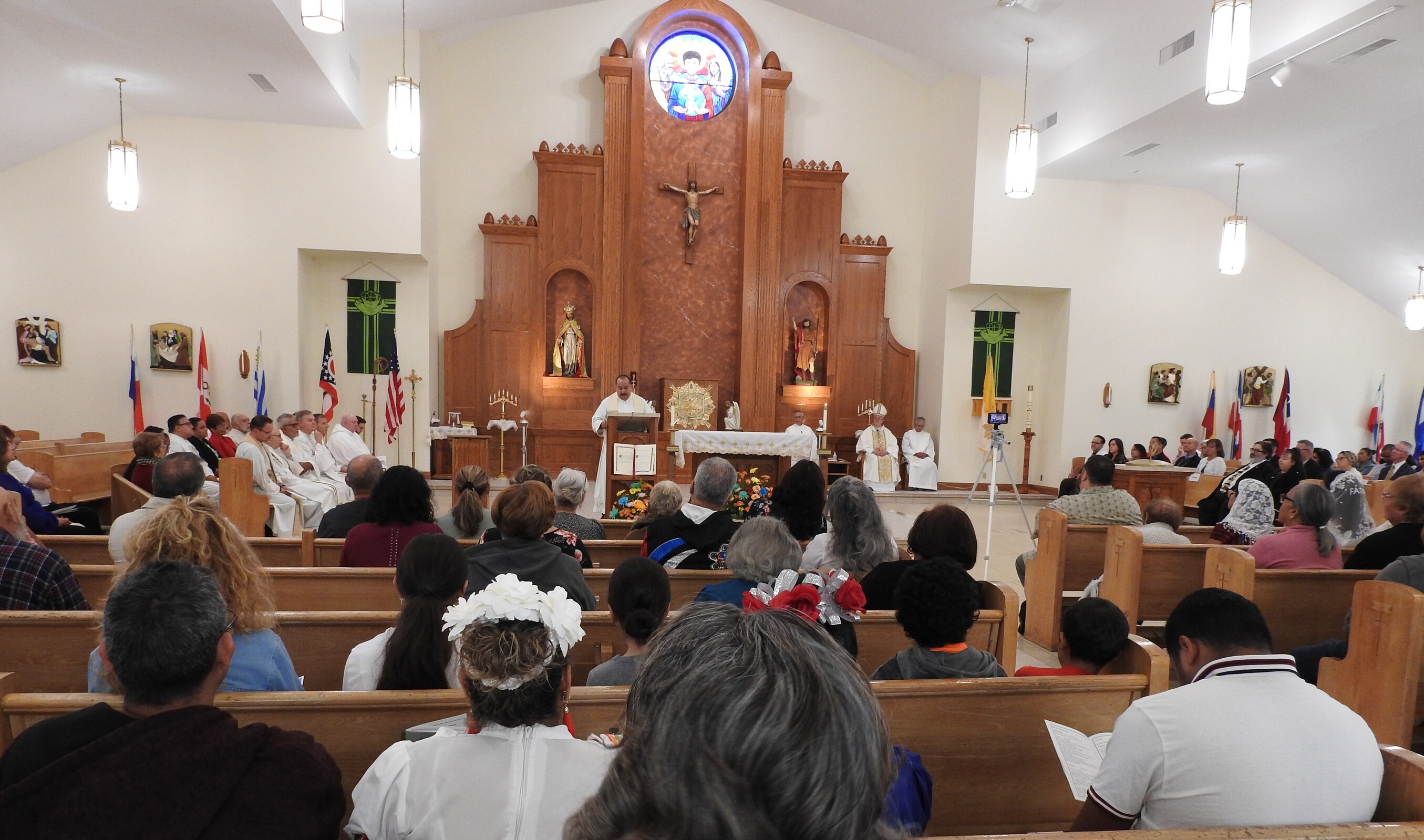 After Mass, costumed dancers performed in the sanctuary before the congregation and clergy moved to the parish hall for a cultural celebration and home-cooked traditional foods.