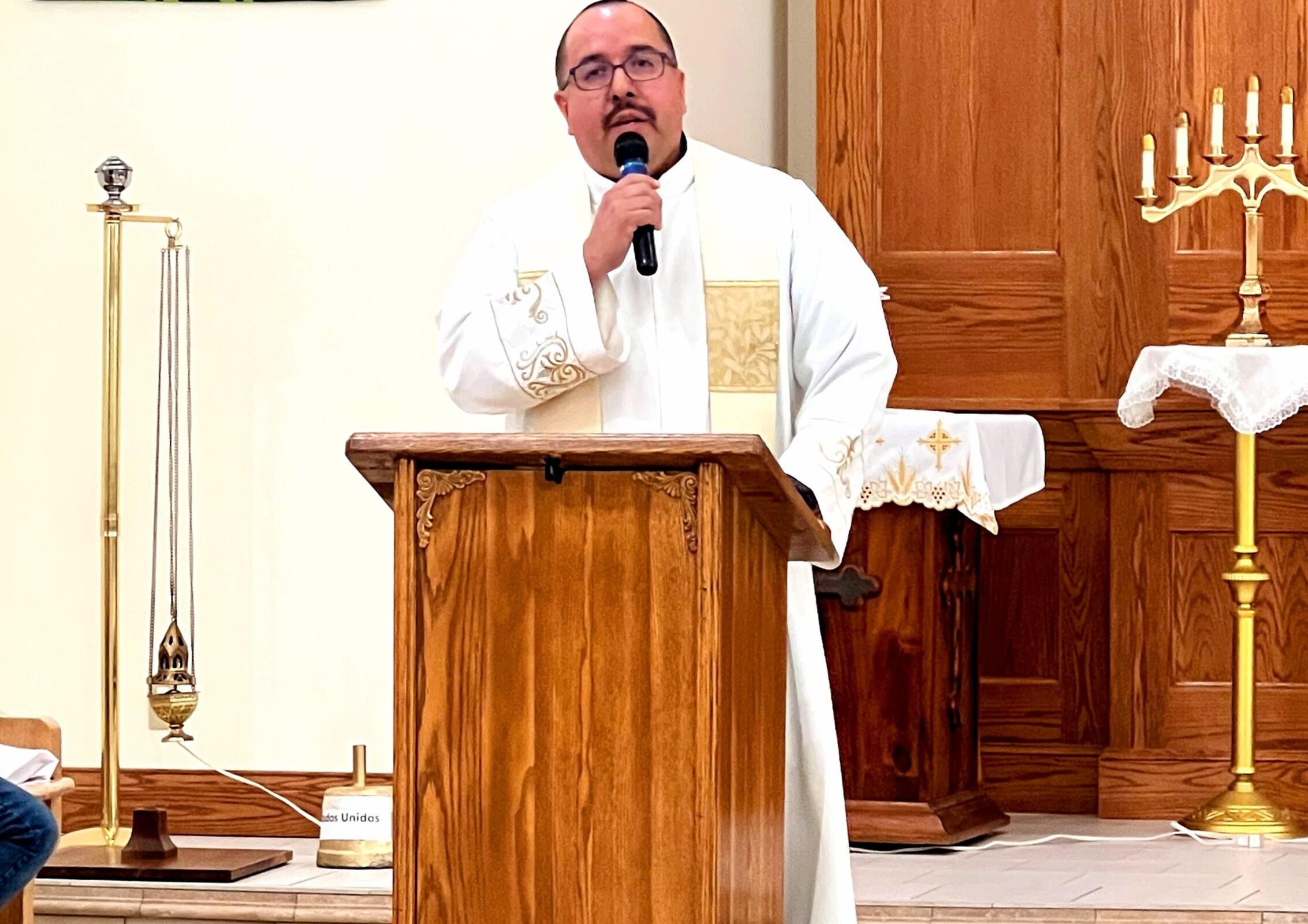 Auxiliary Bishop Michael Woost was the primary celebrant for the Mass, with pastors of some of the seven Hispanic parishes in the diocese concelebrating. They included Father Francisco Garnica, Sagrada Familia pastor; Father Bill Thaden, pastor of Sacred Heart Chapel in Lorain; and Father Steve Vellenga, pastor of St. Mary Parish in Painesville. Father Damian Ference vicar for evangelization and head of the Parish Life Office, and Father Joe Hilinski, pastor of St. Barbara Church in Cleveland and delegate for ecumenical and interfaith affairs, also concelebrated. The liturgy was celebrated in both English and Spanish.
