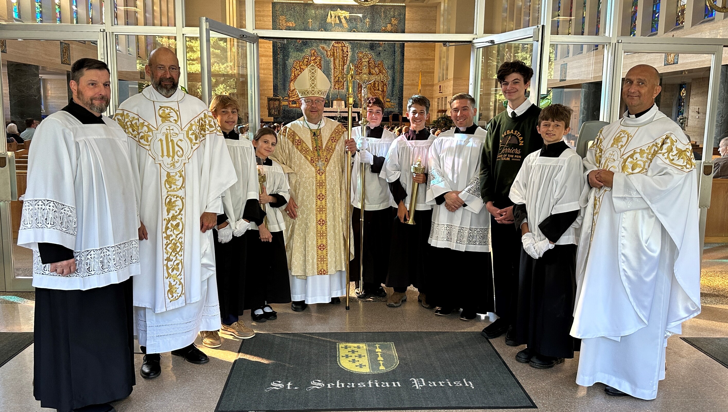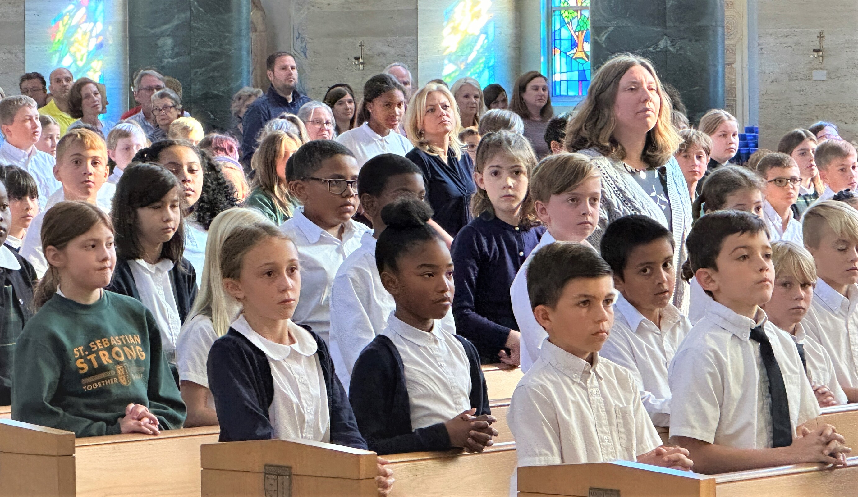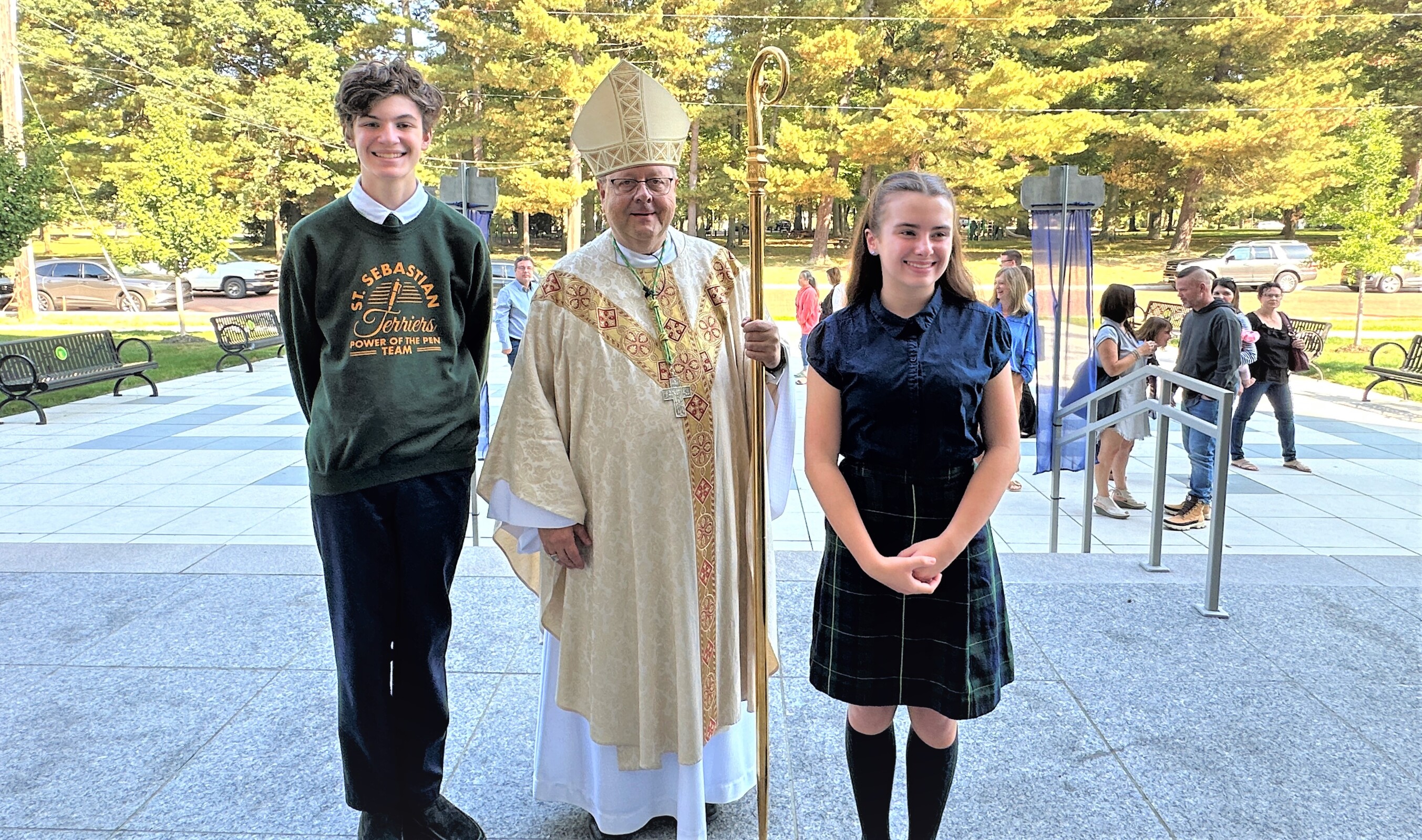 “There is no place I’d rather be today than here celebrating with you,” Bishop Edward Malesic told the St. Sebastian Parish School community.
