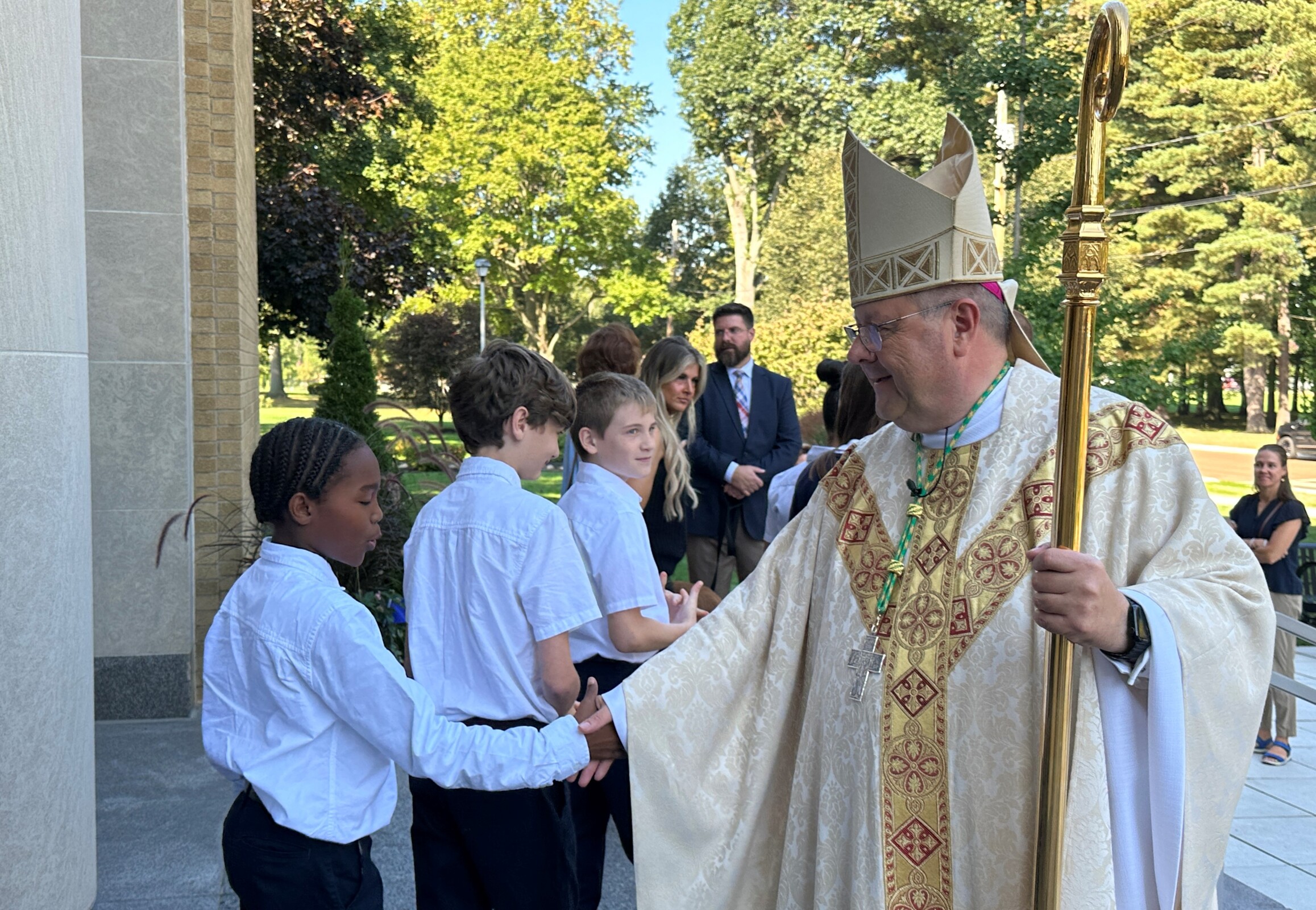 He reminded the students not to act out of hate, but to remember what Jesus taught us, “to love one another. You’re walking together as a family of faith, as brothers and sisters in the Lord. The best anti-bullying program is the Gospel. Share that, walk with Jesus and remember to nourish your spirit and soul. And congratulations on being awarded the National Blue Ribbon School designation,” the bishop added.