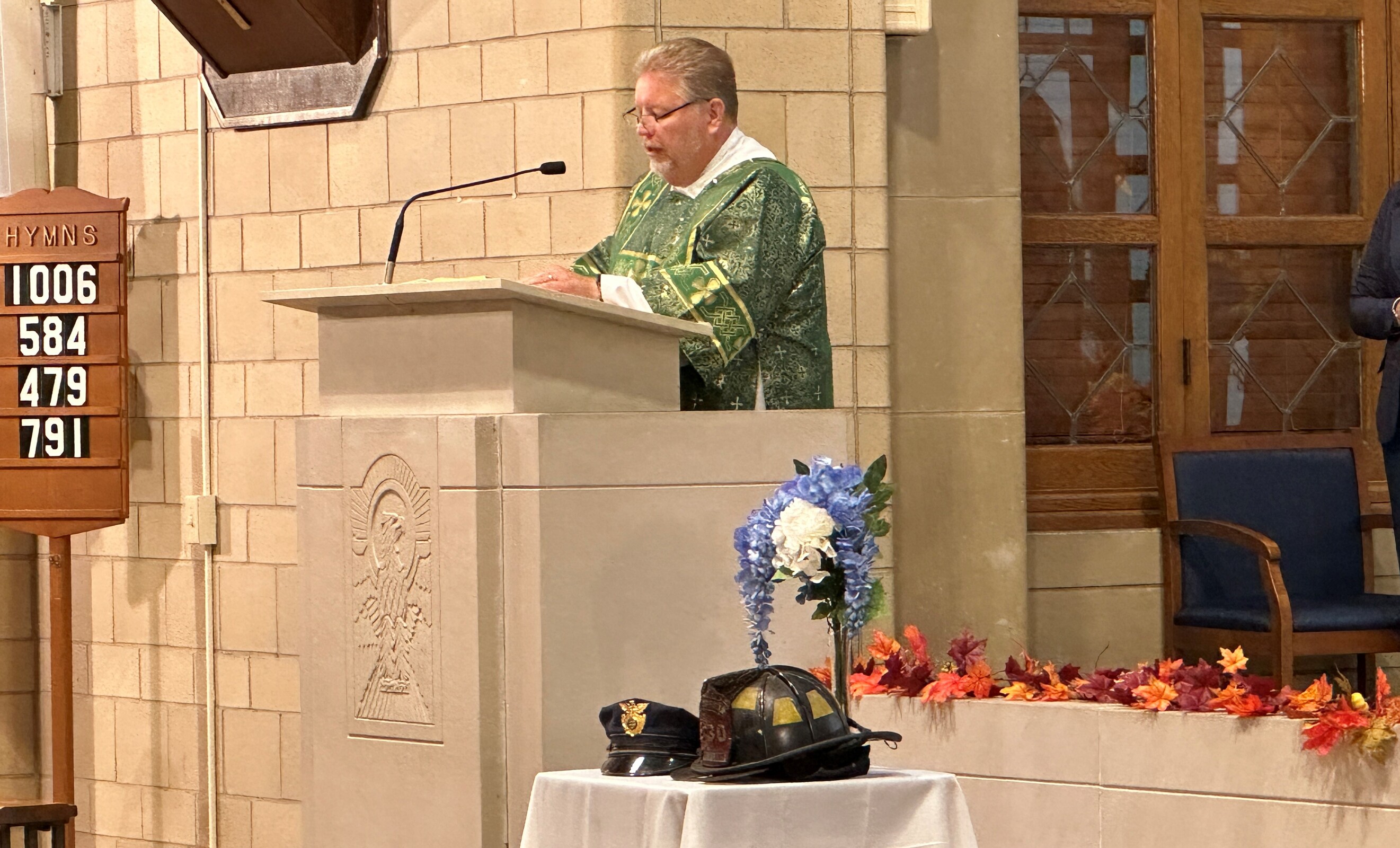 The liturgy included reading the names of all first responders who died since the previous celebration.