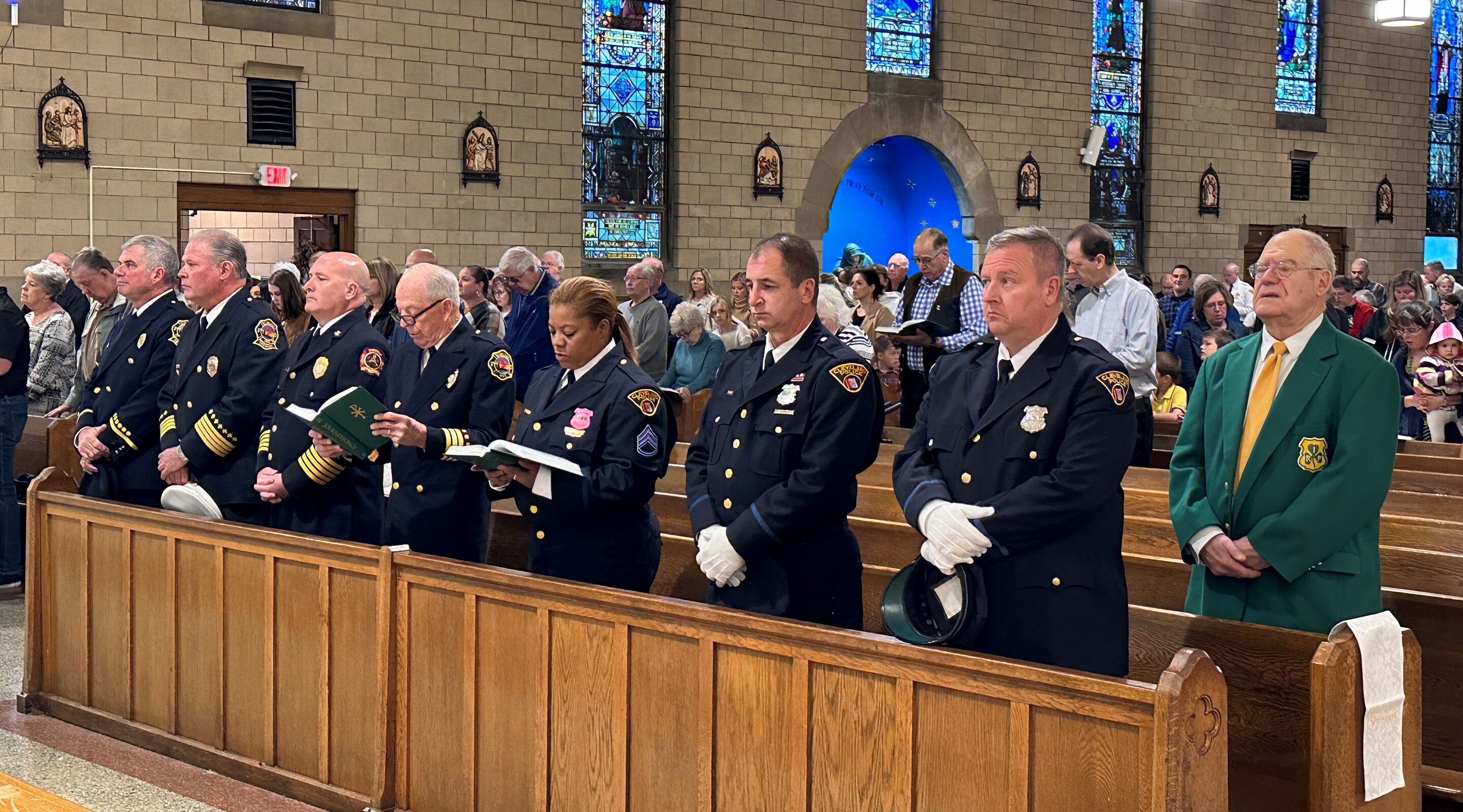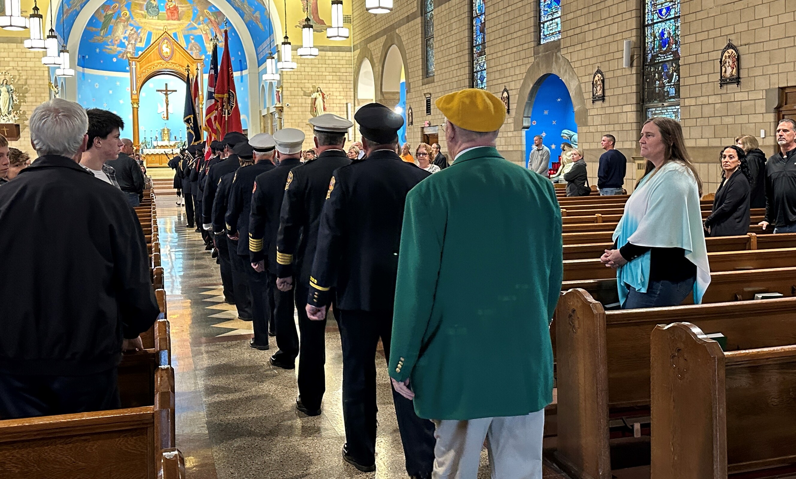 Many first responders at the Mass wore their dress uniforms. Also represented were members of the Retired Irish Police Society of Cleveland, who wore their traditional green blazers and gold ties.