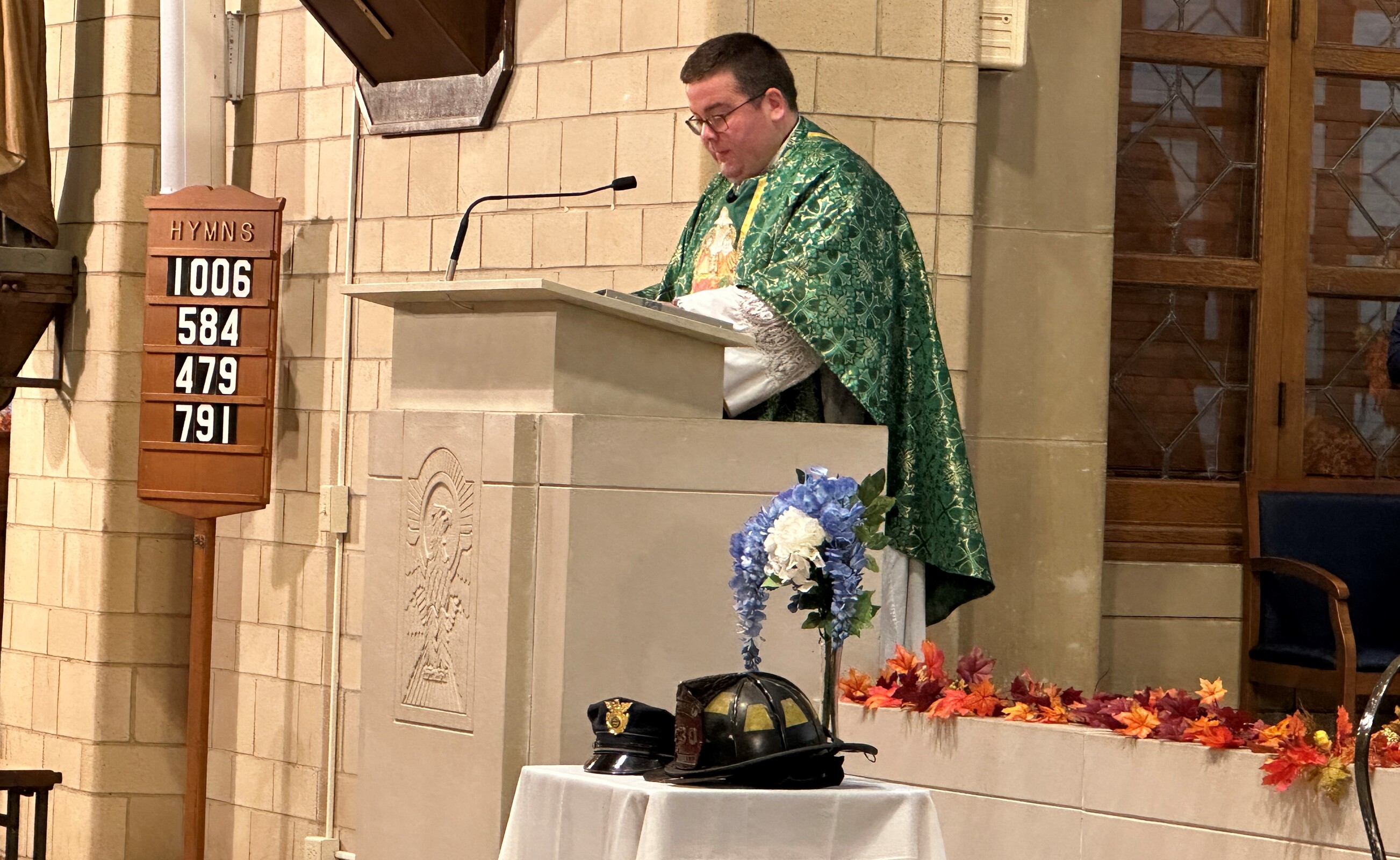 Active and retired members of police, fire and medical first responders, their families and friends joined parishioners from Our Lady of Angels Parish in Cleveland’s West Park neighborhood on Oct. 8 for the annual Blue Mass. Father Rob Ramser, OLA administrator, was the celebrant. He was assisted by Deacon Mark Yantek.
